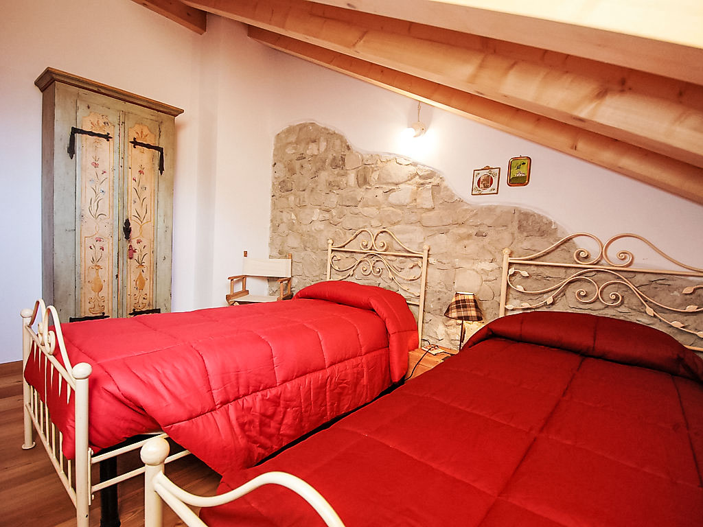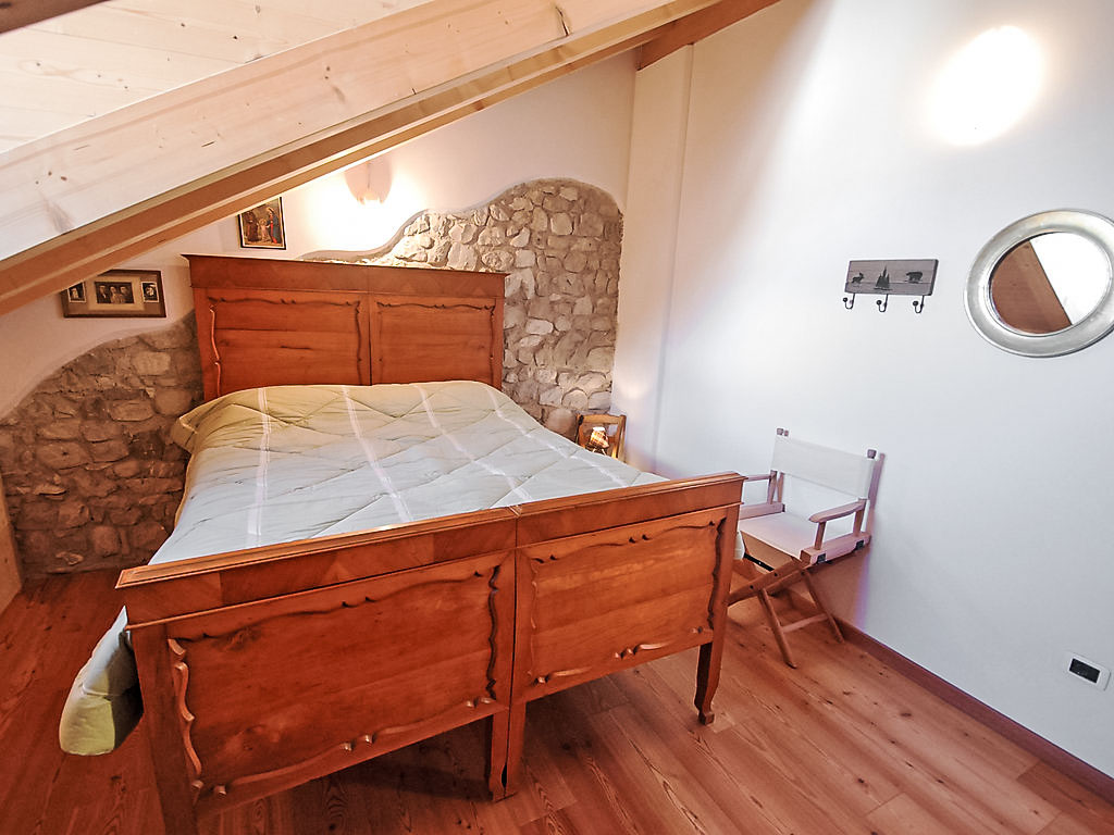 3-Zimmer-Wohnung 76 m2 auf 2 Stockwerken im 2. Stock. Geräumig und hell, teilweise abgeschrägt, schön und mit viel Holz eingerichtet: offenes Wohn-/Schlafzimmer mit 1 Doppeldiwanbett und Sat-TV (Flachbildschirm), DVD. Offene Küche (Backofen, Geschirrspüler, 4 Glaskeramikherd Platten, Wasserkocher) mit Esstisch. Dusche/Bidet/WC. Heizung. Obergeschoss: 1 abgeschrägtes Zimmer mit 1 franz. Bett. 1 abgeschrägtes Zimmer mit 1 Bett. Holzböden. Schöne Sicht auf den See, die Berge und das Tal. Zur Verfügung: Internet (Wireless LAN, gratis). Bitte beachten: Nichtraucher-Unterkunft.