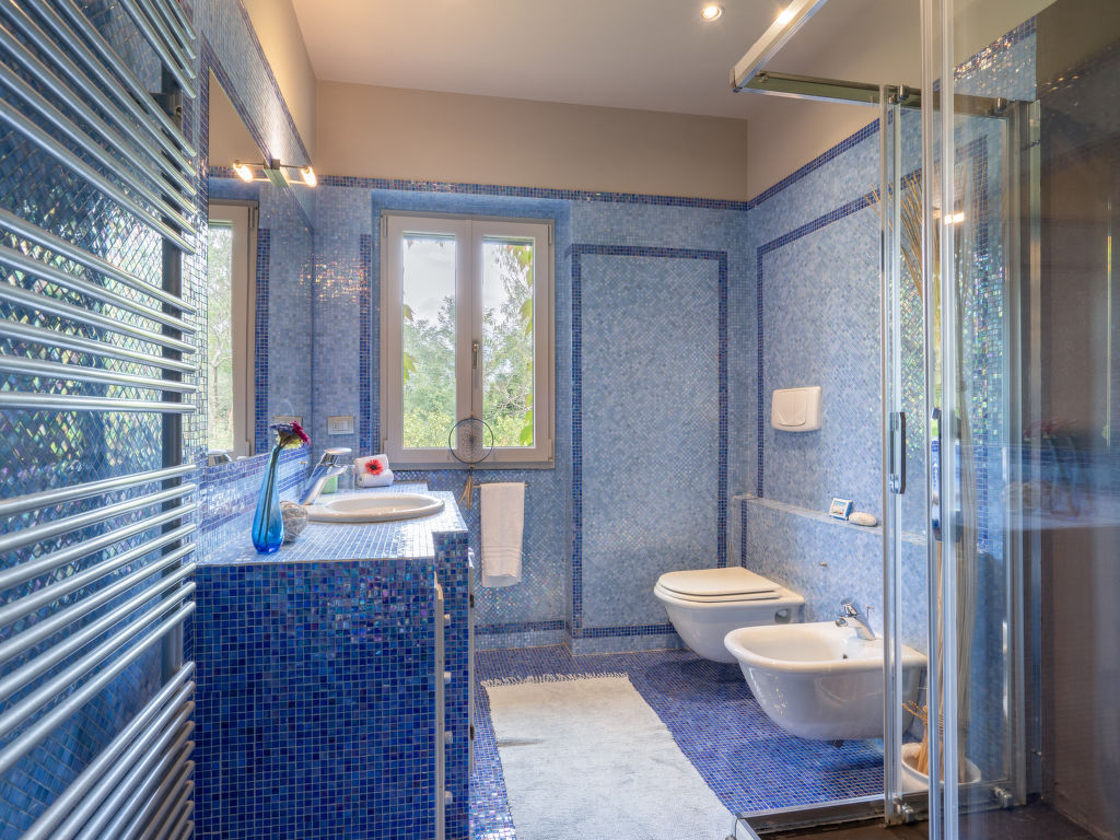 "Villa Vittoria", 6-Zimmer-Haus 250 m2 auf 2 Stockwerken, im Erdgeschoss. Grosses Wohnzimmer mit offenem Kamin, Sat-TV und Stereoanlage. Esszimmer. Küche (4 Kochplatten, Backofen, Geschirrspüler, Tiefkühler, elektrische Kaffeemaschine, Kochinsel). Sep. WC. Obergeschoss: Büro. 2 Doppelzimmer. 1 Zimmer mit 2 Betten. Bad/Bidet/WC, Dusche/Bidet/WC, Hydromassage-Dusche. Panoramasicht auf die Landschaft. Zur Verfügung: Waschmaschine, Fliegengitter. Internet (Wireless LAN, gratis). Alle Zimmer sind mit einem Decken-Ventilator ausgestattet.