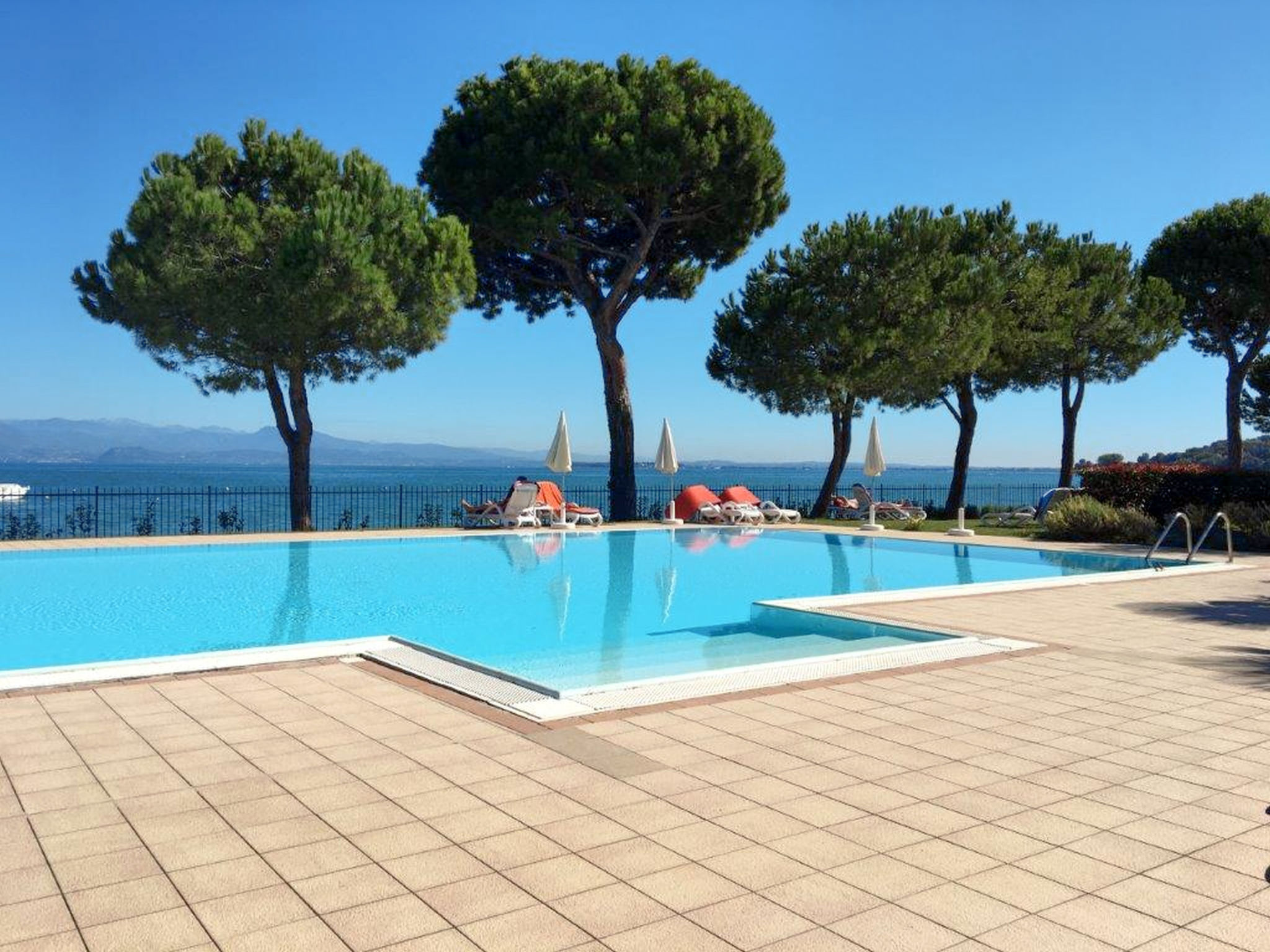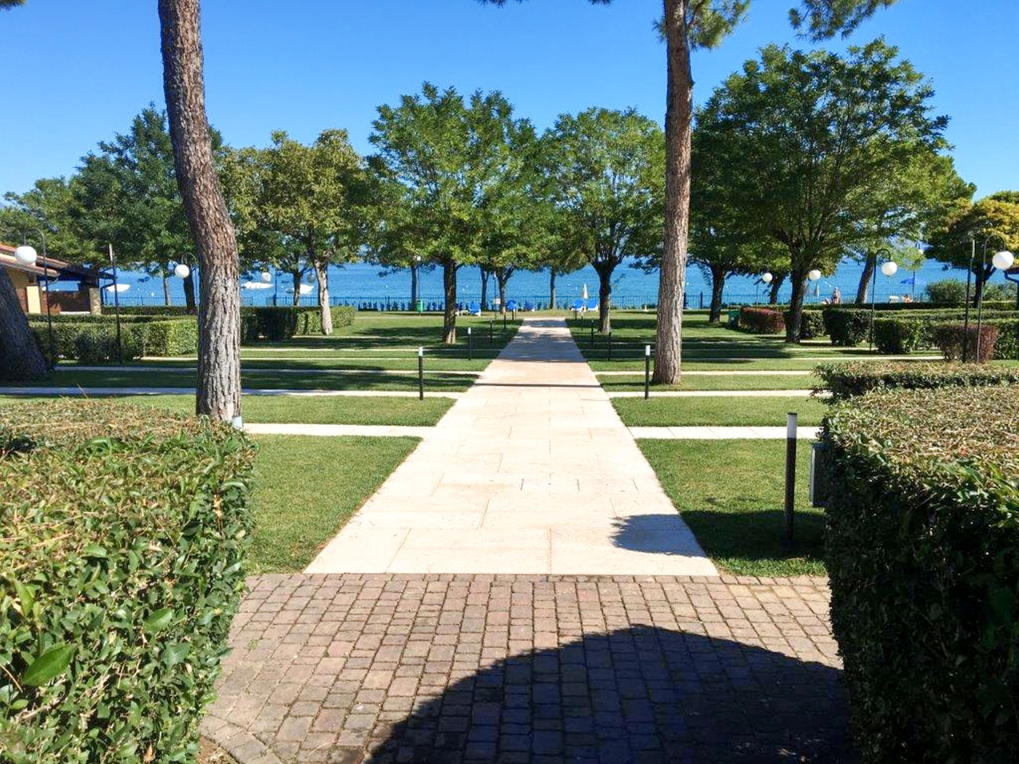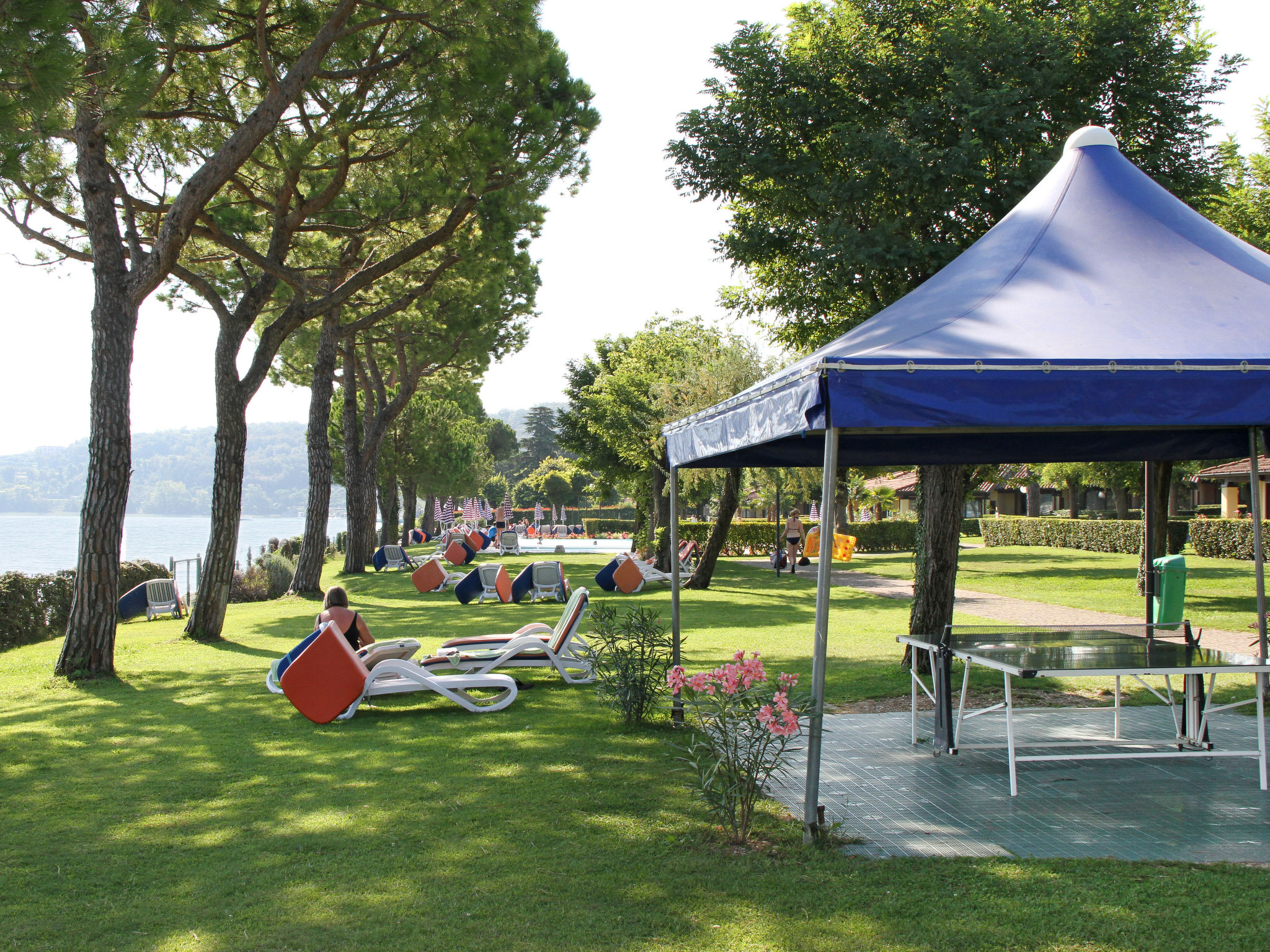 Die Ferienanlage LE CORTI DEL LAGO mit 80 Wohnungen liegt in Padenghe, auf einem 4,5 ha großen, abgeschlossenen, hübsch angelegten Grundstück mit direktem Zugang zum öffentlichen Strand. Restaurant ca. 400 m. Supermarkt 3 km. Oberhalb der Anlage führt die Seeuferstraße (Gardesana) vorbei. Ortsmitte Desenzano 4 km. 1 Parkplatz/Haus auf dem Grundstück. Die Ferienanlage besteht aus einigen, in mehreren Gruppen leicht versetzt angeordneten Reihenhäusern. Pool (18 x 9 m, gesamte Saison geöffnet) mit Kinderbecken, Liegewiese, Sonnenliegen (€ 10/Woche) und Sonnenschirmen. In der Anlage: Rezeption (stundenweise besetzt). Brötchenservice. Getränkeautomat. Tischtennis. Kinderspielgeräte. Grillplatz mit Tischen und Bänken. Internetzugang (WLAN, inklusive, nur am Pool und in der Außenanlage). Mikrowelle, Wasserkocher, Toaster jeweils auf Anfrage an der Rezeption.