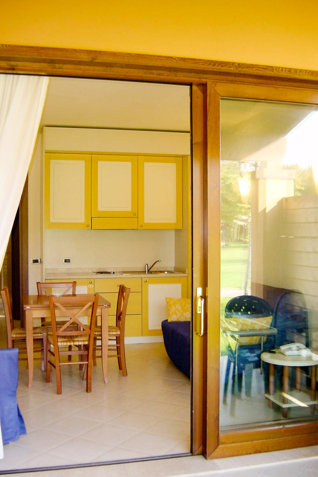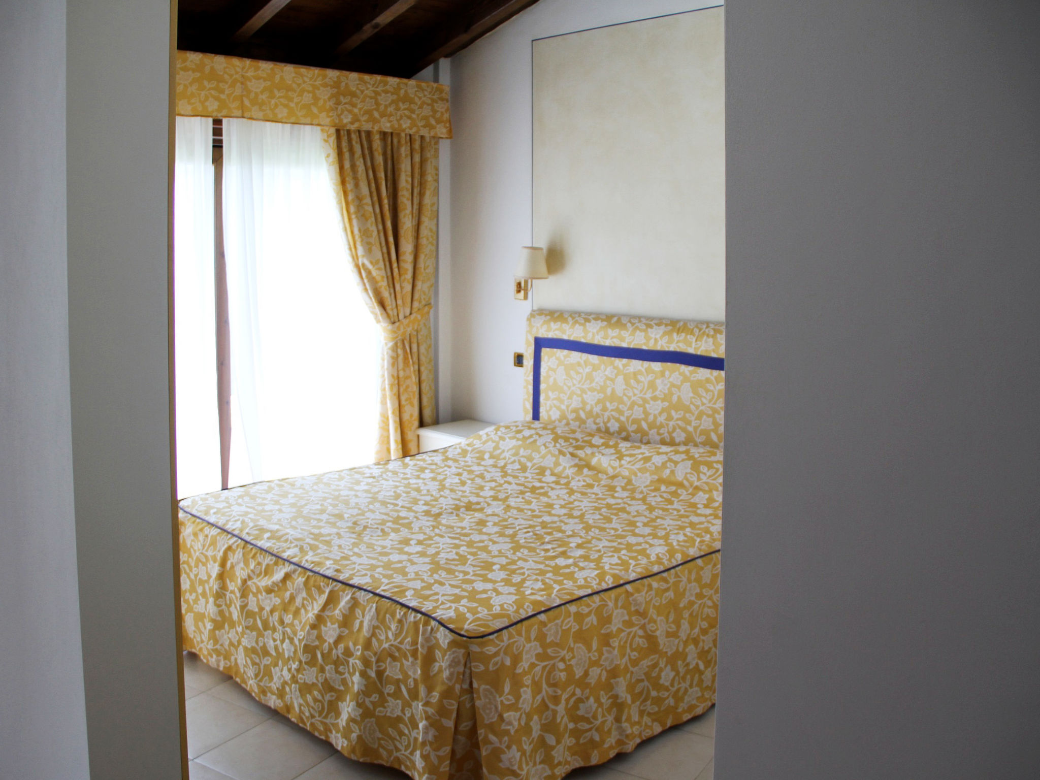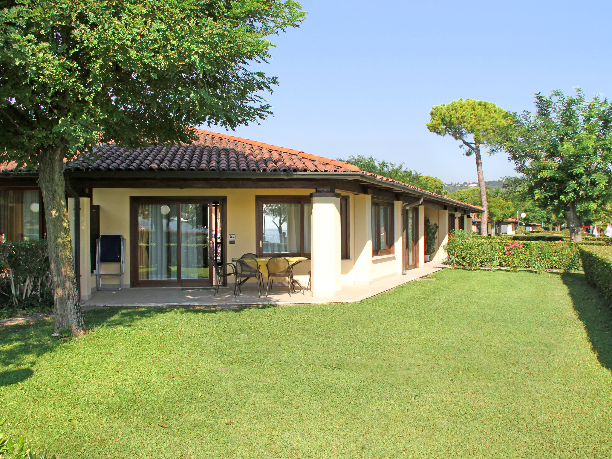 2-Zimmer-Reihenhaus 35 m2, im Erdgeschoss. Komfortabel und schön eingerichtet: Wohn-/Schlafzimmer mit 1 Doppeldiwanbett, Esstisch und Sat-TV. Ausgang zur Terrasse. 1 Doppelzimmer. Offene Küche (2 Kochplatten, elektrische Kaffeemaschine). Dusche/Bidet/WC. Klimaanlage, Warmluftheizung. Terrasse überdacht, Garten. Terrassenmöbel, Liegestühle (2). Seitliche Sicht auf den See. Zur Verfügung: Safe, Babybett, Haartrockner. Parkplatz (1 Auto). Bitte beachten: Nichtraucher-Unterkunft. 017129-VIT-00002