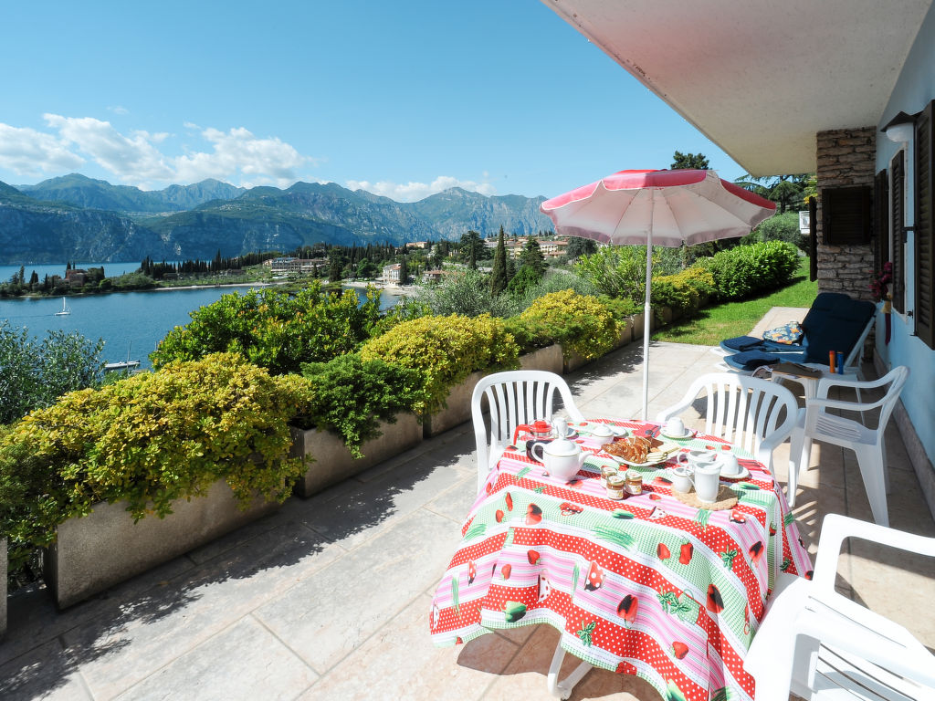 Die Wohnanlage CASE BELVEDERE steht am Hang, in herrlicher Aussichtslage mit Blick auf den ca. 150 m entfernten Gardasee. Unterhalb der Häuser, in ca. 50-100 m Entfernung, verläuft die Uferstraße. Einkaufsmöglichkeit ca. 500 m. Strand ca. 100 m. Malcesine 2,5 km nördlich, Cassone 1,5 km südlich. Zufahrt über schmale, ansteigende Straße. Elektrisches Einfahrtstor. Inmitten eines kleinen mediterranen Gartens stehen CASA ROSA mit 2 Wohnungen und CASA CELESTE mit 3 Wohnungen. Die Zweizimmerwohnung mit Terrasse oder Balkon mit Gartenmobiliar und Sonnenschirm, die Dreizimmerwohnung mit möbliertem Balkon mit Sonnenschirm.