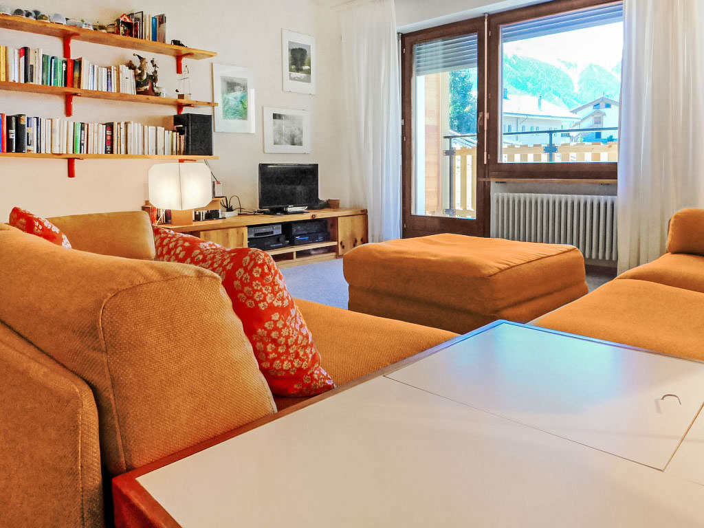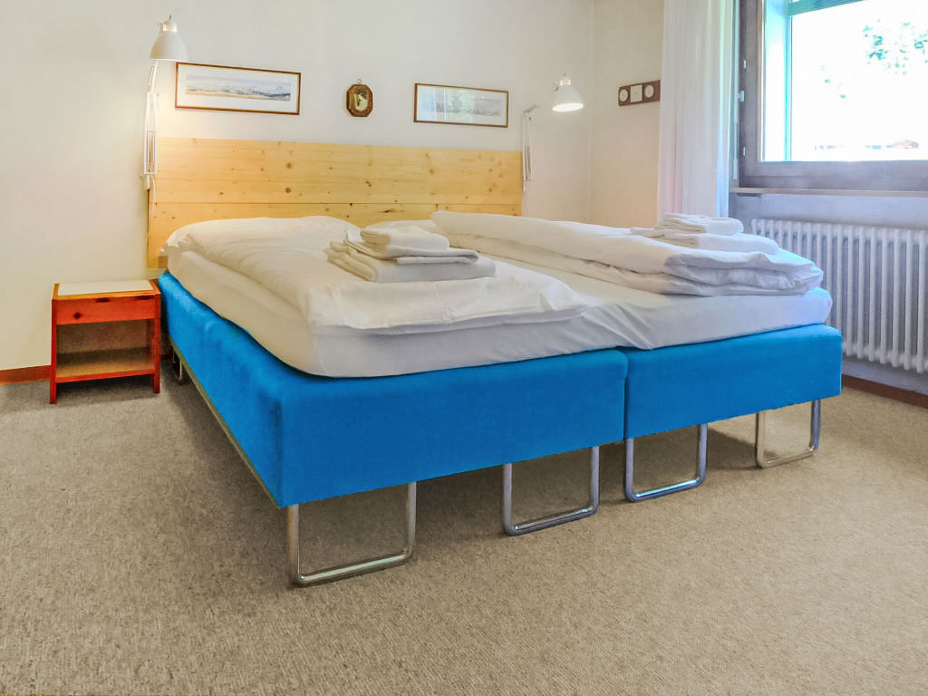 3-Zimmer-Wohnung 95 m2 im 1. Stock, Südlage. Einfach und zweckmässig eingerichtet: Wohn-/Esszimmer mit Esstisch und TV. Ausgang zum Balkon, Richtung Süden. 1 Doppelzimmer mit 1 Doppelbett (2 x 90 cm, Länge 200 cm). 1 Zimmer mit 1 Bett (90 cm, Länge 200 cm), 1 x 2 Etagenbetten (90 cm, Länge 200 cm). Kleine Küche (3 Kochplatten, Backofen, Geschirrspüler, Toaster, Wasserkocher, Tiefkühler, elektrische Kaffeemaschine). Bad/WC, Dusche/WC. Balkon. Balkonmöbel. Sehr schöne Sicht auf Matterhorn. Zur Verfügung: Haartrockner. Internet (Wireless LAN, gratis). Bitte beachten: Nichtraucher-Unterkunft. Keine Haustiere erlaubt.