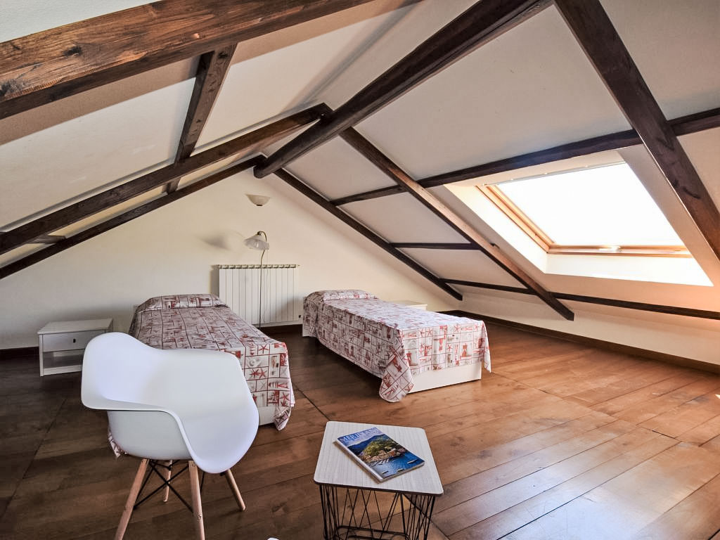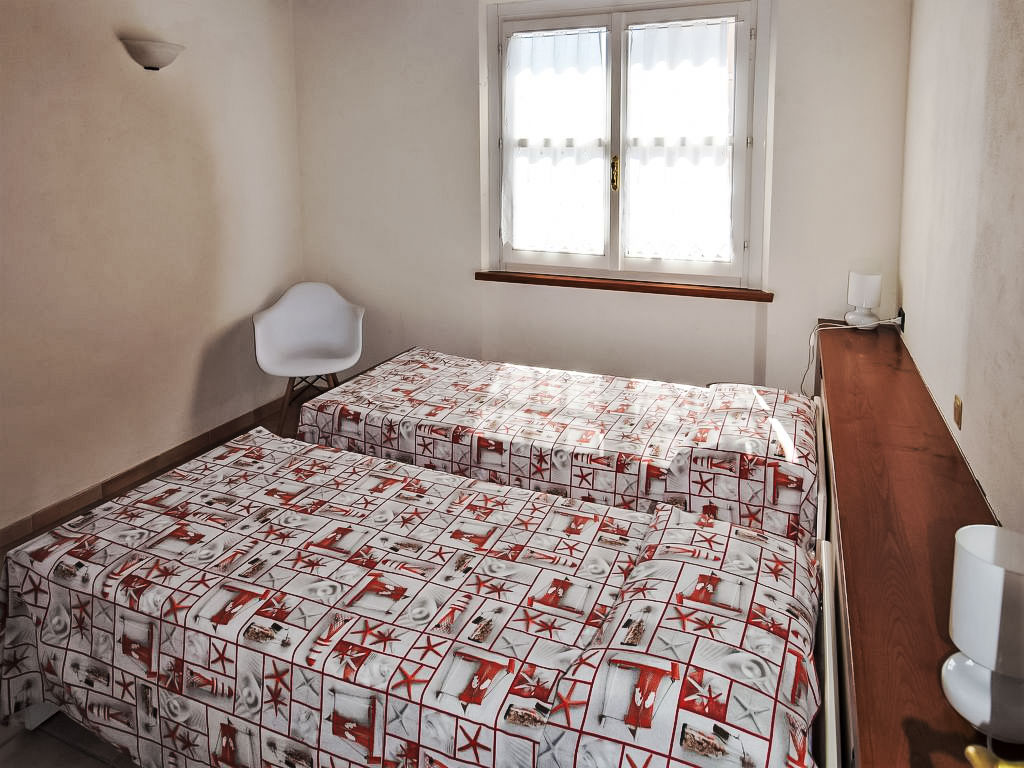 "Rosa", 4-Zimmer-Reihenhaus 110 m2 auf 3 Stockwerken, im Erdgeschoss. Zweckmässig eingerichtet: Wohn-/Esszimmer mit Sat-TV. Ausgang zum Gartensitzplatz. Kochnische (4 Kochplatten, Mikrowelle, Tiefkühler, elektrische Kaffeemaschine). Obergeschoss: 1 Doppelzimmer. Ausgang zum Balkon. 1 Zimmer mit 2 Betten. Dusche/Bidet/WC. G-Heizung (extra). Heizung nur verfügbar von 15.10. bis 15.04. 2. Obergeschoss: 1 abgeschrägtes Zimmer mit 2 Betten. Terrasse 80 m2, Gartensitzplatz 12 m2, überdacht, Garten 20 m2. Terrassenmöbel, Gartengrill. Zur Verfügung: Safe, Haartrockner. Internet (Wireless LAN, gratis). Geeignet für Familien. Maximal 2 Haustiere/Hunde erlaubt. CITR:011012-CAV-0001