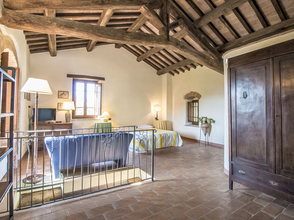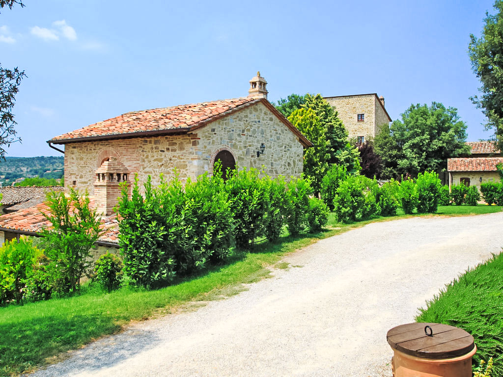 Borgo Monticelli, kleiner mittelalterlicher Weiler aus dem 12. Jahrhundert mit 18 Wohnungen. Die Wohnungen - alle kürzlich renoviert - sind von kunsthistorischem Wert und stehen unter nationalem Denkmalschutz. Die drei Sichttürme machen den ältesten Teil des Weilers aus, sie sind auf das Tal hinunter gerichtet. Sehr schönes, historisches Schloss "Borgo Monticelli", aus dem 11. Jahrhundert, renoviert, umgeben von Bäumen. 14 km vom Zentrum von Perugia, 30 km vom Zentrum von Assisi, 70 km vom Zentrum von Siena, ruhige, sonnige Lage auf einem Hügel, 15 km vom See, im Grünen. Zur Mitbenutzung: grosser Garten, 2 Schwimmbäder (16 x 6 m, 110 - 150 cm tief, saisonale Verfügbarkeit: 01.Mai.-08.Okt.). Aussendusche, Sitzplatz, Gartenmöbel, Grill. Zur Alleinbenutzung: Gartenmöbel. Im Hause: Aufenthaltsraum mit TV, Internetzugang, Sauna (extra). Massage (extra). Dampfbad, Sprudelbad (extra). Waschmaschine (zur Mitbenutzung, extra), Heizung vor Ort zu zahlen, Heizung nur verfügbar von 15.10. bis 15.04. (extra). Wohnungsreinigung 1 mal wöchentlich (inkl.). Koch möglich. Frühstück auf Anfrage (extra). Parkplatz auf dem Grundstück. Einkaufsgeschäft 1 km, Lebensmittelgeschäft 1 km, Restaurant 1 km, Bahnstation "Perugia" 13 km, Kieselstrand 18 km. Golfplatz (18 Loch) 8 km, Reitstall 10 km. Nahe gelegene Sehenswürdigkeiten: Siena 70 km. Bekannte Seen in der Umgebung sind gut erreichbar: Trasimeno 15 km. Bitte beachten: geeignet für Familien. Be- und Entladen am Ferienhaus möglich. Das Foto ist nur ein Hausbeispiel. Nur 25 Fahrmin. von der Toskana entfernt, liegen die kulturellen und landschaftlichen Sehenswürdigkeiten Umbriens und der Toscana nicht weit voneinander entfernt. In der Nähe befindet sich ein Reitplatz und ein schöner Golfplatz. Im Anwesen stehen den Gästen 2 Schwimmbecken zur Verfügung.