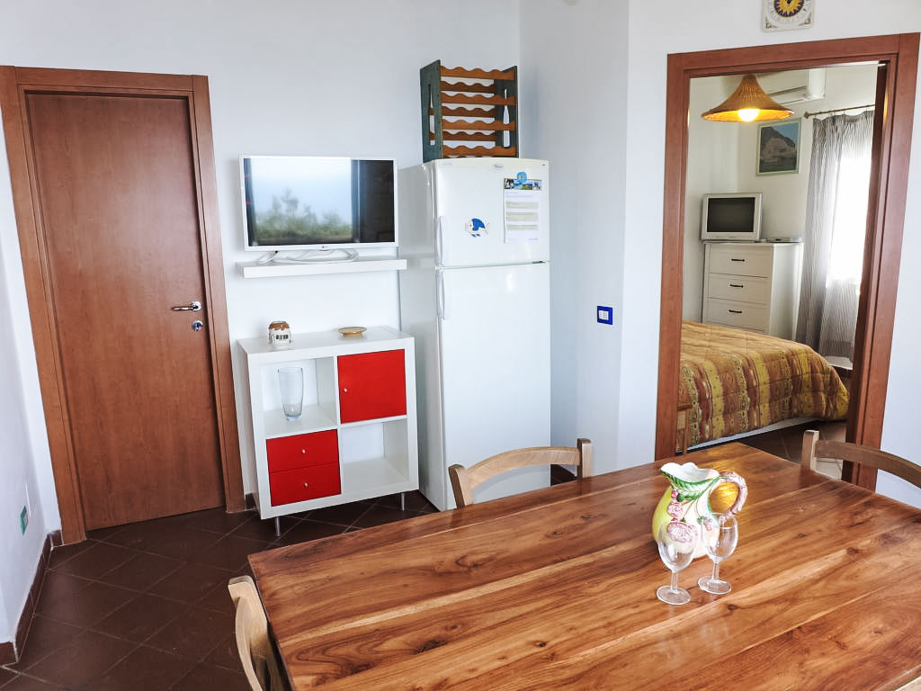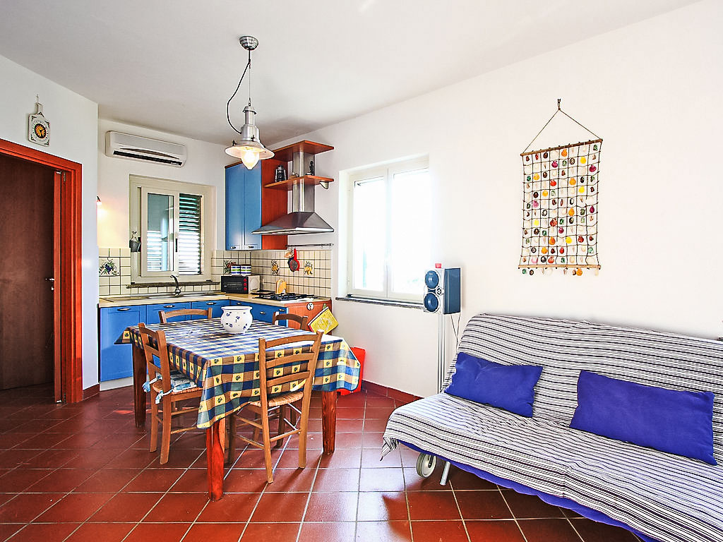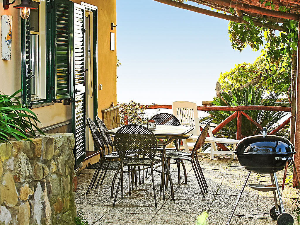 3-Zimmer-Haus 50 m2, im Erdgeschoss. Teilweise renoviert im Jahre 2014, schön und modern eingerichtet: Wohn-/Esszimmer mit Panoramafenster mit 1 Doppeldiwanbett und TV (Flachbildschirm), Klimaanlage und Warmluftheizung. Ausgang zum Garten. 1 Doppelzimmer mit Panoramafenster mit Sat-TV, Klimaanlage und Warmluftheizung. 1 Zimmer mit 1 x 2 Etagenbetten. Kochnische (4 Kochplatten, Mini-Backofen, Tiefkühler). Dusche/Bidet/WC. Klimaanlage, Warmluftheizung (extra). Heizung nur verfügbar von 01.11. bis 31.03. Grosser Garten. Terrassenmöbel, Gartengrill (mobil), Liegestühle. Herrliche Panoramasicht auf das Meer und Capri Island. Zur Verfügung: Waschmaschine. Internet (Wireless LAN, gratis). Parkplatz (eingezäunt). Geeignet für Familien.