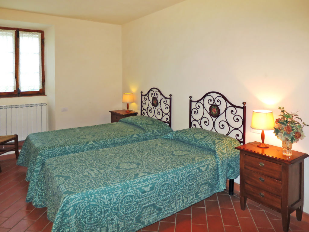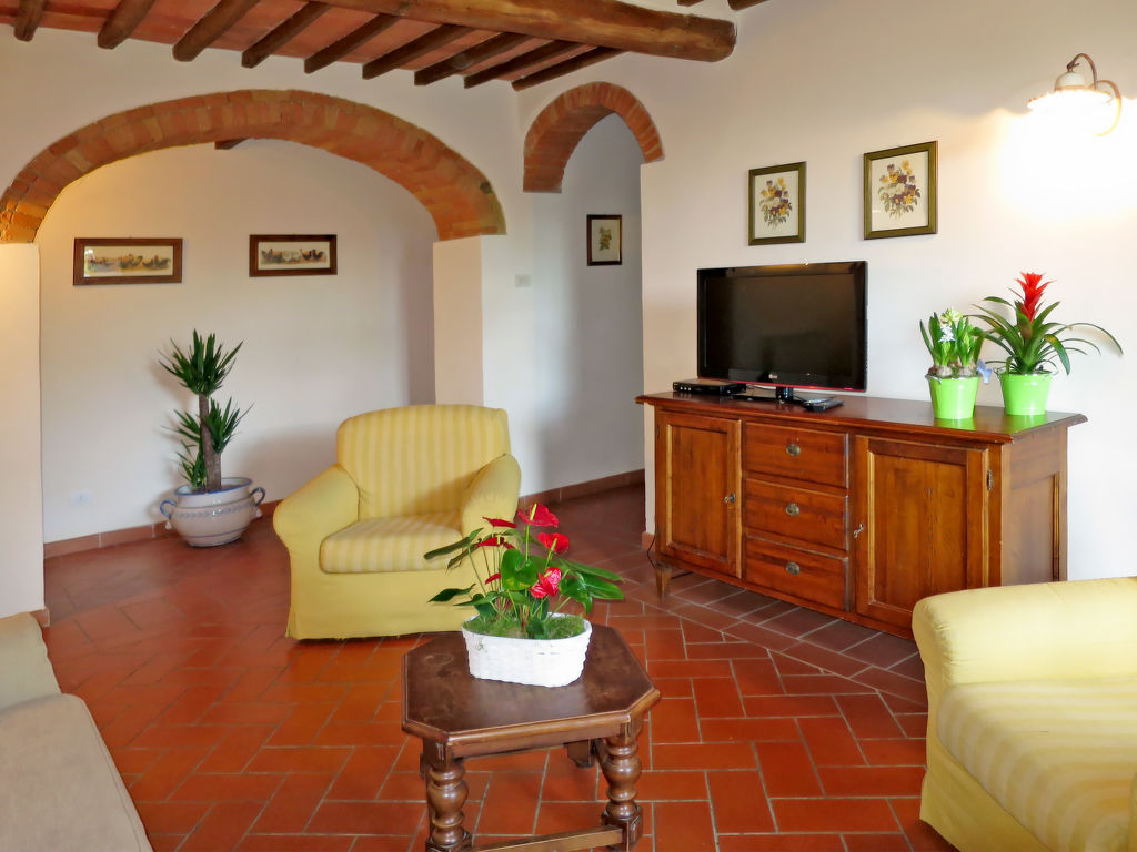 Kinderfreundlich, gemütlich Agriturismo auf Weingut "Campiglia", umgeben von Feldern und Weinbergen. 6 Wohnungen im Ferienhaus. 2 km vom Zentrum von Tavarnelle, 30 km vom Zentrum von Firenze, 45 km vom Zentrum von Siena, sonnige, erhöhte Lage, 90 km vom Strand, im Grünen. Zur Mitbenutzung: Grundstück 20 ha, gepflegter Garten (nicht eingezäunt) mit Rasen und Bäumen, Liegewiese 1'000 m2, Schwimmbad eingezäunt (17 x 7 m, saisonale Verfügbarkeit: 25.Apr.-31.Okt.). Aussendusche, Sitzplatz, Gartenmöbel, Grill, Poolpflege durch den Besitzer/Gärtner. Im Hause: Waschmaschine (zur Mitbenutzung). 300 m lange Zufahrt (Naturweg). Parkplatz auf dem Grundstück. Einkaufsgeschäft 1 km, Lebensmittelgeschäft 1 km, Supermarkt 1 km, Restaurant 1 km, Bar 1 km, Bäckerei 1 km, Zentrum zu Fuss in 20 Minuten erreichbar, Bushaltestelle 2 km, Bahnstation "Barberino Zambra" 10 km, Sandstrand "Cecina Mare" 90 km. Golfplatz (9 Loch) 20 km, Tennis 5 km, Angelmöglichkeit 5 km. Nahe gelegene Sehenswürdigkeiten: San Gimignano 22 km, Certaldo 15 km, Volterra 52 km, Montalcino 85 km. Bitte beachten: geeignet für Familien, Babyausstattung (inkl.). Jugendgruppen nur auf Anfrage. Ab Hof Verkauf von bäuerlichen Produkten. Der Besitzer wohnt auf dem gleichen Grundstück. Alle Häuser/Wohnungen sind individuell eingerichtet.