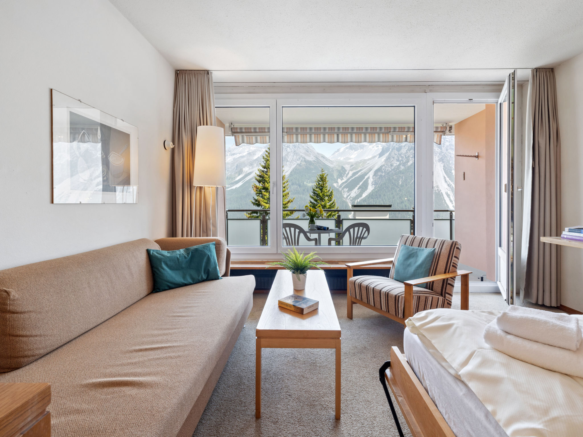 Appartementhaus "Promenade (Utoring)". Im Ort, 500 m vom Zentrum, ruhige Lage. Im Hause: Aufenthaltsraum, Tischtennis, Kiosk, Fahrstuhl, Skiraum, Zentralheizung, Waschmaschine (zur Mitbenutzung). Zufahrt bis zum Haus (Bergstrasse). Im Winter bitte Schneeketten mitbringen, im Winter 4x4 empfohlen. Parkplatz (beschränkte Anzahl, extra) beim Haus, Gemeinschaftsgarage (extra), öffentliches Parkhaus in 800 m. Einkaufsgeschäft 500 m. Bergbahn 500 m. Hauslieferdienst möglich. Schöne Wanderwege direkt vor dem Haus. Achtung: beschränkte Anzahl Parkmöglichkeiten! Parkplatz oder Garagenplatz müssen zwingend vorgängig beim Schlüsselhalter reserviert werden: Parkplatz CHF 5.00/Tag, gedeckter Parkplatz CHF 8.00/Tag, Garagenplatz CHF 16.00/Tag, zahlbar vor Ort. Zweckmässig eingerichtete Appartements mit Sat-TV (im Mietpreis inbegriffen, ausser bei Typ 10 und 12 CHF 40.00/Woche). Aufenthaltsraum mit Internetanschluss (WiFi). Skiabonnements sind an der Rezeption erhältlich.