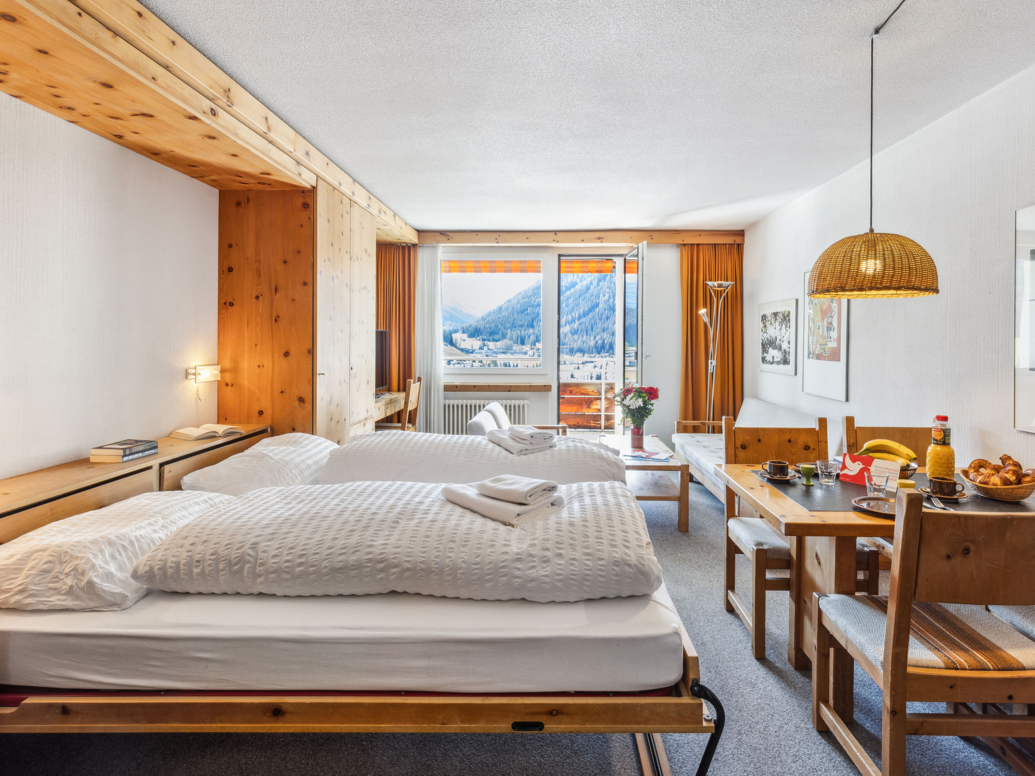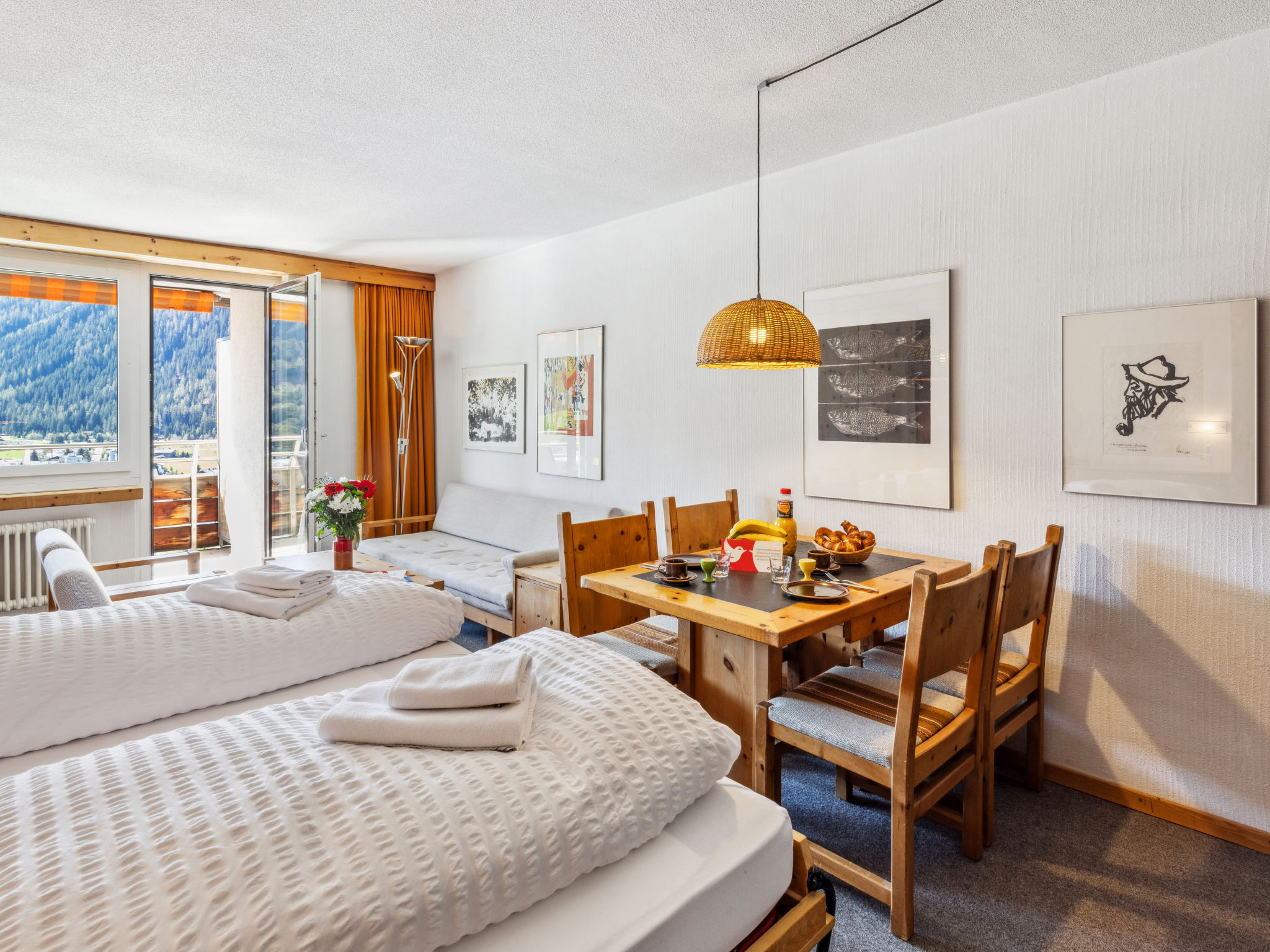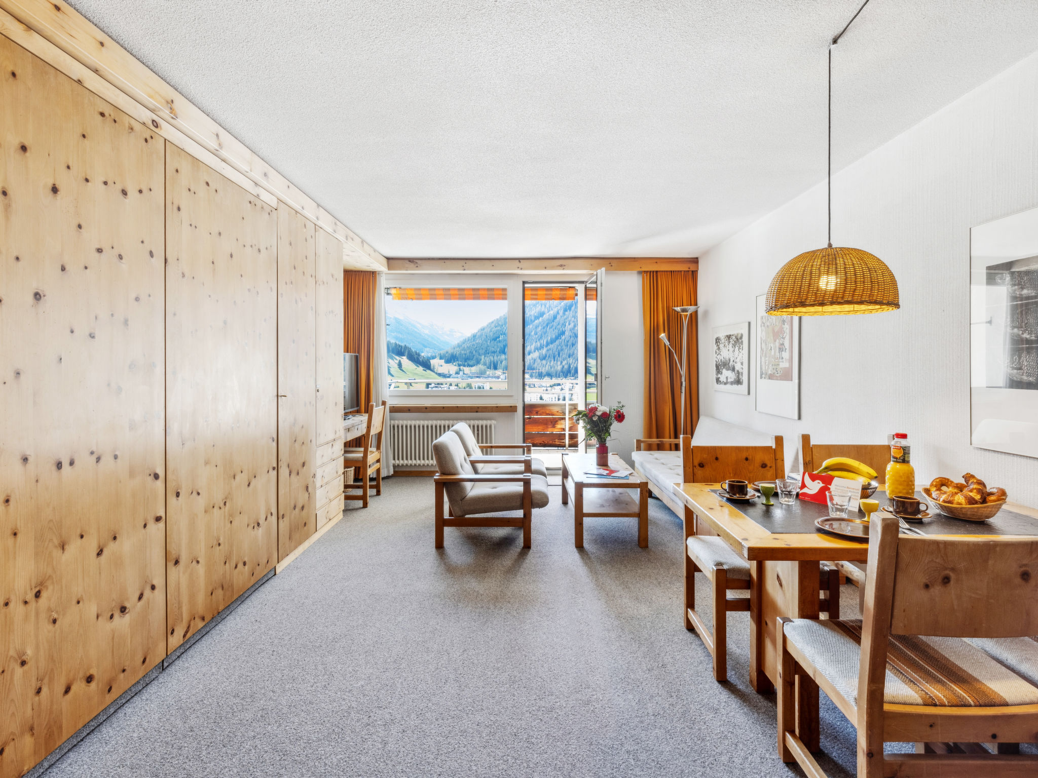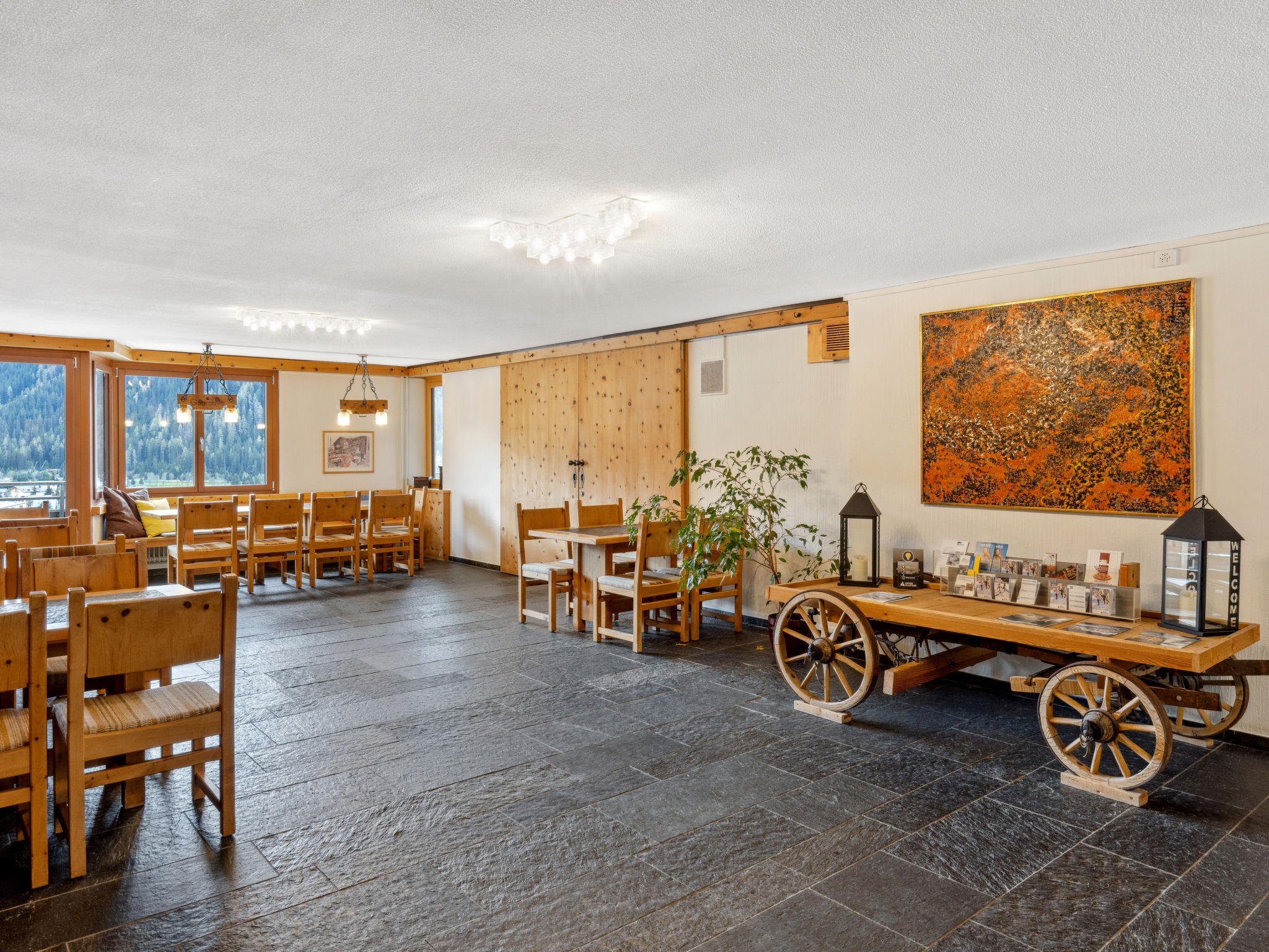 Davos: Appartementhaus "Guardaval (Utoring)". Im Ort, zentrale, ruhige, sonnige Lage am Hang, 300 m vom Skigebiet. Zur Mitbenutzung: Hallenbad. Im Hause: Empfang, Aufenthaltsraum mit TV, Wireless LAN, Sauna (extra). Spielzimmer, Fahrstuhl, Skiraum, Zentralheizung, Waschmaschine (zur Mitbenutzung). Brötchenservice und Getränkeservice. Schmale Zufahrt bis zum Haus. Parkplatz (überdacht, beschränkte Anzahl, extra), Gemeinschaftsgarage (extra). Einkaufsgeschäft, Restaurant, Bushaltestelle 300 m, Bahnstation "Davos Dorf" 400 m, Hallenbad 1 km, Badesee 1 km. Bergbahn, Skisportanlagen, Skipisten, Skischule 300 m, Schlittelbahn 1.5 km, Langlaufloipe, Eisfeld 300 m. Bekannte Skigebiete sind gut erreichbar: Parsenn 300 m, Jakobshorn 1.5 km. Das Appartementhaus befindet sich oberhalb der Talstation der Parsennbahn und verfügt über eine herrliche Aussicht. Parkplatz + Garage (Reservierung bei Ankunft).