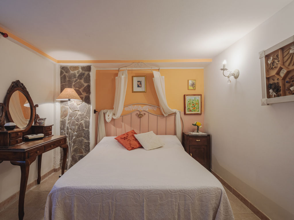 2-Zimmer-Haus 60 m2 auf 2 Stockwerken, im erhöhten Erdgeschoss. Renoviert, schön und geschmackvoll eingerichtet: Wohn-/Esszimmer mit Esstisch, Sat-TV und Klimaanlage. Küche (Backofen, Geschirrspüler, 4 Flammen, Toaster, Wasserkocher, Mikrowelle, Tiefkühler, elektrische Kaffeemaschine). Unteres Geschoss: (Wendeltreppe) 1 Zimmer mit 1 franz. Bett (160 cm). Dusche/WC. Terrasse. Terrassenmöbel, Gartengrill (mobil), Liegestühle (2). Zur Verfügung: Waschmaschine. Bitte beachten: Nichtraucher-Unterkunft. Maximal 1 Haustier/Hund erlaubt.