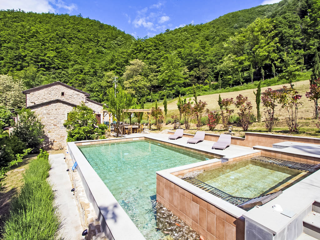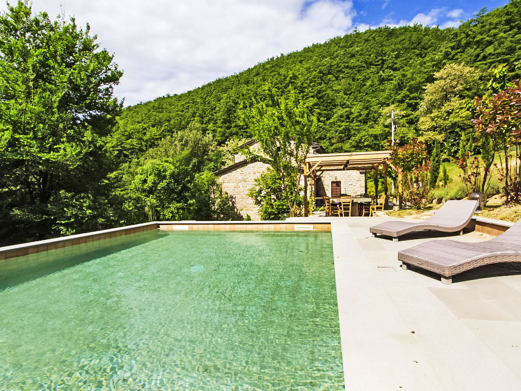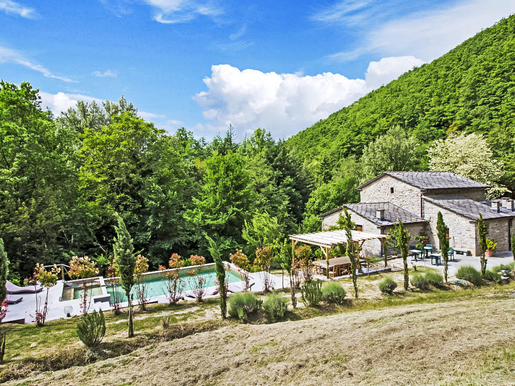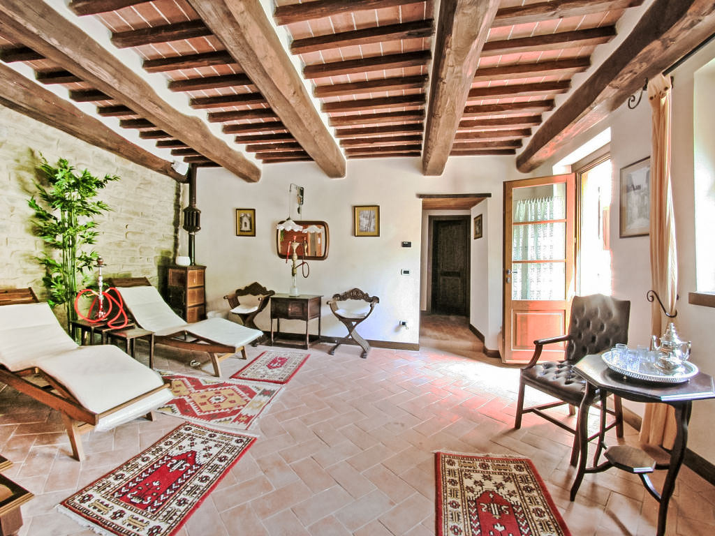 Landsitz "La Valchiera", renoviert, umgeben von Bäumen. 5 km vom Zentrum von Sansepolcro, ruhige, sonnige, erhöhte Lage, 10 m vom Fluss. Zur Alleinbenutzung: Grundstück 20 ha, Terrassengarten, Naturteich, Schwimmbad (10 x 5 m, 100 - 130 cm tief, 13.05.-06.10.). Sprudelbad, Sitzplatz, Gartenmöbel, Grill, Poolpflege durch den Besitzer/Gärtner. Im Hause: Internetzugang, Infrarotwärmekabine, Ruheraum, Wellnessbereich, Waschmaschine, Wäschetrockner. Koch möglich. Parkplatz auf dem Grundstück. Lebensmittelgeschäft 4 km, Supermarkt 4 km, Restaurant 2 km, Bar 2 km. Reitstall 2 km. Nahe gelegene Sehenswürdigkeiten: Anghiari 15 km, Arezzo 40 km.