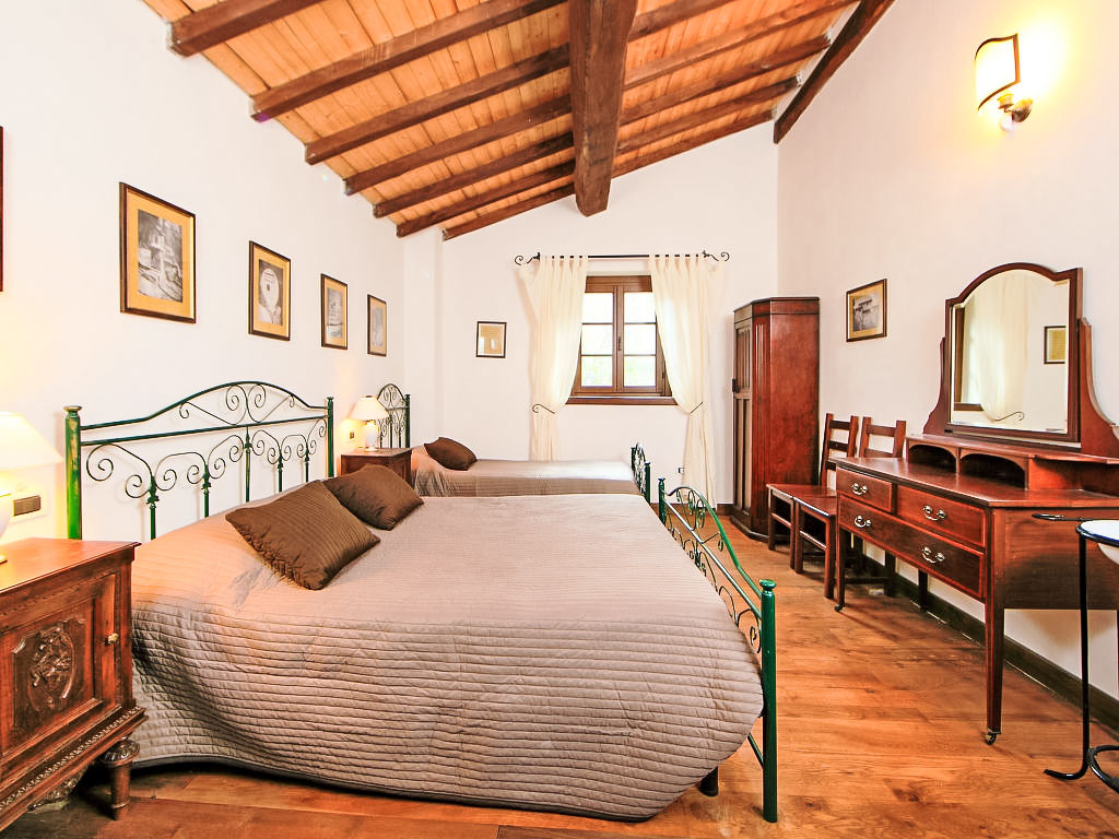 11-Zimmer-Haus 350 m2 auf 3 Stockwerken. Geräumig, vollständig renoviert, schön und mit viel Holz eingerichtet: Wohnzimmer mit 1 Doppeldiwanbett und Sat-TV (Flachbildschirm). Billardzimmer. Grosse Küche (4 Kochplatten, Backofen, Geschirrspüler, Tiefkühler) mit Esstisch. Ausgang zum Garten. 2 Duschen/Bidet/WC. Obergeschoss: offenes Wohnzimmer mit 1 Diwanbett und Küchenblock. 2 Zimmer, jedes Zimmer mit 1 Bett und 1 Doppelbett. 1 Doppelzimmer mit Bad/Bidet/WC, Sprudelbad und TV (Flachbildschirm). Ausgang zum Garten. Offenes Wohnzimmer. Offene Küche (4 Kochplatten, Backofen) mit Esstisch. Ausgang zum Garten, zur Loggia. Bad/Bidet/WC, Whirlbadewanne. 2. Obergeschoss: offene Küche (4 Kochplatten, Backofen) mit Esstisch. Ausgang zum Garten. Bad. 3. Obergeschoss: Salon mit 1 Doppeldiwanbett, TV, Flachbildschirm und Holzofen. 1 Doppelzimmer mit Sat-TV (Flachbildschirm). Bad/Bidet/WC, Whirlbadewanne. Parkettböden. Komfortable Einrichtung im Landhausstil. Grosse Terrasse, Gartensitzplatz. Terrassenmöbel, Sitzplatz. Sicht auf den Fluss. Zur Verfügung: Waschmaschine, Wäschetrockner, Sauna. Internet (Wireless LAN, gratis). 2 Haustiere/Hunde erlaubt. Das Haus hat mehrere Stockwerke und das Erdgeschoss ist mit einer Aussentreppe mit dem Obergeschoss verbunden. Heizkosten für Schwimmbad zahlbar vor Ort. Bei Belegung mit weniger Personen als der maximalen Personenzahl stehen nicht alle Schlafzimmer zur Verfügung.