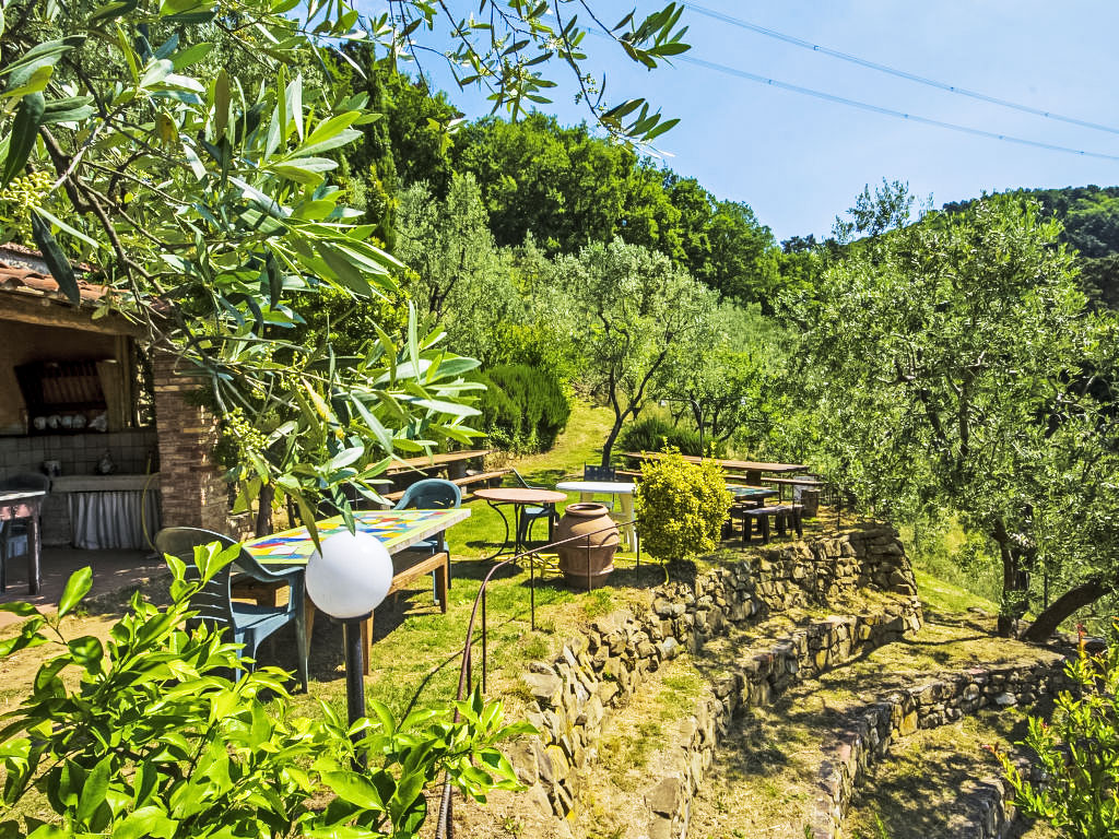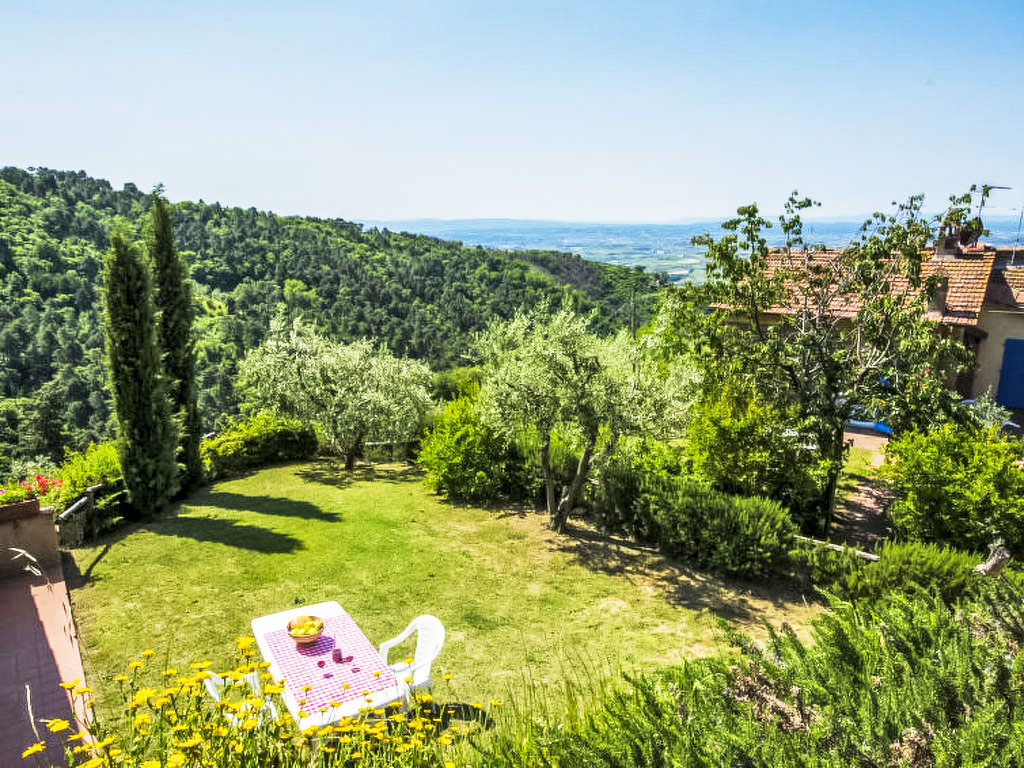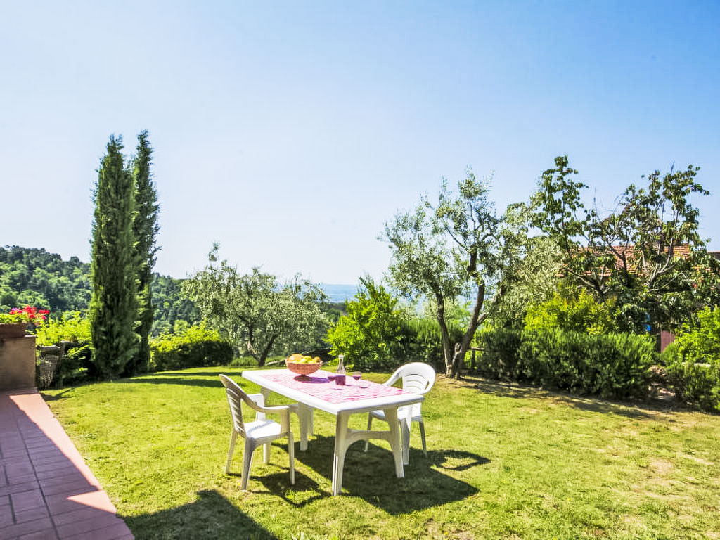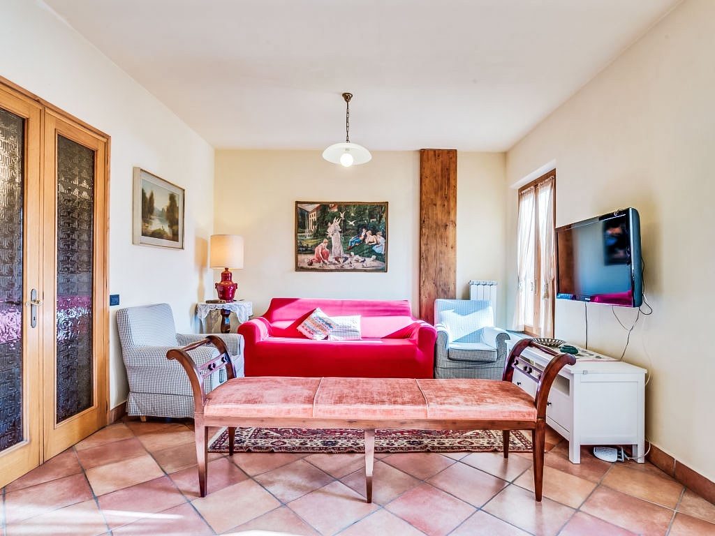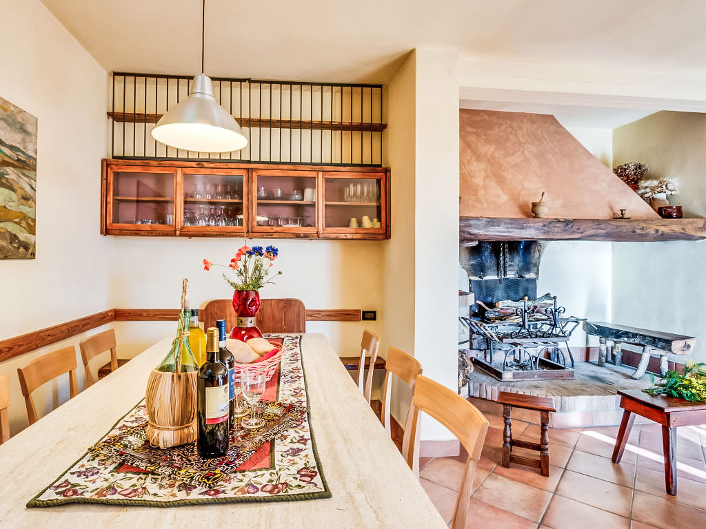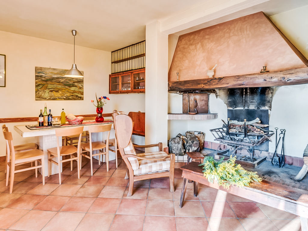 "Donatello", 4-Zimmer-Wohnung 120 m2, im Erdgeschoss. Komfortabel und geschmackvoll eingerichtet: Wohn-/Esszimmer mit offenem Kamin und Sat-TV. Ausgang zum Garten. 1 Zimmer mit 1 x 2 Etagenbetten, 1 Doppelbett und offenem Kamin. Ausgang zum Garten. 1 Doppelzimmer. 1 Zimmer mit 3 Betten. Kochnische (4 Kochplatten, Backofen, Geschirrspüler, Mikrowelle). 2 Duschen/Bidet/WC. Garten 235 m2. Terrassenmöbel. Panoramasicht auf die Landschaft. Zur Verfügung: Internet (Wireless LAN, gratis). 1 Haustier/Hund erlaubt.