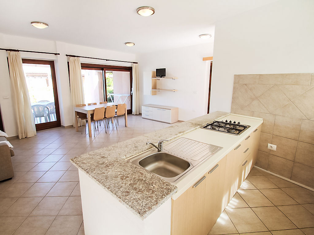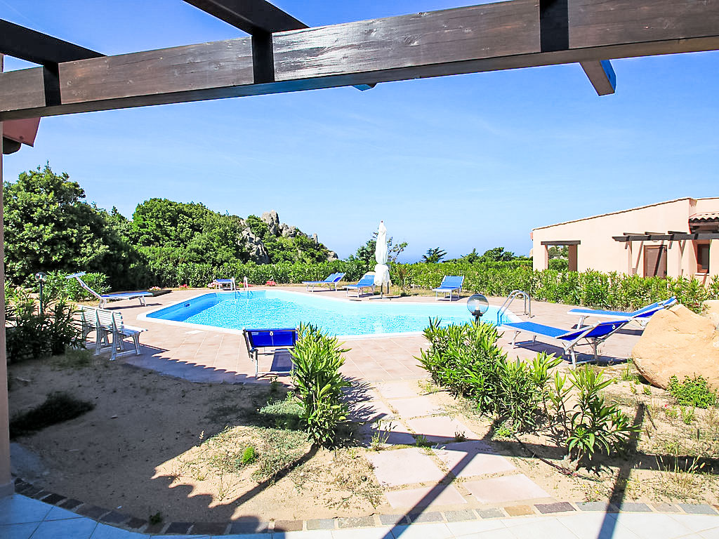 Zweifamilienhaus "Costa Paradiso", einseitig angebaut. Sonnige, erhöhte Lage, 2 km vom Meer. Zur Mitbenutzung: Grundstück 1'000 m2, Schwimmbad (70 m2, 120 - 120 cm tief, saisonale Verfügbarkeit: 31.Mar.-27.Okt.). Parkplatz auf dem Grundstück. Einkaufsgeschäft 1 km, Lebensmittelgeschäft 1 km, Sandstrand 2.5 km. Bitte beachten: Fahrzeug empfohlen.