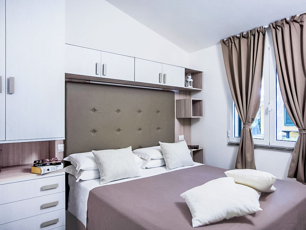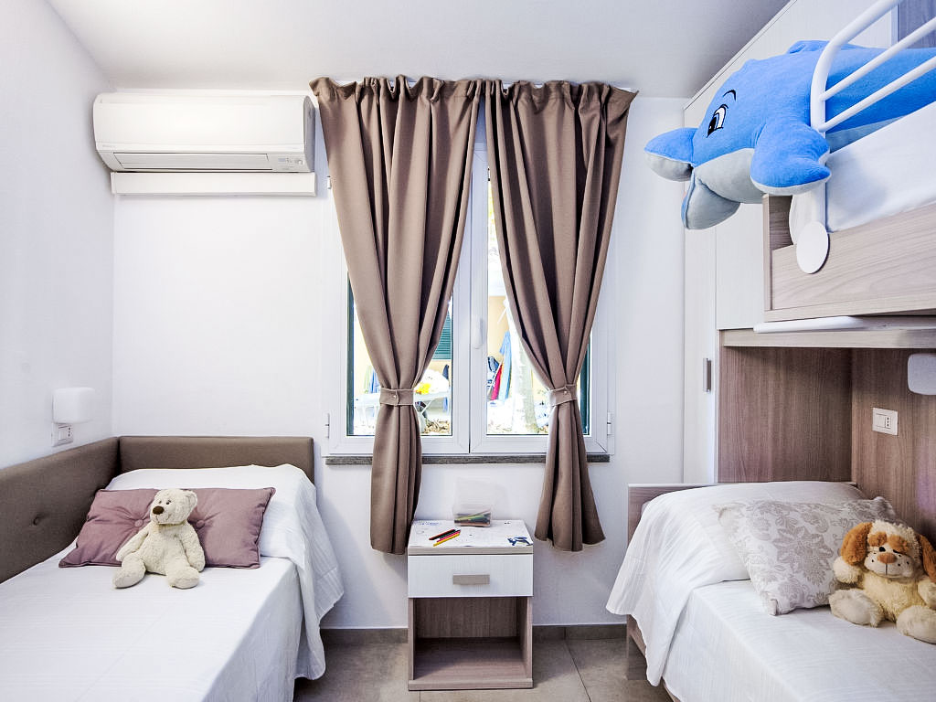 "De Luxe Plus", 3-Zimmer-Haus 40 m2, im Erdgeschoss. Objekt geeignet für 4 Erwachsene + 2 Kinder. Komfortabel eingerichtet: Wohn-/Esszimmer mit Sat-TV. Ausgang zum Garten, zur Veranda. 1 Doppelzimmer. 1 Zimmer mit 1 Bett und 1 x 2 Etagenbetten. Kochnische (4 Kochplatten, Geschirrspüler). Bad/WC, Dusche/Bidet/WC. Klimaanlage. Gartensitzplatz 12 m2, grosser Garten. Terrassenmöbel, Sitzplatz. Zur Verfügung: Safe, Haartrockner. Internet (Wireless LAN, gratis). Bitte beachten: eigener Eingang.