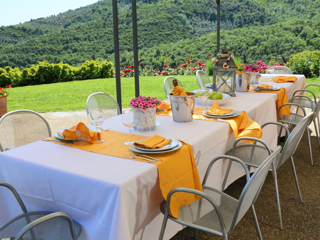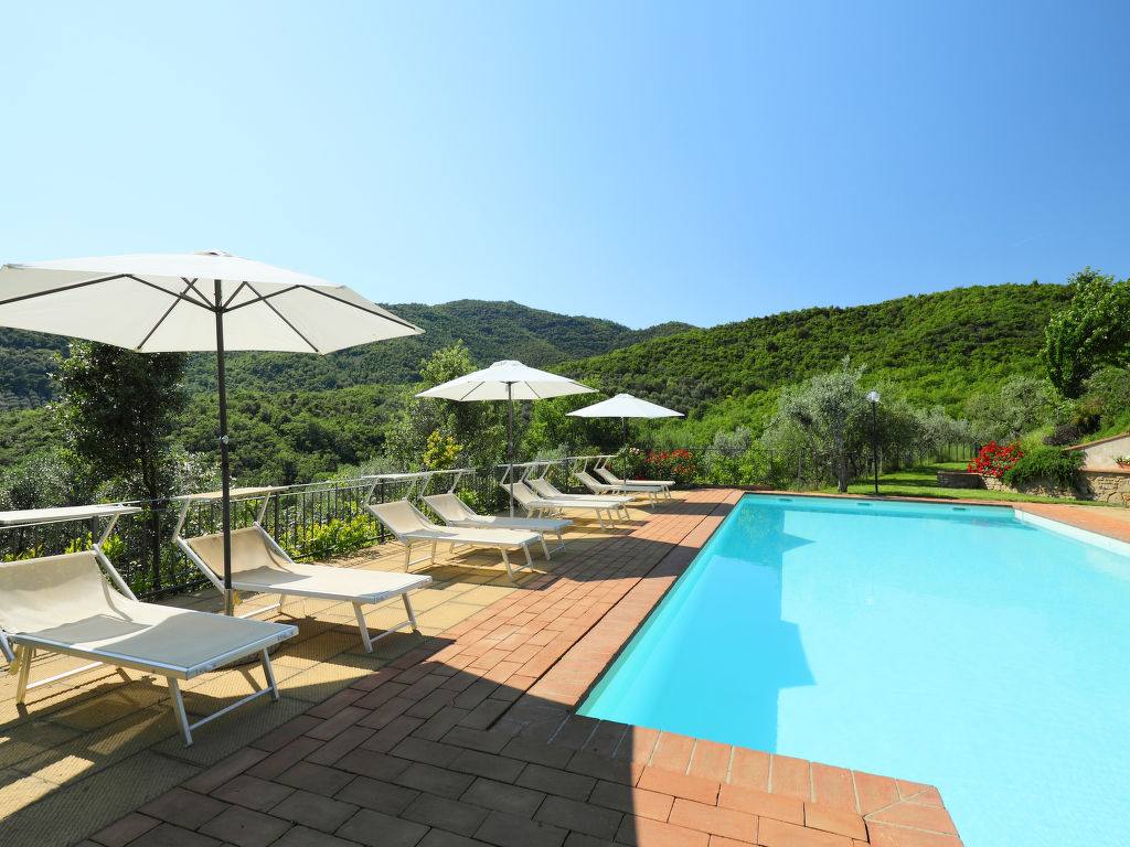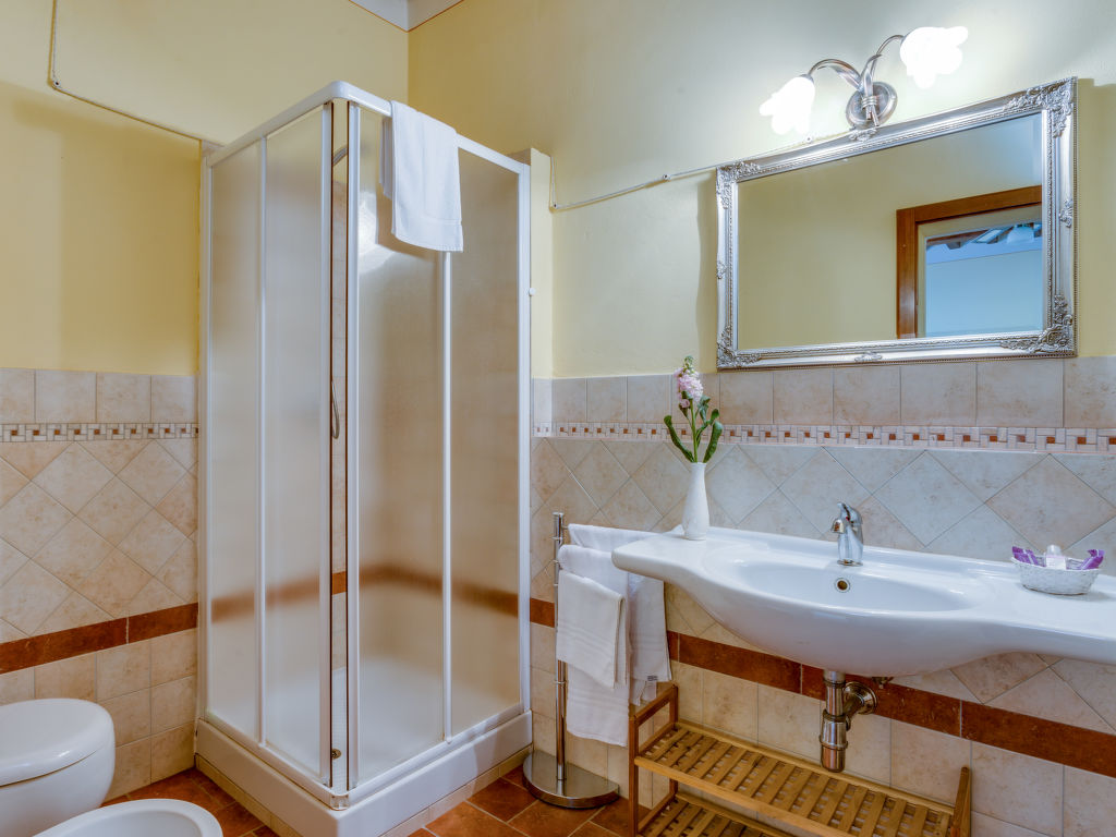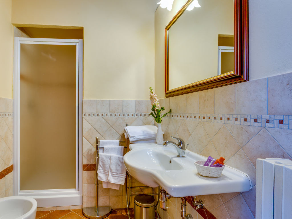 9-Zimmer-Villa 300 m2 auf 3 Stockwerken. Geräumig, vollständig renoviert, schön und geschmackvoll eingerichtet: grosses Wohnzimmer mit 1 Doppeldiwanbett und Sat-TV (Flachbildschirm). Ausgang zum Garten, zur Loggia. Offenes Esszimmer. Ausgang zum Garten. 1 Zimmer mit 1 Bett, 1 Doppelbett und Bad/Bidet/WC. Ausgang zum Garten. 1 Doppelzimmer mit Dusche/Bidet/WC. Küche (6 Kochplatten, Geschirrspüler, Mikrowelle, elektrische Kaffeemaschine, Kapseln für die Kaffeemaschine (Nespresso) gratis). Ausgang zum Garten. Obergeschoss: Salon. Ausgang zum Garten, zur Loggia. 3 Doppelzimmer, jedes Zimmer mit Dusche/Bidet/WC. 2. Obergeschoss: 1 Doppelzimmer. Dusche/Bidet/WC. Komfortable Einrichtung im Landhausstil. Herrliche Sicht auf die Landschaft. Zur Verfügung: Waschmaschine, Kinderhochstuhl, Haartrockner. Internet (Wireless LAN, gratis). Parkplatz. Geeignet für Familien. Maximal 2 Haustiere/Hunde erlaubt.