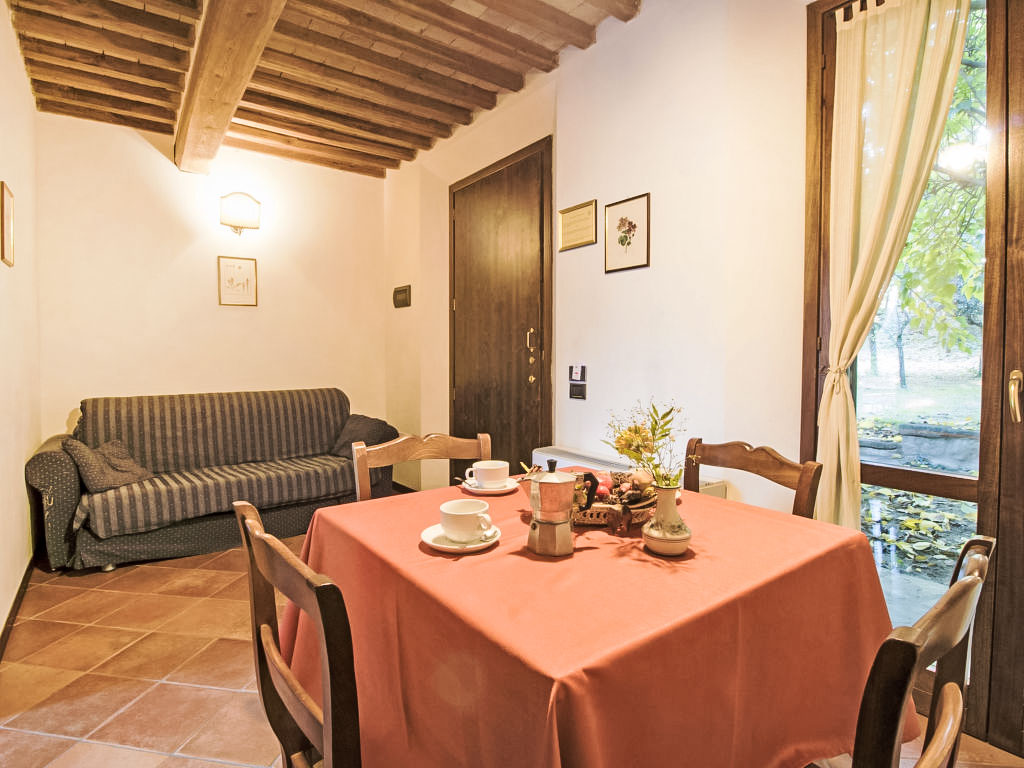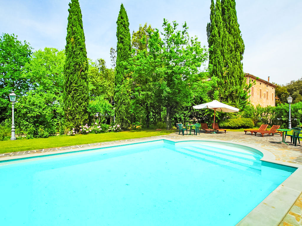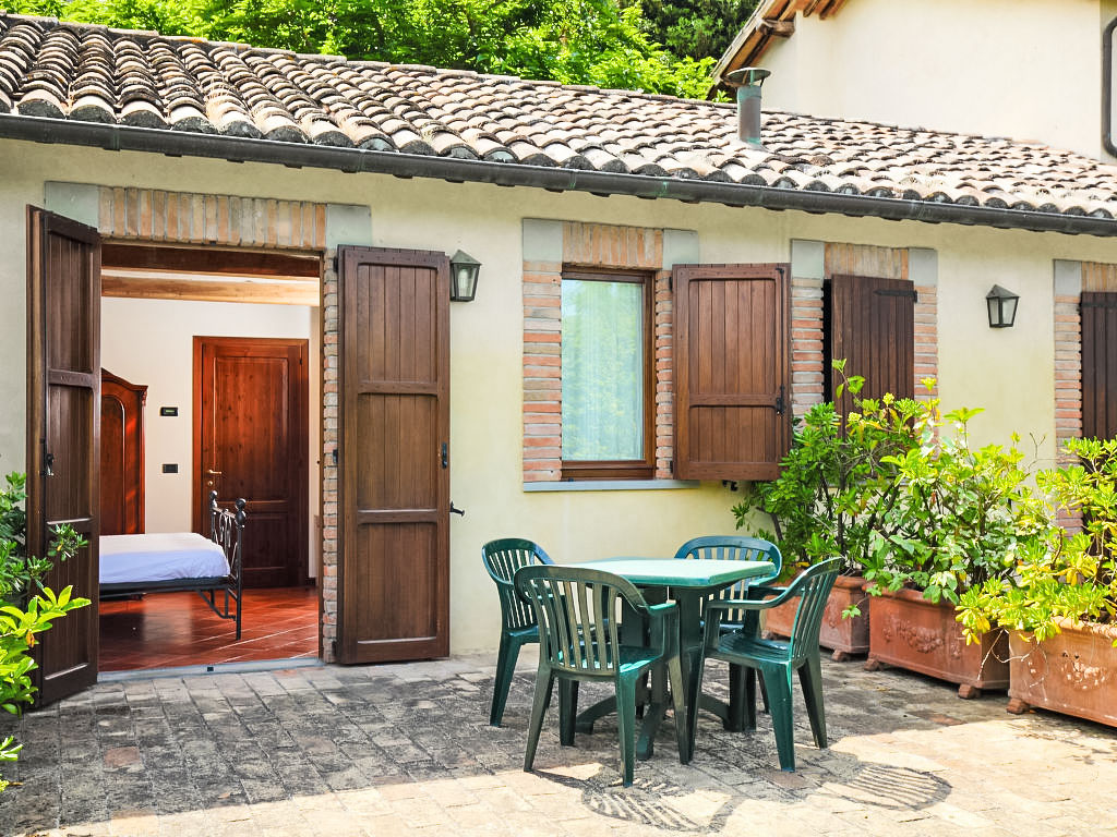 Landsitz "Montecorneo", umgeben von Bäumen. 14 Wohnungen im Ferienhaus. 5 km vom Zentrum von Perugia. Zur Mitbenutzung: Park 500 m2, Schwimmbad nicht einsehbar (15 x 7 m, saisonale Verfügbarkeit: 15.Mai.-30.Sep.). Aussendusche, Kinderspielplatz. Im Hause: Empfang, Frühstücksraum, Wireless LAN, Sauna, Fitnessraum, Tischtennis, Tischfussball, Waschmaschine (zur Mitbenutzung, extra), Heizung nur verfügbar von 15.10. bis 15.04. (extra). Parkplatz auf dem Grundstück. Lebensmittelgeschäft 1 km, Supermarkt 2 km, Restaurant 200 m, Bahnstation "Perugia Ponte San Giovanni" 3 km. Tennis 3 km, Reitstall 5 km. Nahe gelegene Sehenswürdigkeiten: Assisi 20 km, San Feliciano 30 km, Panicale 35 km, Todi 35 km, Città Della Pieve 42 km, Cortona 53 km. Bekannte Seen in der Umgebung sind gut erreichbar: Trasimeno 30 km.