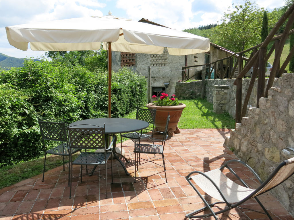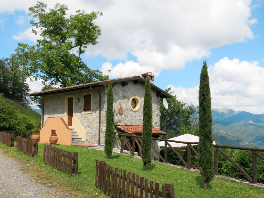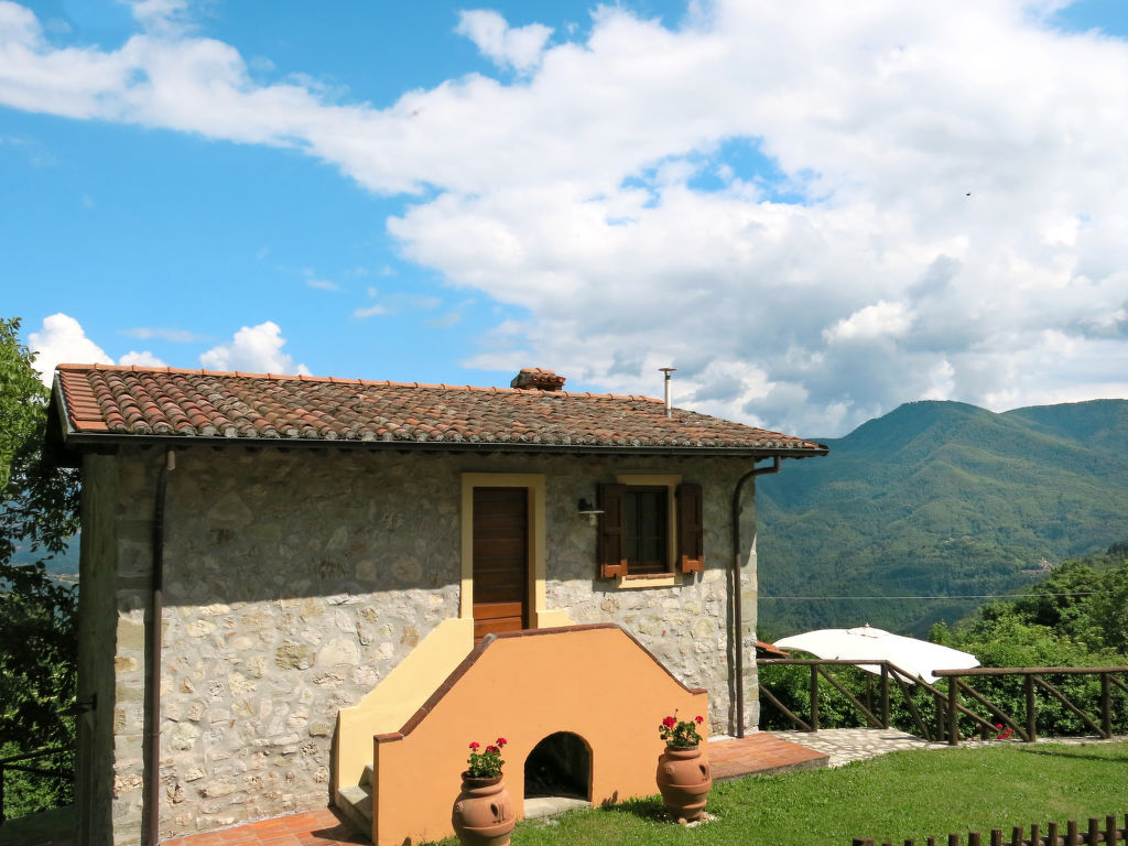 "Il Metato (CNG193)", 3-Zimmer-Haus 48 m2 auf 2 Stockwerken. Renoviert, schön und rustikal eingerichtet: Wohnküche (Backofen, Geschirrspüler, Gasherd, 4 Flammen, Mikrowelle, elektrische Kaffeemaschine) mit offenem Kamin und Sat-TV. Ausgang zur Terrasse. Dusche/WC. G-Heizung. Obergeschoss: 1 Zimmer mit 1 Doppelbett. (Aussentreppe) 1 Zimmer mit 1 franz. Bett. Dusche/WC. G-Heizung. Terrasse. Terrassenmöbel, Gartengrill. Herrliche Panoramasicht auf die Berge, das Tal und die Garfagnana. Zur Verfügung: Kinderhochstuhl, Babybett. Internet (Wireless LAN, gratis). Parkplatz (2 Autos). Bitte beachten: Nichtraucher-Unterkunft. 1 Haustier/Hund erlaubt.