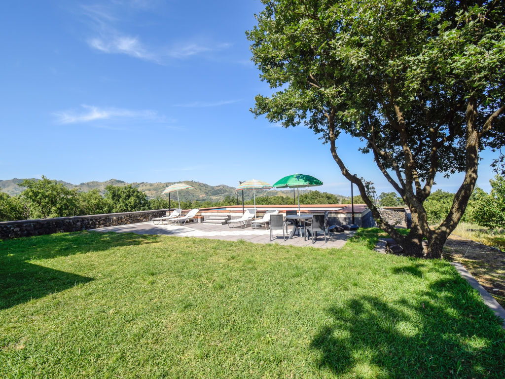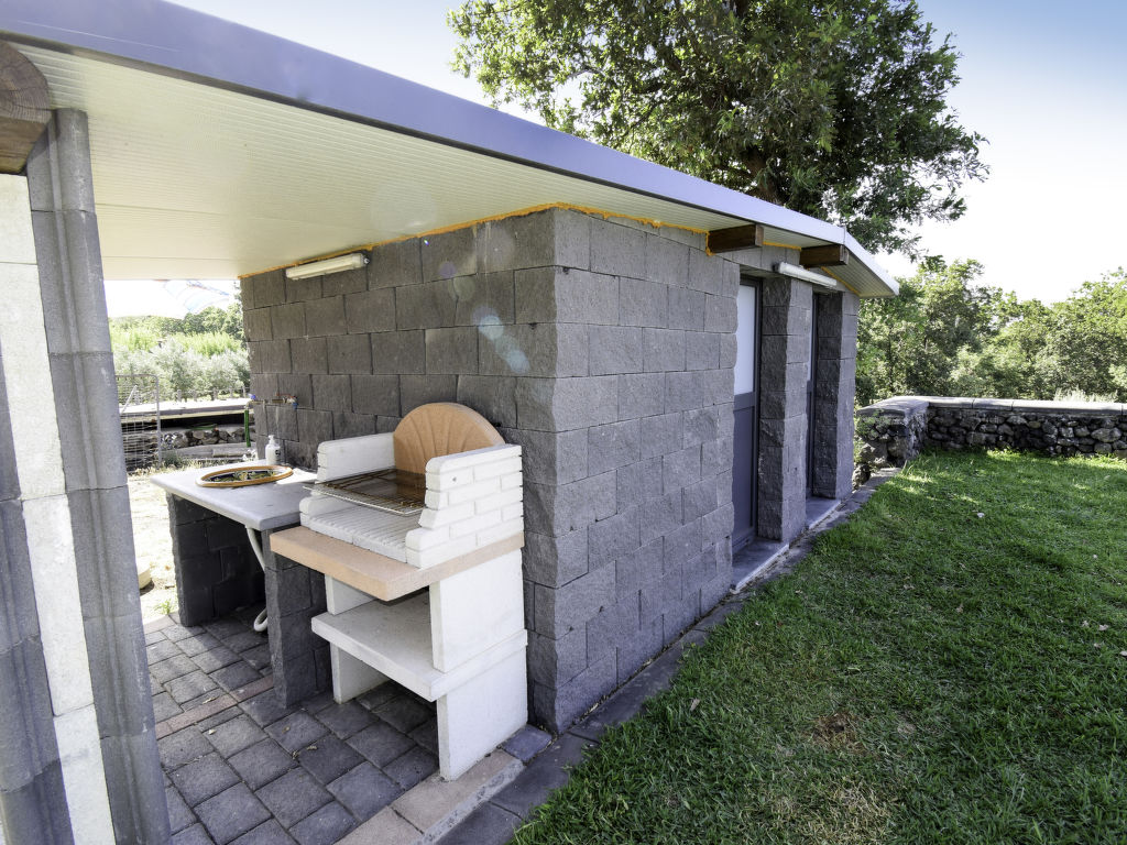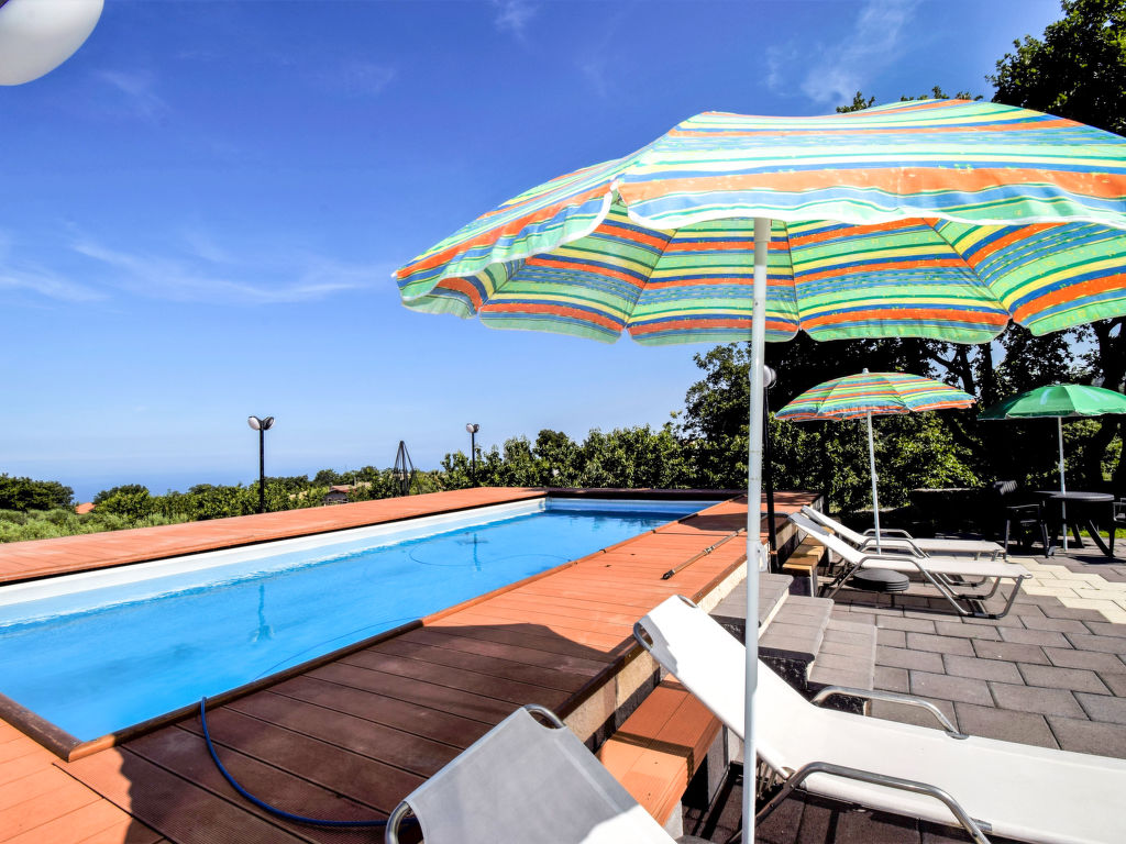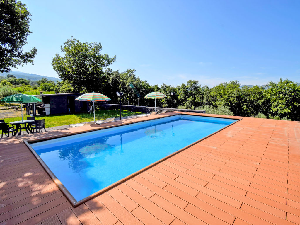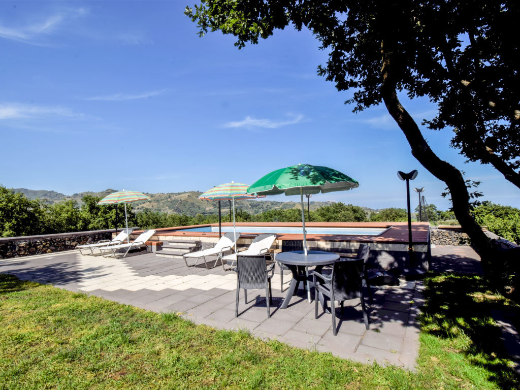 Dreifamilienhaus "Serena", 350 m.ü.M.. 3 Wohnungen im Ferienhaus. 1 km vom Zentrum von Piedimonte Etneo, 3 km vom Zentrum von Fiumefreddo, ruhige, sonnige Lage auf einem Hügel, 10 km vom Meer. Zur Mitbenutzung: Grundstück 40'000 m2 (eingezäunt), Garten 800 m2 (eingezäunt) mit Pflanzen und Blumen, Schwimmbad (4 x 9 m, 130 cm tief, saisonale Verfügbarkeit: 15.Apr.-15.Okt.). Tischtennis, Sitzplatz (20 m2), Gartenmöbel, Grill. Im Hause: Wireless LAN, Waschmaschine (zur Mitbenutzung). 3 km lange steile Zufahrt bis zum Haus. Parkplatz auf dem Grundstück. Lebensmittelgeschäft 2 km, Supermarkt 2 km, Restaurant 1 km, Bushaltestelle 1 km, Sandstrand "Giardini Naxos" 17 km, Steinstrand 8 km, Felsstrand "Torre Archirafi" 15 km. Skischule 25 km. Nahe gelegene Sehenswürdigkeiten: Punto Escursioni sull'Etna 5 km, Giardini Naxos 16 km, Taormina 25 km, Acireale 32 km, Catania 44 km, Aeroporto di Catania 52 km. Bitte beachten: Fahrzeug empfohlen, kein Fahrstuhl vorhanden. Der Besitzer wohnt im selben Haus. Eigentümer hat einen Hund. Ferienwohnung Ref. IT9627.151.1 befindet sich auf dem gleichen Grundstück.