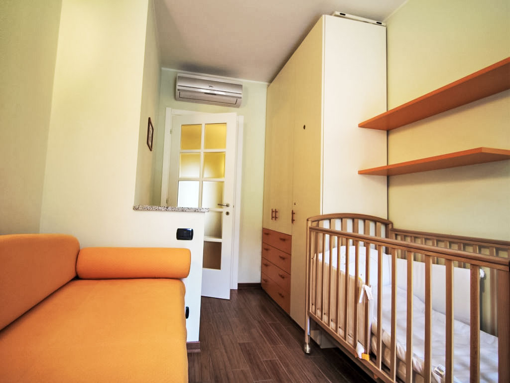 3-Zimmer-Wohnung 80 m2 im 2. Stock. Zweckmässig und komfortabel eingerichtet: Wohn-/Esszimmer mit Sat-TV und Klimaanlage. Ausgang zum Balkon. 1 Zimmer mit 2 Betten, Dusche/Bidet/WC und Klimaanlage. 1 kleines Zimmer mit 1 Bett und Klimaanlage. Ausgang zum Balkon. Kochnische (4 Kochplatten, Backofen, Geschirrspüler, Mikrowelle, elektrische Kaffeemaschine). Dusche/Bidet/WC. G-Heizung (extra). Heizung nur verfügbar von 15.10. bis 15.04. 2 Balkone. Balkonmöbel. Schöne Sicht auf den See. Zur Verfügung: Waschmaschine, Babybett bis 4 Jahre, Haartrockner. Internet (Wireless LAN, gratis). Parkplatz, Höhe 200 cm. Bitte beachten: Nichtraucher-Unterkunft. CIR: 012113-CNI-00001