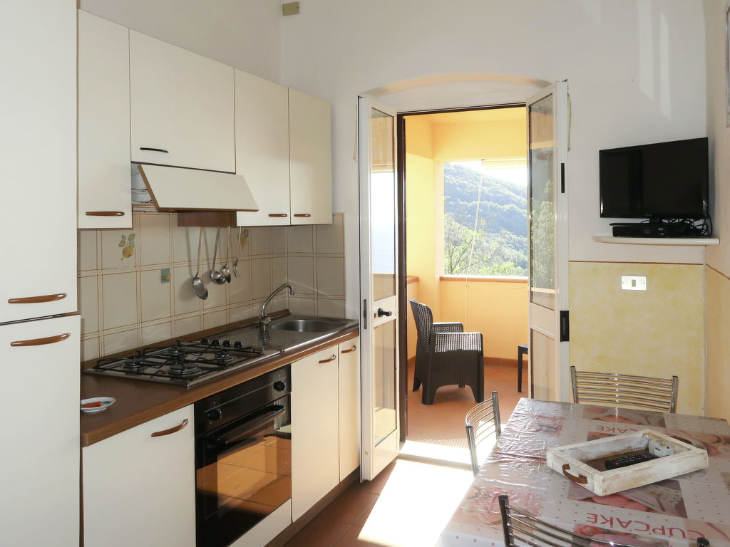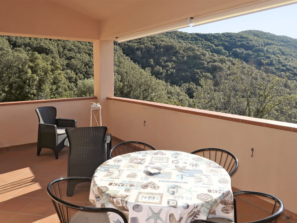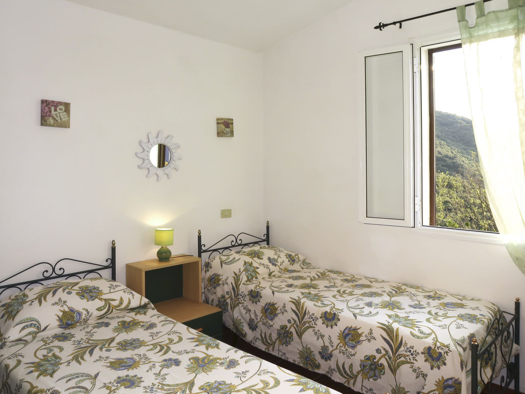 2-Zimmer-Wohnung 33 m2 im 1. Stock. Zweckmässig und schön eingerichtet: 1 Zimmer mit 1 franz. Bett (160 cm). 1 Zimmer mit 2 Betten (80 cm). Küche (Backofen, 4 Flammen, Tiefkühler) mit Esstisch, Sat-TV. Ausgang zur Terrasse. Dusche/Bidet/WC. Keine Heizmöglichkeit. Terrasse teilweise überdacht. Terrassenmöbel. Schöne Sicht auf den Wald und das Meer. Zur Verfügung: Kinderhochstuhl, Babybett. Bitte beachten: Nichtraucher-Unterkunft. Maximal 2 Haustiere/Hunde erlaubt.