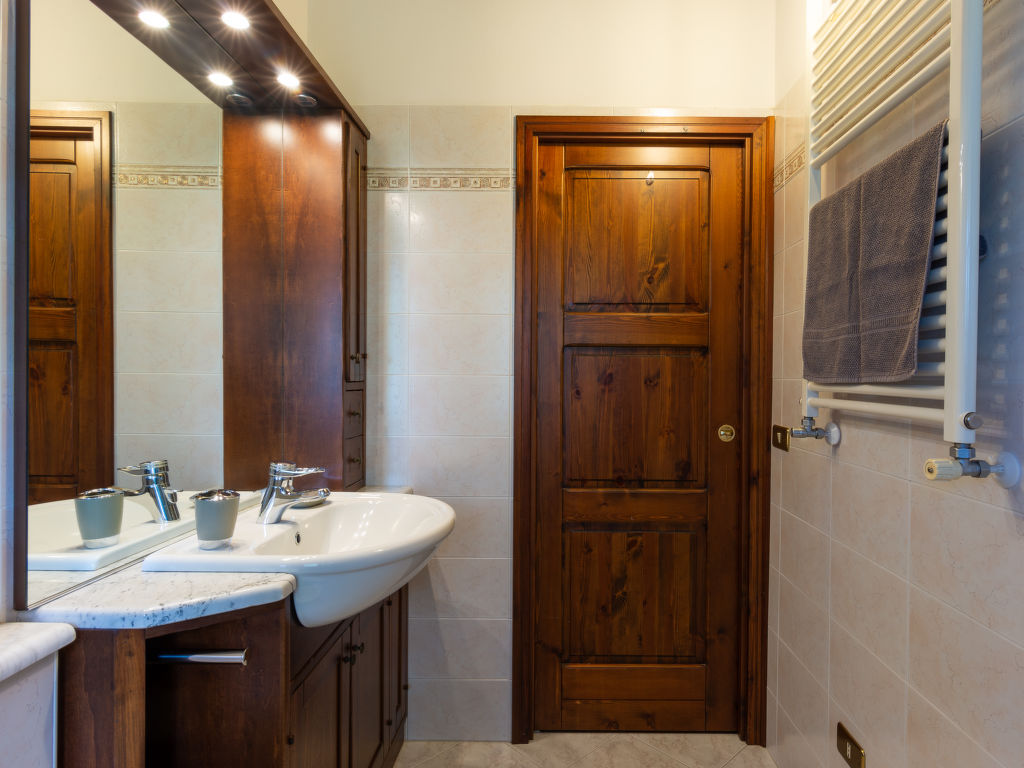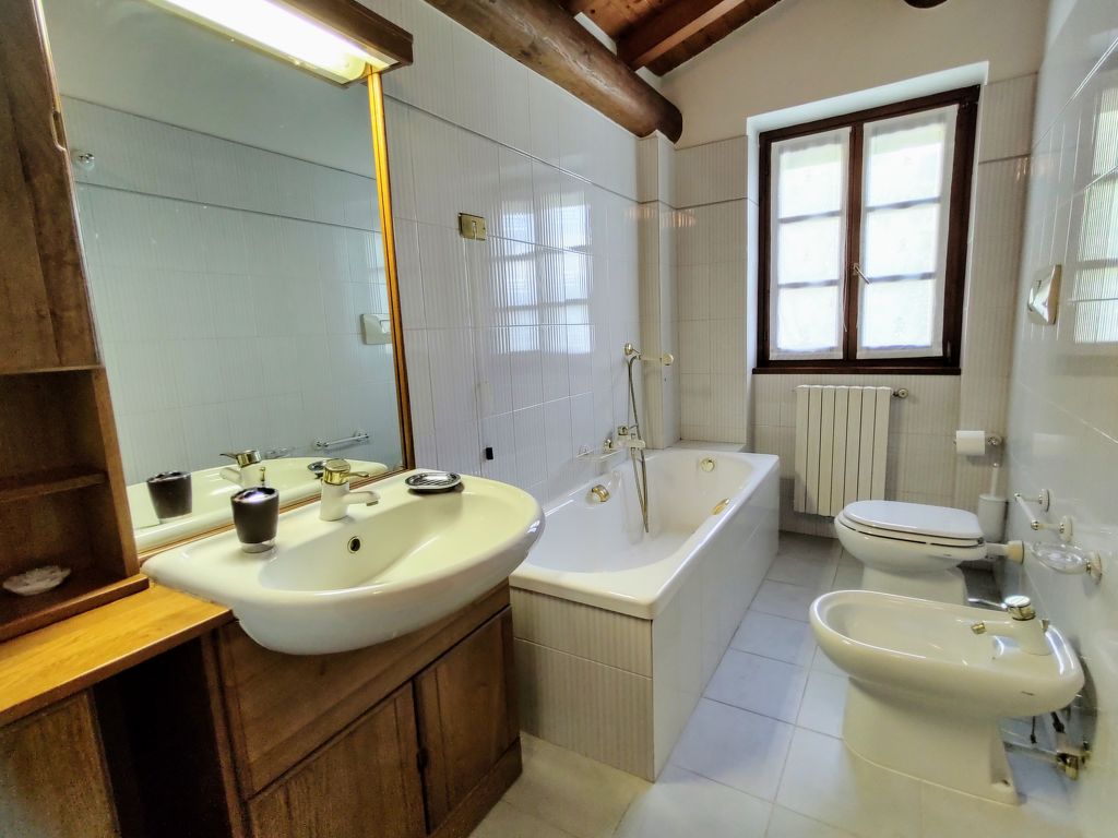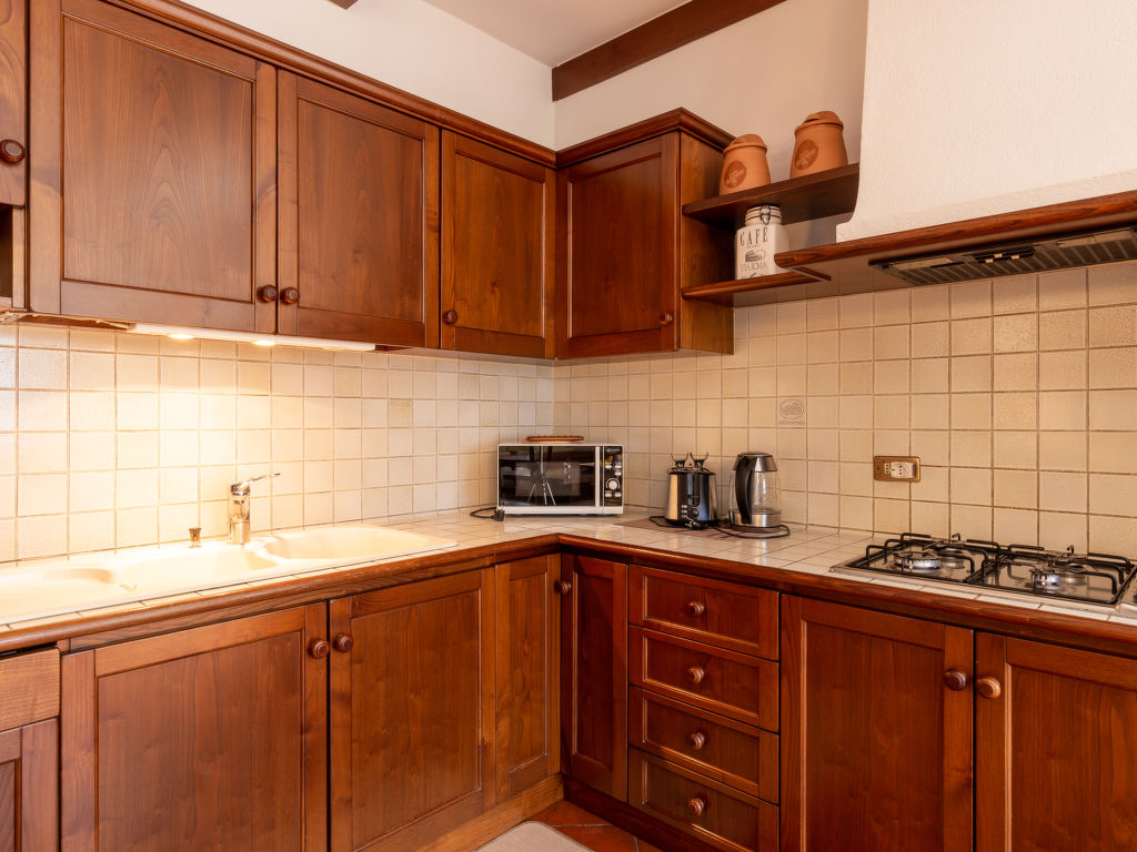 Das mit Naturstein verkleidete Ferienhaus BAITA CASINÈLL steht im Ortsteil Masina, 3,3 km von der Ortsmitte Sorico entfernt. Nächste Einkaufsmöglichkeit 3,7 km, Supermarkt 7 km. Gras- und Kieselstrand 3,7 km. Parkmöglichkeit ca. 70 m, weiter über Fußweg zum Haus. Ca. 1000 m² großes, umzäuntes Wiesengrundstück in terrassierter Hanglage. Große Terrasse mit Steintisch, Stühlen und Sonnenschirm. Möblierter Freisitz im Garten mit 2 Liegestühlen, 2 Sonnenliegen, gemauertem Grill. Außendusche. Überdachter Balkon. Von Garten und Balkon schöner Blick auf den See und die Berge. Angenehme, feriengerechte Einrichtung mit viel Holz. Rustikale Holzbalkendecken, Cotto-, Parkett- und Fliesenboden. Sat-TV. Internetzugang (WLAN, inklusive). Waschmaschine im Erdgeschoss. Gas-Zentralheizung. Klimaanlage mit Kühl-/Heizfunktion im Flur der 2. Etage. Hinweis: Rauchen ist im Haus nicht gestattet.