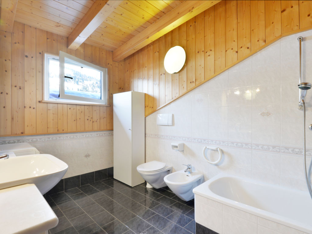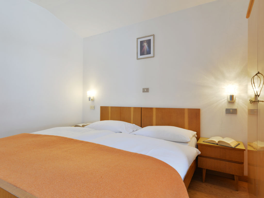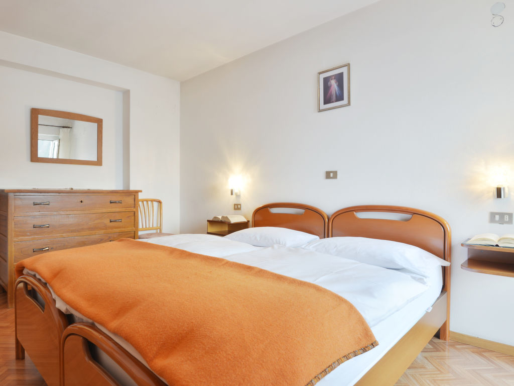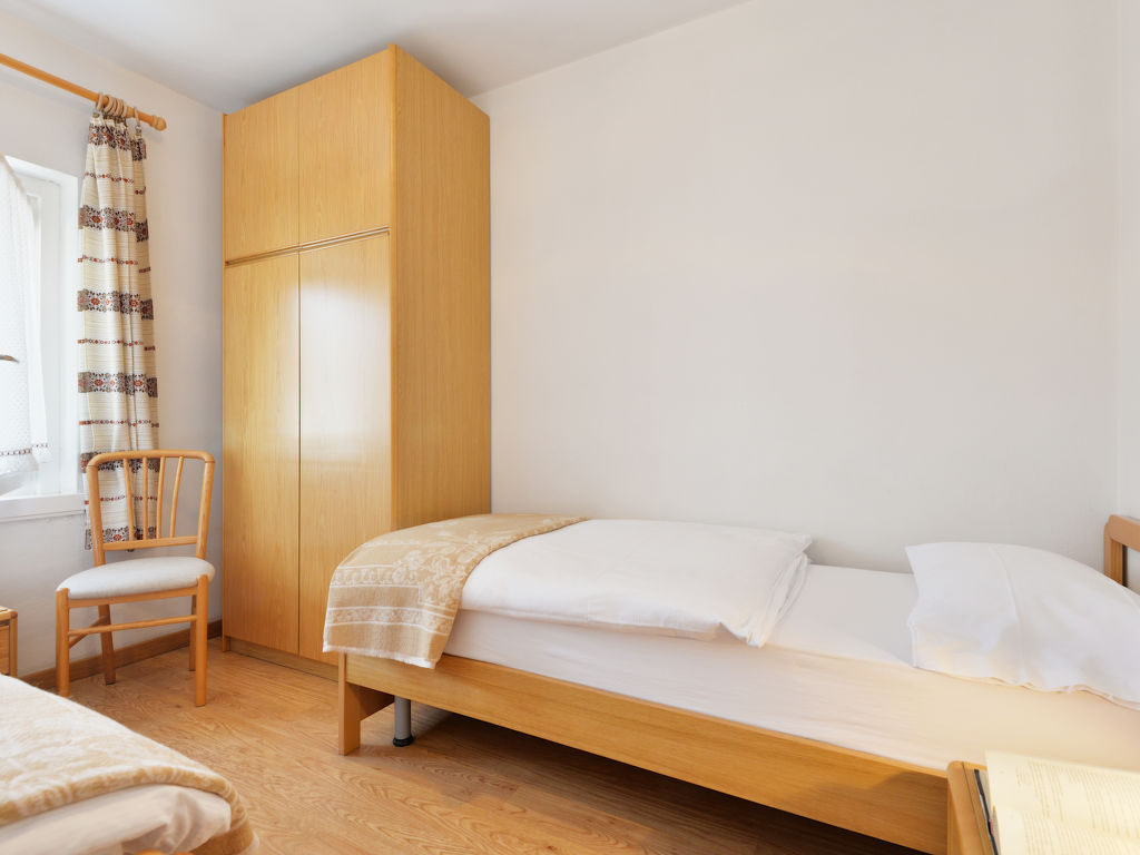 5-Zimmer-Wohnung, 3. Etage, ca. 110 m². Flur mit Garderobe. Wohnküche (4 Ceranfelder, Mikrowelle, Geschirrspüler, Kühlschrank, Kaffeemaschine, Wasserkocher) mit Sitzcouch und Essplatz (Eckbank). 3 Zweibettzimmer (Betten 0,80 m breit, zusammenstellbar). Zweibettzimmer (Betten 0,80 m breit). Bad/WC. Dusche/WC. CIPAT: 022250-AT-675700
