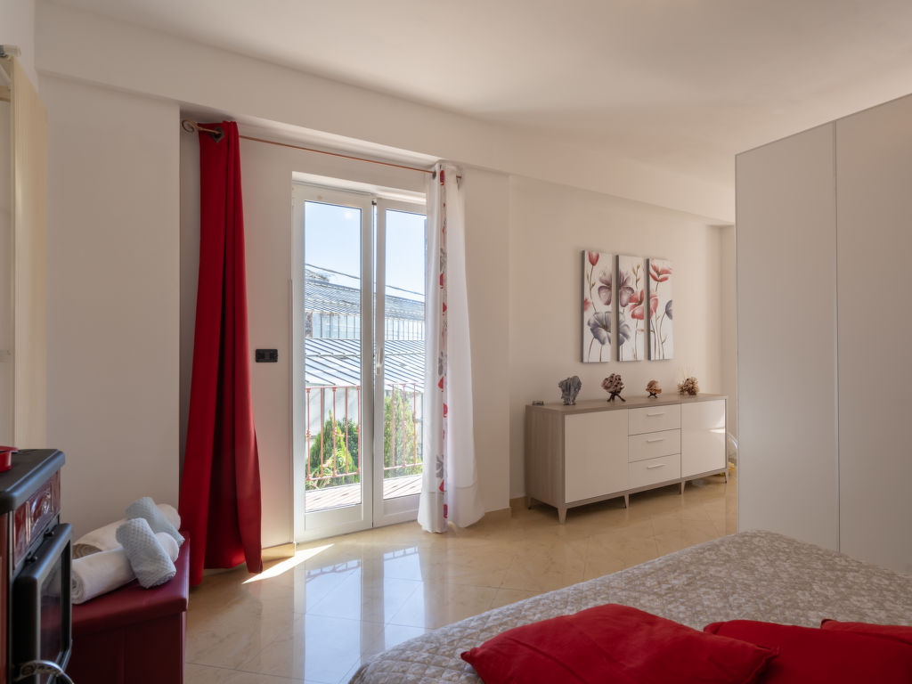 "Relax", 2-Zimmer-Wohnung 70 m2, im Erdgeschoss. Wohn-/Schlafzimmer mit 1 Doppeldiwanbett (140 cm), TV. Ausgang zur Terrasse. 1 offenes Zimmer mit 1 franz. Wandklappbett (160 cm), Schwedenofen. Küche (6 Kochplatten, Backofen, Geschirrspüler, Mikrowelle, Tiefkühler, elektrische Kaffeemaschine) mit Esstisch. Ausgang zur Terrasse. Dusche/Bidet/WC. G-Heizung. 2 grosse Terrassen, Laube. Terrassenmöbel, Gartengrill. Sehr schöne Sicht auf das Meer. Zur Verfügung: Waschmaschine, Fliegengitter, Kinderhochstuhl, Babybett. Internet (Wireless LAN, gratis). 1 Haustier/Hund erlaubt. CITRA: 008055-LT-1122