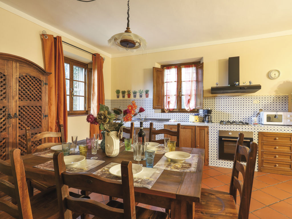 "Il Rustico", 3-Zimmer-Landhaus 75 m2 auf 2 Stockwerken. Schön und gemütlich eingerichtet: Wohn-/Schlafzimmer mit 1 Doppeldiwanbett, Esstisch und Sat-TV. Ausgang zur Terrasse. Offene Küche (4 Kochplatten, Backofen, Geschirrspüler, Mikrowelle, Tiefkühler, elektrische Kaffeemaschine). Obergeschoss: 1 Zimmer mit 1 franz. Bett (160 cm). 1 Zimmer mit 2 Betten. Dusche/WC. G-Heizung, Klimaanlage. Terrasse. Terrassenmöbel, Gartengrill (mobil). Sicht auf Castelvecchio di Compito Alto. Zur Verfügung: Waschmaschine, Bügeleisen, Kinderhochstuhl, Babybett. Internet (Wireless LAN, gratis). Bitte beachten: Nichtraucher-Unterkunft. 1 Haustier/Hund erlaubt.