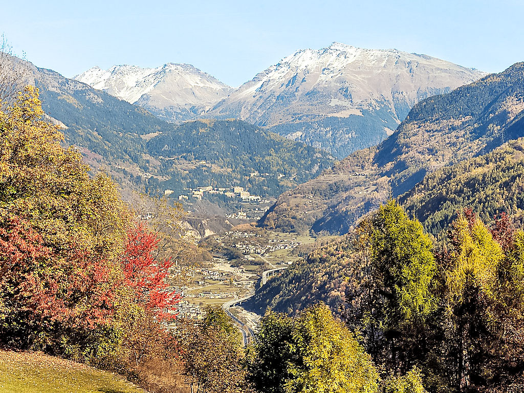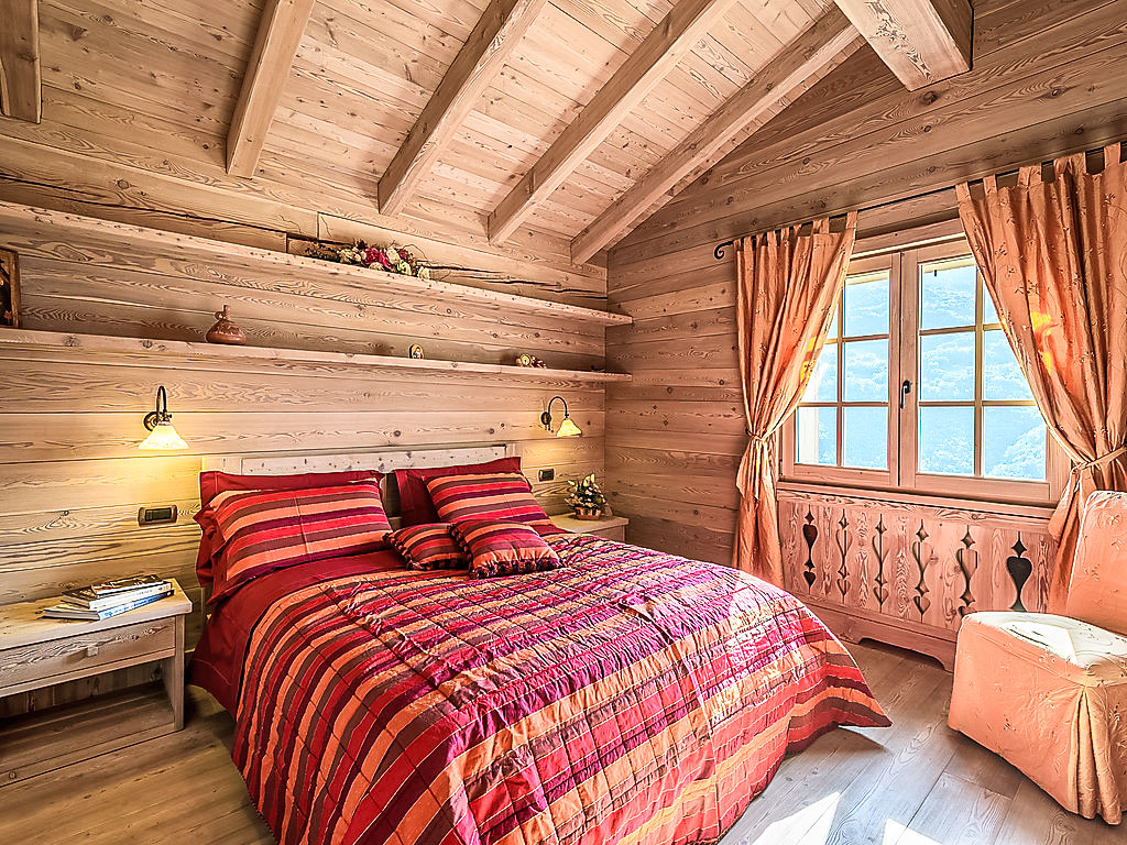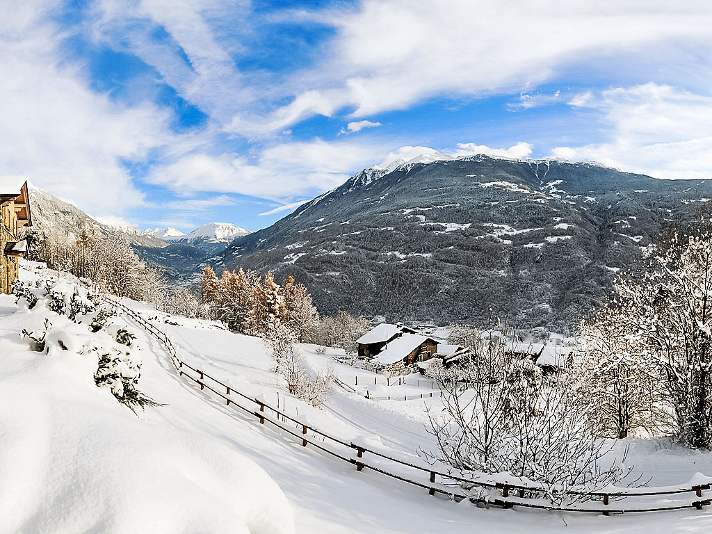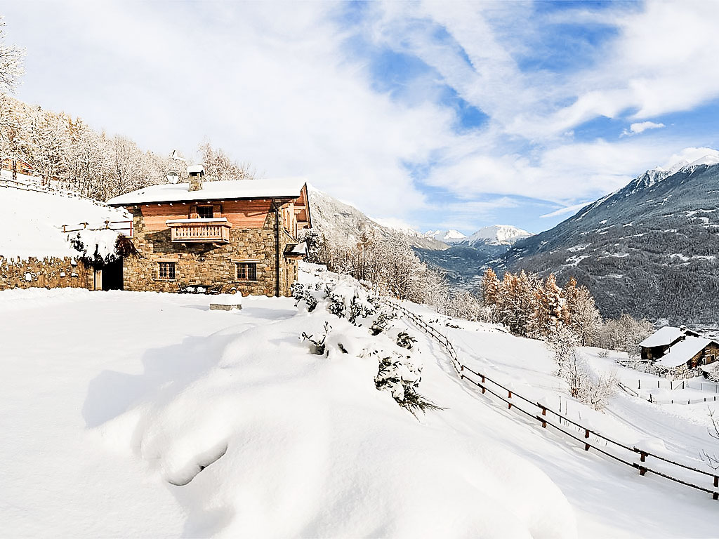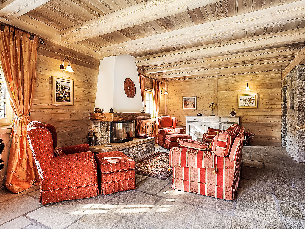 5-Zimmer-Chalet 300 m2 auf 2 Stockwerken. Geräumig und hell, teilweise abgeschrägt, schön und stilvoll eingerichtet: offenes grosses Wohnzimmer mit offenem Kamin und Kabel-TV (Flachbildschirm). Ausgang zum Garten. Grosse Wohnküche (4 Kochplatten, Backofen, Geschirrspüler, Toaster, Mikrowelle, Tiefkühler, elektrische Kaffeemaschine, Kapseln für die Kaffeemaschine (Nescafè Dolce Gusto)) mit Esstisch, Essecke und Holzofen. Dusche/Bidet/WC. Obergeschoss: 1 Zimmer mit 1 Bett und 1 x 2 Etagenbetten, TV. 1 Zimmer mit 1 franz. Bett und TV. 1 Zimmer mit 1 franz. Bett und Dusche/Bidet/WC. Ausgang zum Balkon. Dusche/Bidet/WC. Holzböden, Natursteinböden. Kleiner Balkon. Liegestühle (4). Sehr schöne Panoramasicht auf die Berge, das Tal und den Garten. Zur Verfügung: Waschmaschine, Haartrockner, Holz (extra). Internet (Wireless LAN, gratis). Bitte beachten: Nichtraucher-Haus. 1 Haustier/Hund erlaubt. 014034-CNI-00002