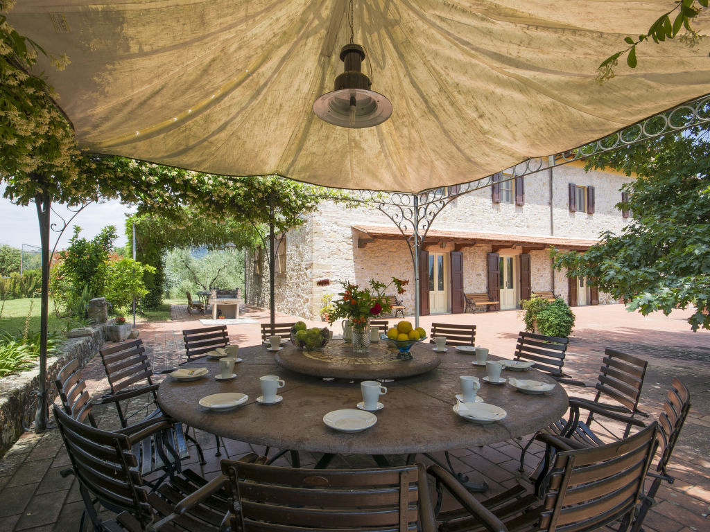 8-Zimmer-Haus 400 m2 auf 2 Stockwerken, im Erdgeschoss. Renoviert, rustikal und gemütlich eingerichtet: Eingang. Grosses Wohn-/Esszimmer mit offenem Kamin und Sat-TV. Ausgang zum Garten, zur Terrasse. Offene Küche (5 Kochplatten, Backofen, Geschirrspüler, Mikrowelle, elektrische Kaffeemaschine, Pizzaofen). 2 Duschen. Obergeschoss: Wohnzimmer. 2 Doppelzimmer. 1 grosses Zimmer mit 2 Betten und 1 Doppelbett. 1 Zimmer mit 2 Betten. 2 Zimmer, jedes Zimmer mit 2 Betten und Dusche/Bidet/WC (privat). 2 Duschen/Bidet/WC, Doppelwaschbecken. Grosser Garten. Terrassenmöbel, Gartengrill, Sitzplatz. Schöne Panoramasicht auf die Landschaft. Zur Verfügung: Waschmaschine, Kinderhochstuhl, Babybett bis 2 Jahre. Internet (Wireless LAN, gratis). Geeignet für Familien. 1 Haustier/Hund erlaubt.