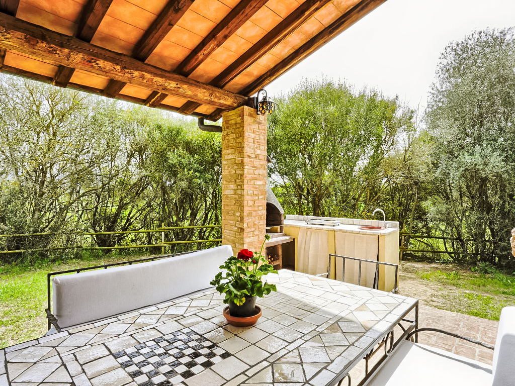 "Sweet Maremma", 3-Zimmer-Haus 50 m2, im Erdgeschoss. Renoviert, geschmackvoll eingerichtet: Esszimmer mit Esstisch und Sat-TV (Flachbildschirm), Klimaanlage. Ausgang zur Loggia. 1 Doppelzimmer mit Dusche/WC und Klimaanlage. 1 Doppelzimmer mit Klimaanlage. Kochnische (4 Kochplatten, Backofen, Geschirrspüler, X Glaskeramikherd Platten). Dusche/Bidet/WC. E-Heizung, Klimaanlage (extra). Heizung nur verfügbar von 15.10. bis 30.04. Grosser Gartensitzplatz überdacht. Terrassenmöbel, Sitzplatz. Sicht auf die Landschaft. Zur Verfügung: Waschmaschine. Internet (Wireless LAN, gratis). 2 Haustiere/Hunde erlaubt. Bitte beachten Sie, dass das Extrabett nur für ein Kind (maximal 11-jährig) geeignet ist.