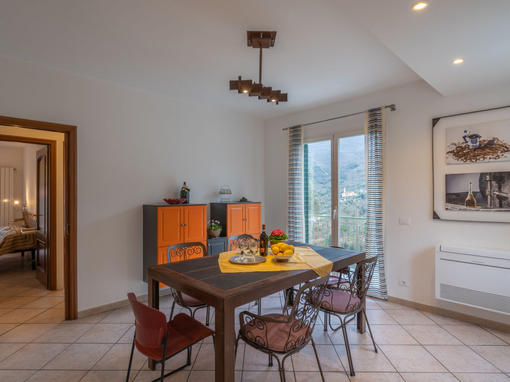 Modernes, alleinstehendes Einfamilienhaus "Innovativa". Im Weiler Alberato, 1.2 km vom Zentrum von Stellanello, 10.5 km vom Zentrum von Andora, 19.5 km vom Zentrum von Alassio, 12 km vom Meer, im Grünen. Zur Alleinbenutzung: naturbelassenes Grundstück 300 m2 mit Pflanzen und Bäumen. Im Hause: Einstellraum für Fahrräder. 1.2 km lange holprige Zufahrt bis zum Haus. Treppenweg (16 Stufen) bis zum Haus. Parkplatz (für 2 Autos). Einkaufsgeschäft 1.5 km, Supermarkt 10 km, Restaurant 1.5 km, Bahnstation "Marina di Andora" 11 km, Sandstrand "Marina di Andora" 12 km. Golfplatz (18 Loch) 15 km.