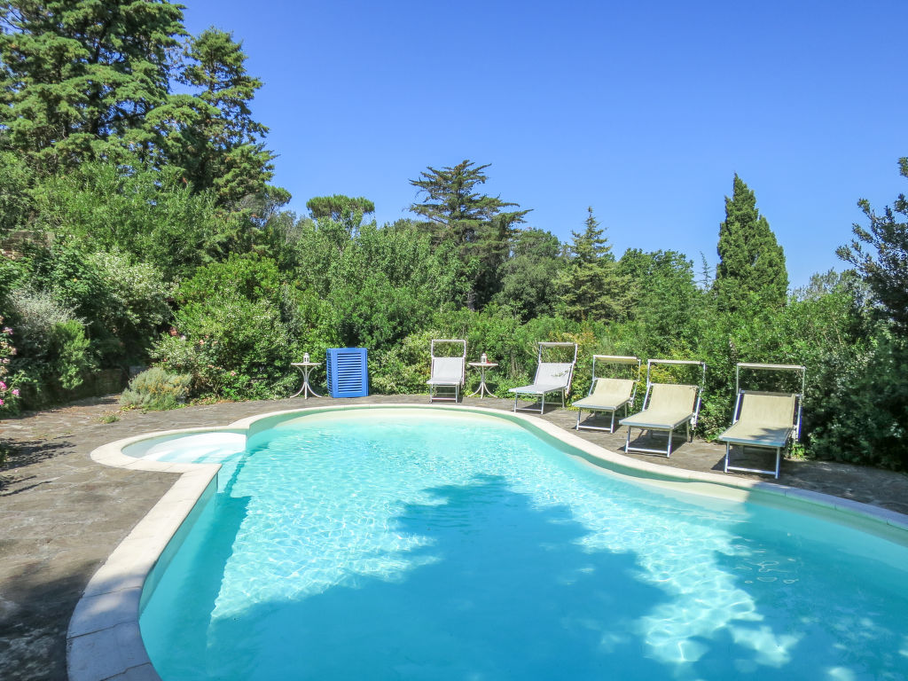 Diese Villa ist von einem Park mit mediterranen Bäumen und Blumen umgeben und bietet Blick auf das Meer von Livorno. Schöne, alleinstehende Villa "La Casa Vivente", 300 m.ü.M., umgeben von Bäumen. Im Weiler Castellaccio, 5 km vom Zentrum von Quercianella, 15 km vom Zentrum von Castiglioncello, ruhige, sonnige Lage, 5 km vom Meer. Zur Alleinbenutzung: Grundstück (eingezäunt), Garten mit Rasen, Schwimmbad (130 - 160 cm tief, 12.05.-30.09.). Ungleichmässige Schwimmbadform, WC im Poolbereich, Aussendusche, Pergola, Gartenmöbel, Grill. Koch möglich (extra). Parkplatz (für 4 Autos) beim Haus. Supermarkt 2 km, Restaurant, Bushaltestelle 500 m, Bahnstation 5 km, Sandstrand 6 km, Kieselstrand "Quercianella" 6 km, Felsstrand "Sonnino" 5 km. Nahe gelegene Sehenswürdigkeiten: Livorno 8 km, Pisa 30 km, Firenze 80 km. Besitzer wohnt in separatem Hausteil. In den grünen Hügeln gelegen und ideal für einen Urlaub inmitten der Natur in der Nähe des Meeres. Keine Jugendgruppen erlaubt.