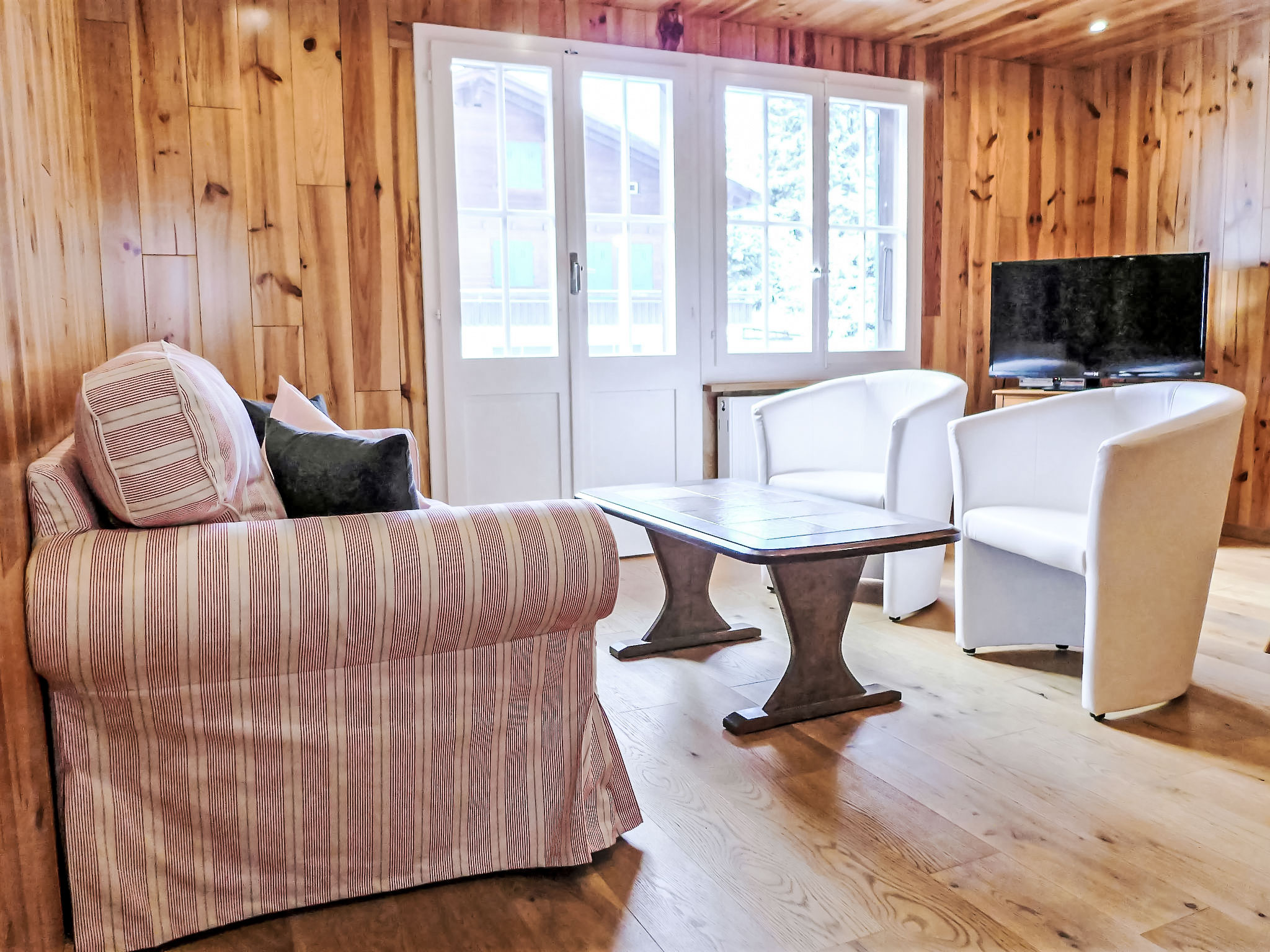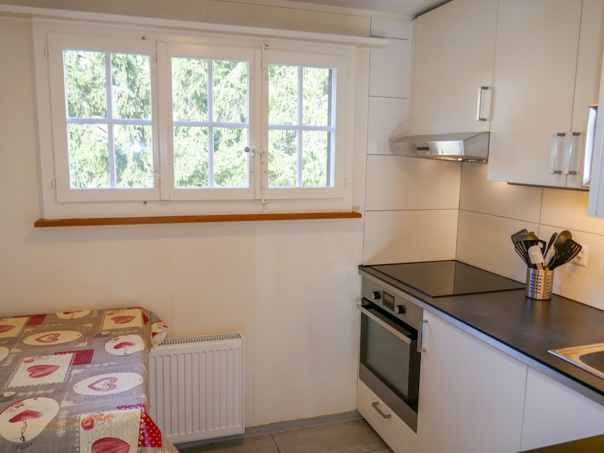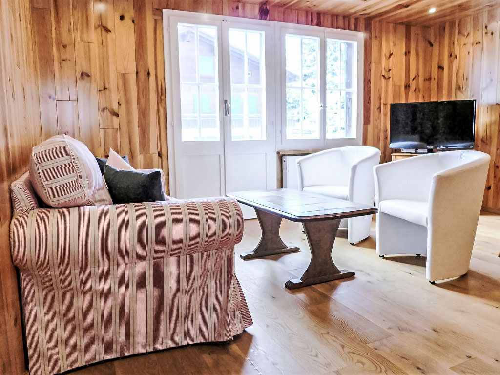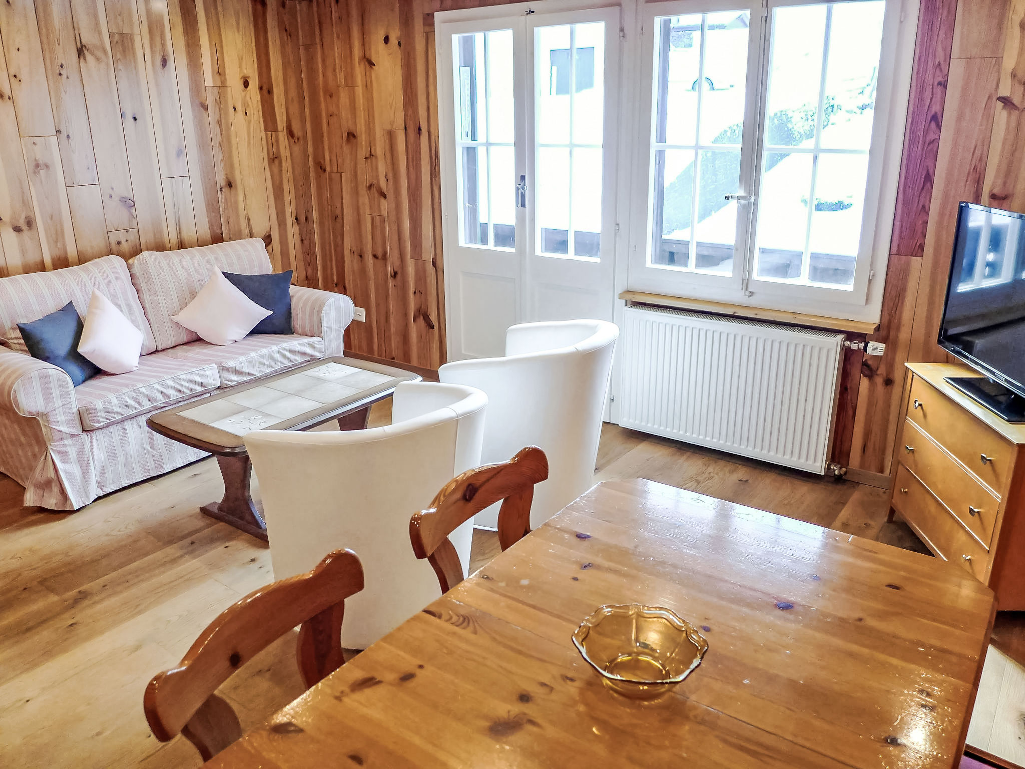 3-Zimmer-Wohnung 60 m2 im 1. Stock, Südlage. Gemütlich und mit viel Holz eingerichtet: Wohn-/Esszimmer mit Digital-TV, Internationale TV-Sender, Flachbildschirm und Radio. Ausgang zum Balkon, Richtung Süden. 2 Zimmer, jedes Zimmer mit 2 Betten (90 cm, Länge 200 cm). Wohnküche (Backofen, Geschirrspüler, 4 Glaskeramikherd Platten, elektrische Kaffeemaschine, Kapseln für die Kaffeemaschine (Nespresso) extra, Racletteofen, Fondue Set (Käse)). Dusche/WC. Parkettböden. Balkon 6 m2, Südlage. Balkonmöbel. Schöne Sicht auf die Berge und Eigernordwand. Zur Verfügung: Haartrockner. Internet (Wireless LAN, gratis). Parkplatz Nr. 1 beim Haus. Bitte beachten: Nichtraucher-Unterkunft. Feuerlöscher.