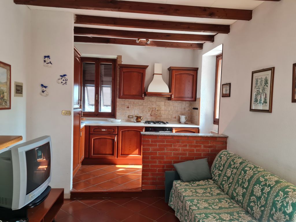 3-Zimmer-Haus, Erdgeschoss/Obergeschoss (Hanglage), ca. 65 m². Über Terrasse in Wohn-/Schlafraum mit Bettcouch, Kamin (nur Dekoration) und Essplatz, durch halbhohe Ziegelmauer abgeteilte Küche (4 Flammen, Backofen, Kühlschrank, Kaffeemaschine). Doppelzimmer (Bett 1,60 m breit). Zweibettzimmer (Betten 0,80 m breit). Bad/WC. CITRA: 008030-LT-0139
