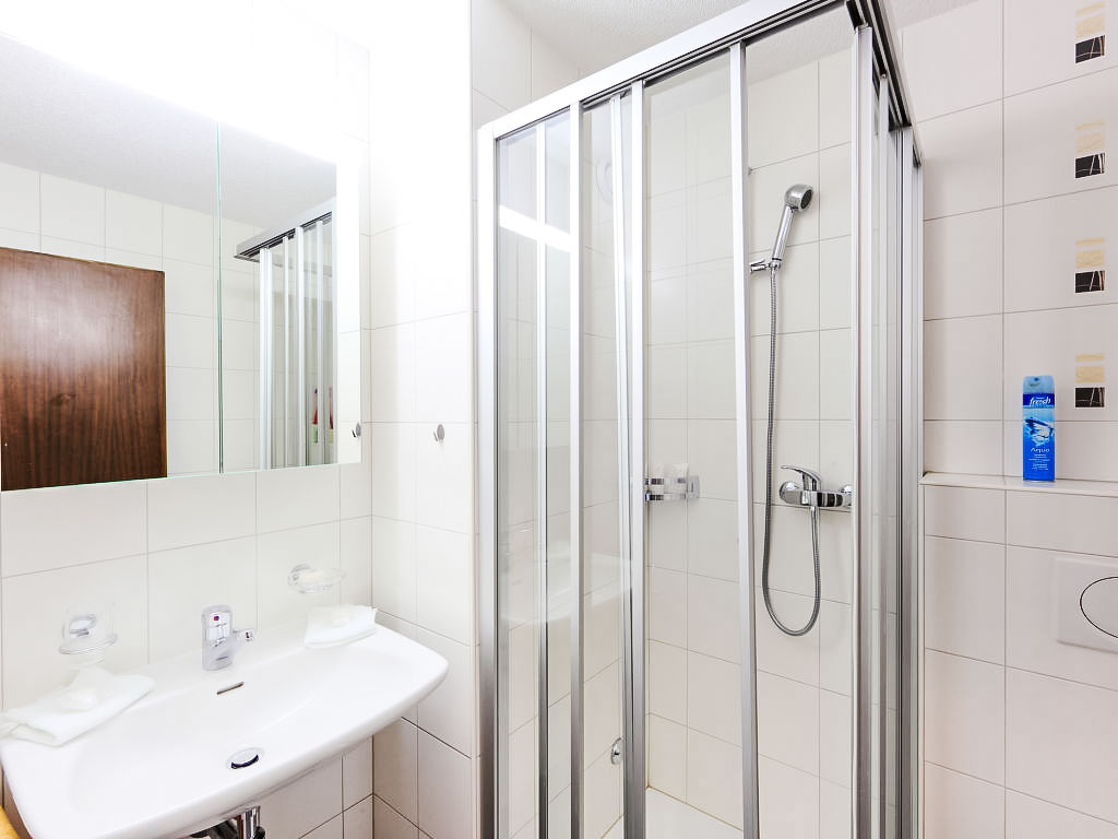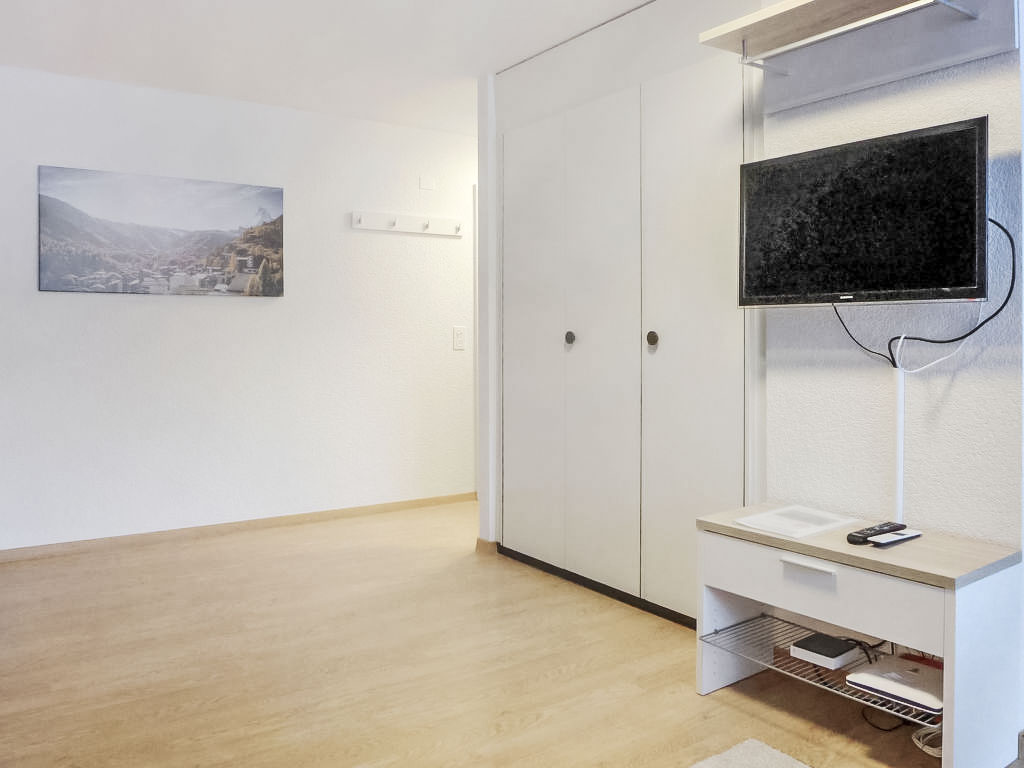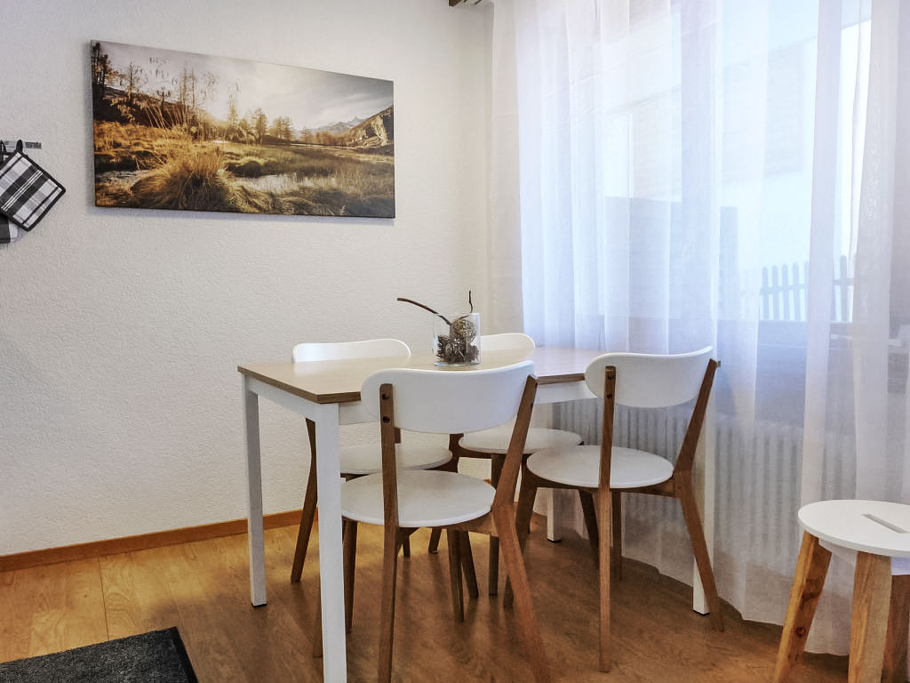 1-Zimmer-Wohnung 30 m2, im Erdgeschoss, Südlage. Hell, teilweise im Jahre 2017, einfach und gemütlich eingerichtet: Wohn-/Schlafzimmer mit 2 Doppelwandklappbetten (2 x 90 cm, Länge 200 cm), TV. Ausgang zum Garten, zur Terrasse. Offene Küche (3 Kochplatten, Backofen, Toaster, Wasserkocher, Tiefkühler, elektrische Kaffeemaschine, Fondue Set (Käse)) mit Esstisch. Dusche/WC. Heizung. Terrasse, Südlage. Terrassenmöbel. Schöne Sicht auf die Berge. Zur Verfügung: Haartrockner. Internet (Wireless LAN, gratis). Bitte beachten: Nichtraucher-Unterkunft.