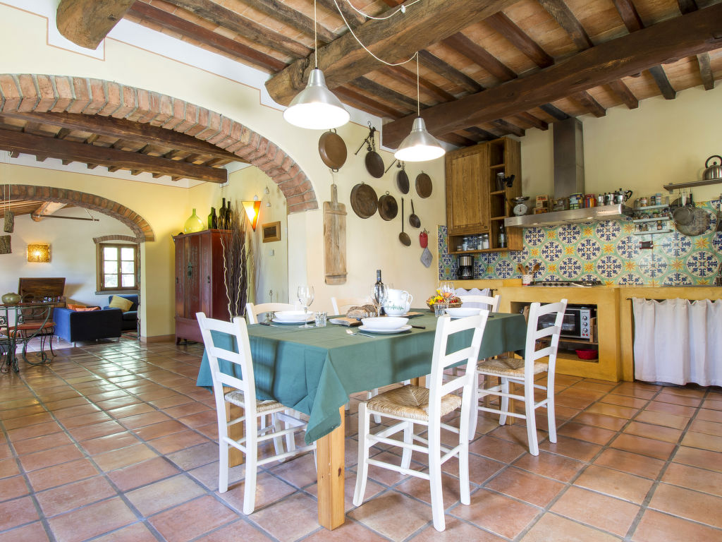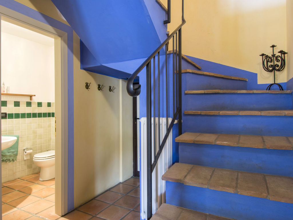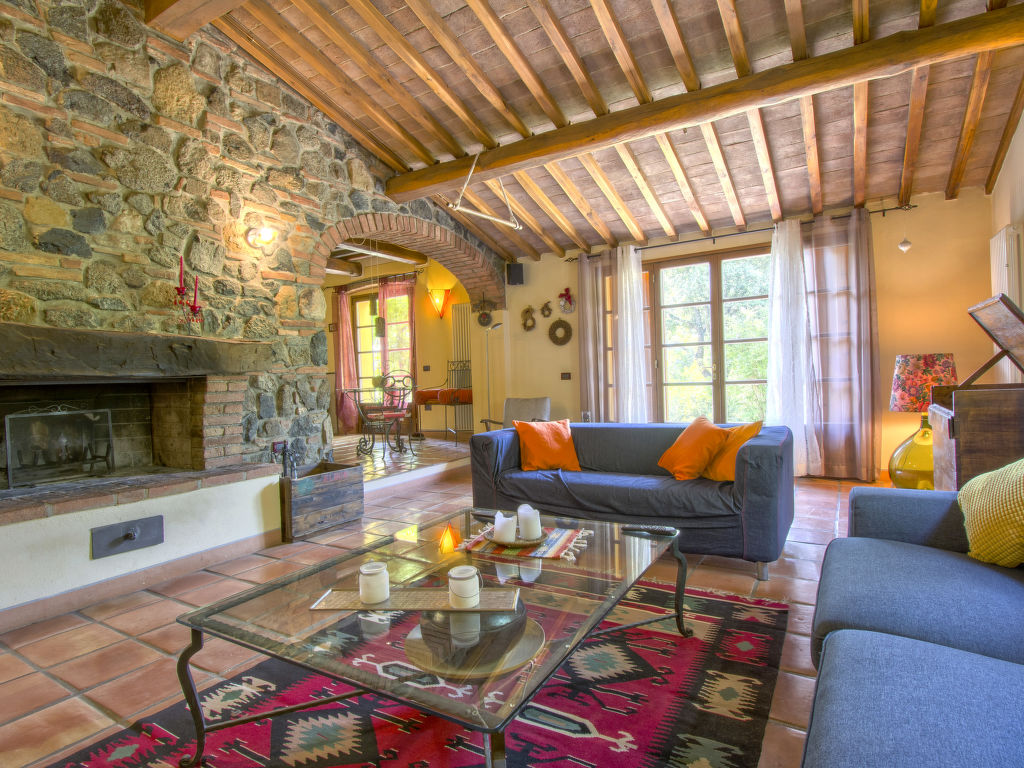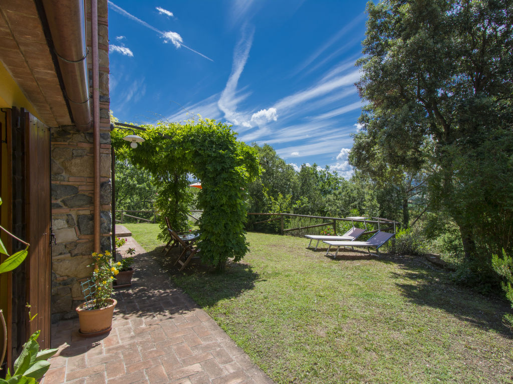 "Podere Gabruccino", 4-Zimmer-Haus 110 m2 auf 2 Stockwerken. Schön und rustikal eingerichtet: Wohnzimmer mit offenem Kamin, Sat-TV und Internationale TV-Sender. Ausgang zum Garten. Offene Küche (5 Kochplatten, Mini-Backofen, Geschirrspüler, Pizzaofen) mit Esstisch. Dusche/WC. G-Heizung. Obergeschoss: 1 Zimmer mit 1 franz. Bett (160 cm). 1 Zimmer mit 2 Betten (80 cm). 1 Zimmer mit 1 franz. Bett (140 cm). Dusche/WC. Holzböden. Terrasse überdacht. Terrassenmöbel, Gartengrill. Schöne Panoramasicht auf die Berge, das Tal und auf das Val di Cecina und Montescudaio. Zur Verfügung: Internet (Wireless LAN). Maximal 2 Haustiere/Hunde erlaubt.