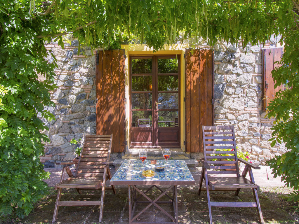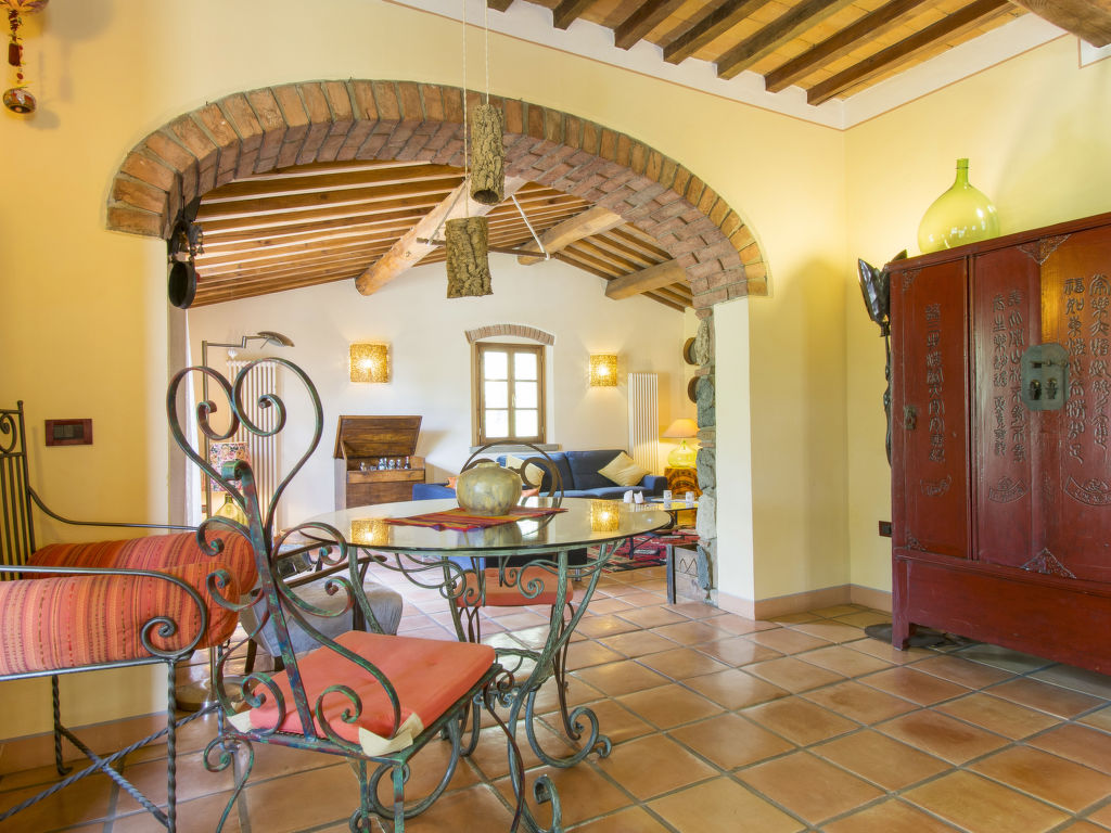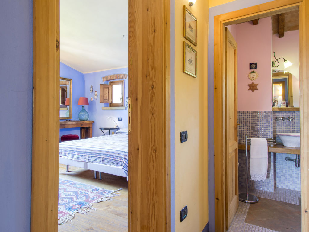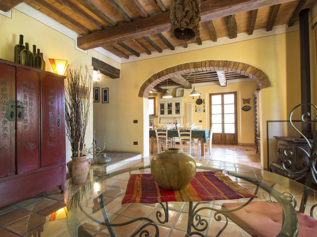 "Podere Gabruccino", 4-Zimmer-Haus 110 m2 auf 2 Stockwerken. Schön und rustikal eingerichtet: Wohnzimmer mit offenem Kamin, Sat-TV und Internationale TV-Sender. Ausgang zum Garten. Offene Küche (5 Kochplatten, Mini-Backofen, Geschirrspüler, Pizzaofen) mit Esstisch. Dusche/WC. G-Heizung. Obergeschoss: 1 Zimmer mit 1 franz. Bett (160 cm). 1 Zimmer mit 2 Betten (80 cm). 1 Zimmer mit 1 franz. Bett (140 cm). Dusche/WC. Holzböden. Terrasse überdacht. Terrassenmöbel, Gartengrill. Schöne Panoramasicht auf die Berge, das Tal und auf das Val di Cecina und Montescudaio. Zur Verfügung: Internet (Wireless LAN). Maximal 2 Haustiere/Hunde erlaubt.