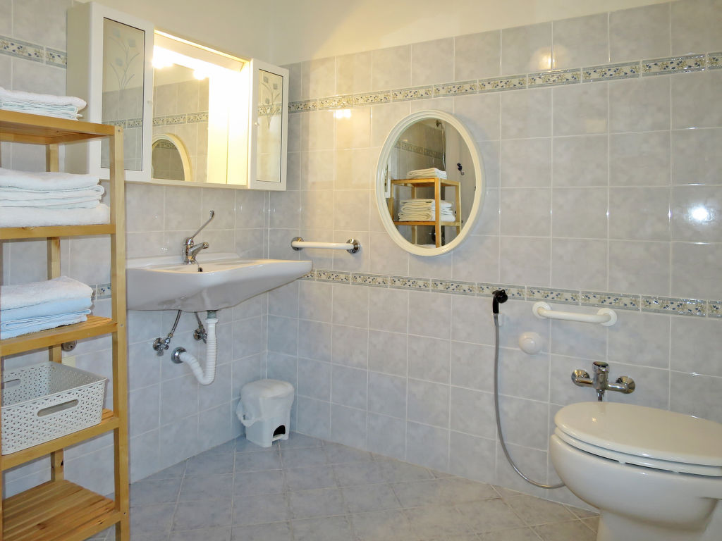 3-Zimmer-Haus 95 m2 auf 2 Stockwerken. Geschmackvoll eingerichtet: Wohn-/Esszimmer mit Esstisch und Sat-TV. Ausgang zur Terrasse. 1 Zimmer mit 1 Doppelbett (160 cm). Offene Galerie mit 2 Betten. Offene Küche (4 Kochplatten, Backofen, Geschirrspüler, Tiefkühler, elektrische Kaffeemaschine). Dusche/WC, sep. WC. G-Heizung. Rasen 100 m2. Terrassenmöbel. Zur Verfügung: Babybett. Internet (Wireless LAN, gratis). Maximal 2 Haustiere/Hunde erlaubt.