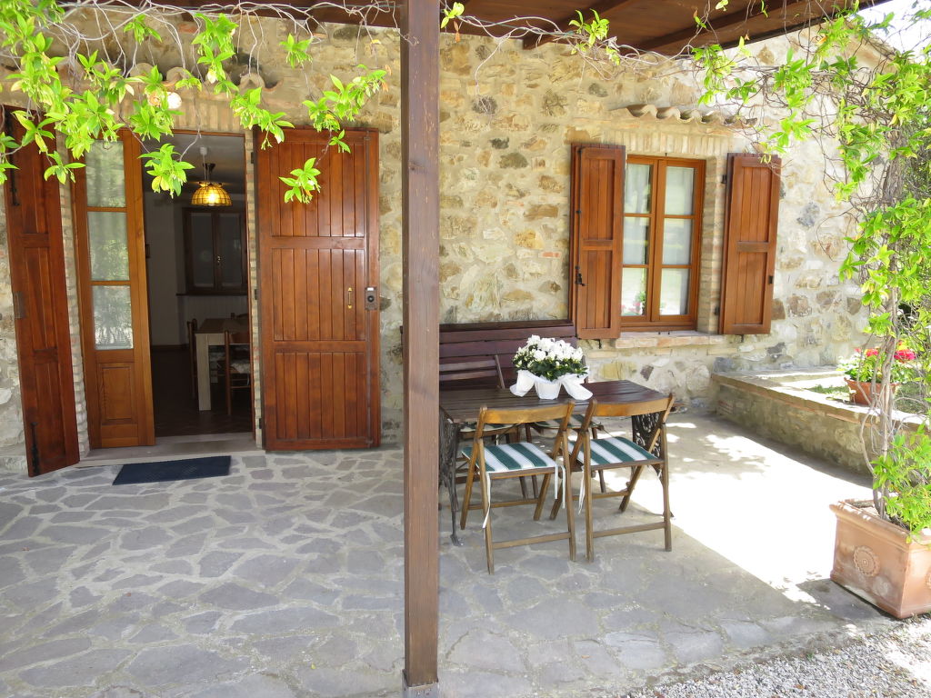 Bauerngut "Podere Cafaggiolo", umgeben von Bäumen und Wiesen. 2 Häuser im Ferienresort. 4 Wohnungen in der Residenz. 11 km vom Zentrum von Volterra, 18 km vom Zentrum von San Gimignano, 50 km vom Zentrum von Siena, auf einem Hügel, 55 km vom Meer, im Wald. Zur Mitbenutzung: Grundstück 3'000 m2, Garten (nicht eingezäunt) Rasen und Bäumen, Schwimmbad (11 x 5 m, saisonale Verfügbarkeit: 15.Mai.-25.Sep.). Aussendusche, Basketball, Sitzplatz, Gartenmöbel, Grill, Kinderspielplatz. Im Hause: Wireless LAN, Tischtennis, Tischfussball. Brötchenservice. Zufahrt (4 km Naturweg). Parkplatz auf dem Grundstück. Einkaufsgeschäft 6 km, Supermarkt 11 km, Sandstrand 55 km. Wandergebiete: Monte Nero 1 km. Auf dem Grundstück Tierhaltung. Ab Hof Verkauf von bäuerlichen Produkten. Bitte beachten: Der Besitzer wohnt auf dem gleichen Grundstück. Eigentümer hat einen Hund. Badekappenpflicht.