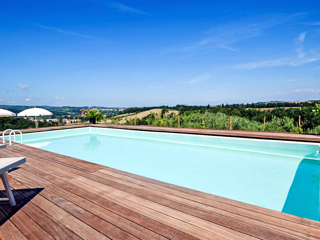 Schönes Bauerngut "Podere La Torre", renoviert, umgeben von Wiesen, Feldern und Weinbergen. Am Ortsrand Certaldo Alto, alleinstehende, sonnige Lage auf einem Hügel, im Grünen. Zur Mitbenutzung: naturbelassenes Grundstück, Garten mit Rasen und Pflanzen, Schwimmbad (5 x 10 m, saisonale Verfügbarkeit: 24.Apr.-02.Okt.). Aussendusche, Terrasse, Gartenmöbel, Grill. In der Anlage: Internetzugang, Wireless LAN, Waschmaschine, Wäschetrockner, Heizung vor Ort zu zahlen, Fahrräder vorhanden. Wäschewechsel 1 mal wöchentlich. Parkplatz auf dem Grundstück. Einkaufsgeschäft 2 km, Supermarkt 2 km, Einkaufszentrum 1 km, Bäckerei 1 km, Zentrum zu Fuss in 20 Minuten erreichbar, Freibad 2 km. Golfplatz 30 km, Tennis 3 km, Reitstall 5 km, Kinderspielplatz 3 km. Nahe gelegene Sehenswürdigkeiten: Certaldo Alto 1 km, Firenze 45 km, Siena 45 km, San Gimignano 12 km. Ab Hof Verkauf von bäuerlichen Produkten. Bitte beachten: Der Besitzer wohnt auf dem gleichen Grundstück.