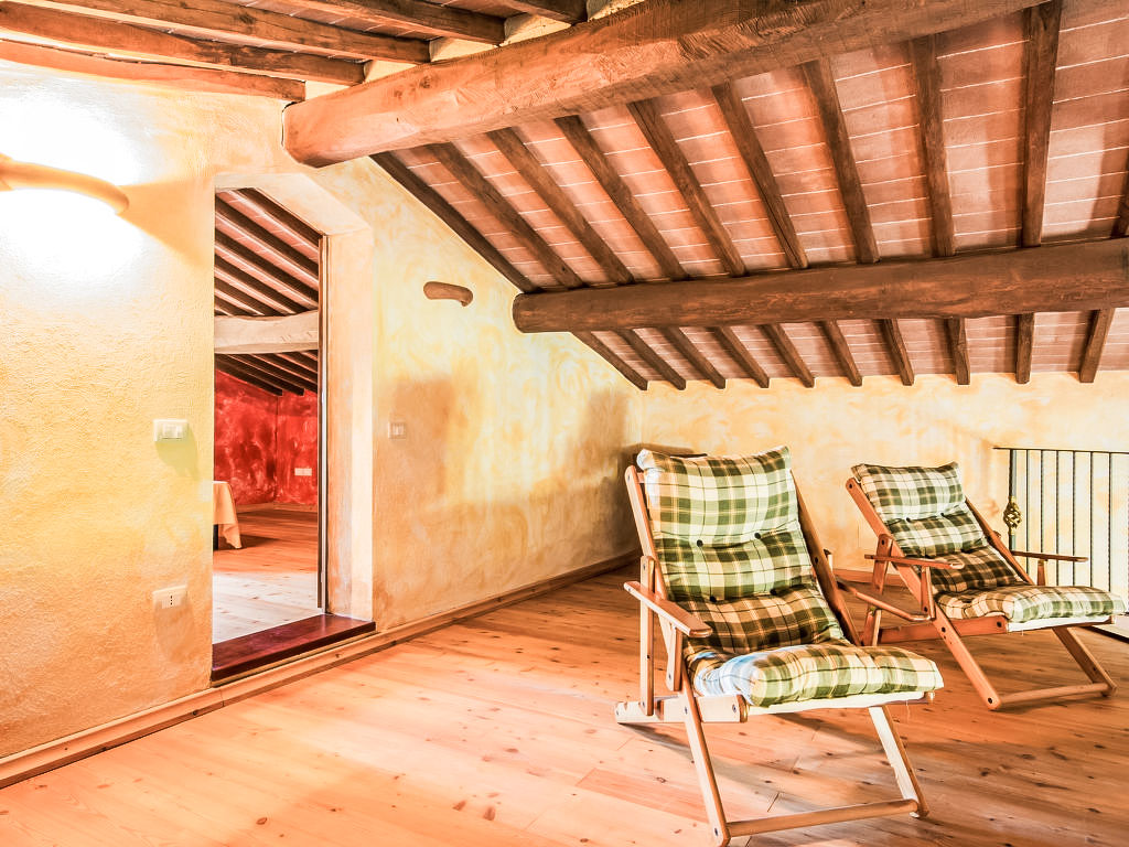 4-Zimmer-Haus 120 m2 auf 2 Stockwerken. Komfortabel und rustikal eingerichtet: offenes Wohn-/Esszimmer mit Esstisch, TV und Radio. Ausgang zum Garten, zur Loggia. 1 Zimmer mit 2 Betten. 1 Doppelzimmer. Ausgang zum Garten. Kleine Küche (4 Kochplatten, Backofen, Geschirrspüler, Toaster, Mikrowelle, elektrische Kaffeemaschine). 2 Bäder. Obergeschoss: 1 abgeschrägtes Zimmer mit 2 Betten. Offene Galerie. Gartensitzplatz, Garten. Gartengrill. Zur Verfügung: Internet (Wireless LAN, gratis). Bitte beachten: Kühlschrank ohne Gefrierfach.