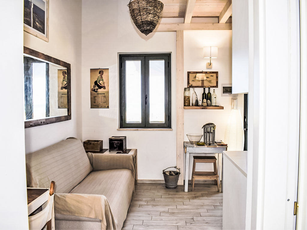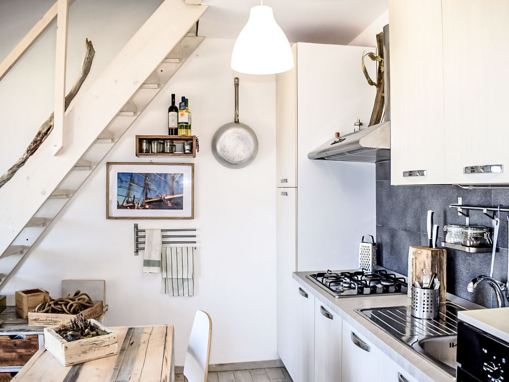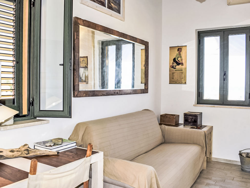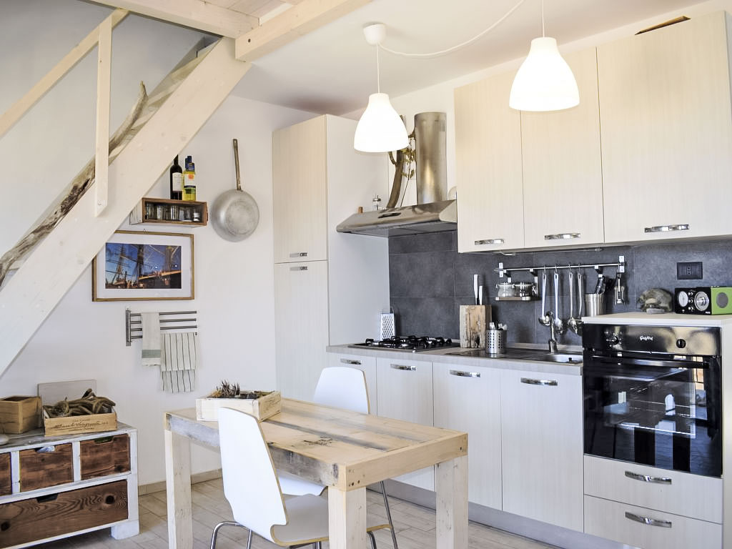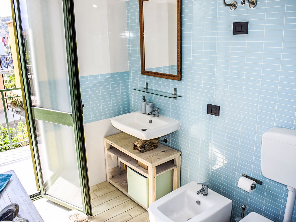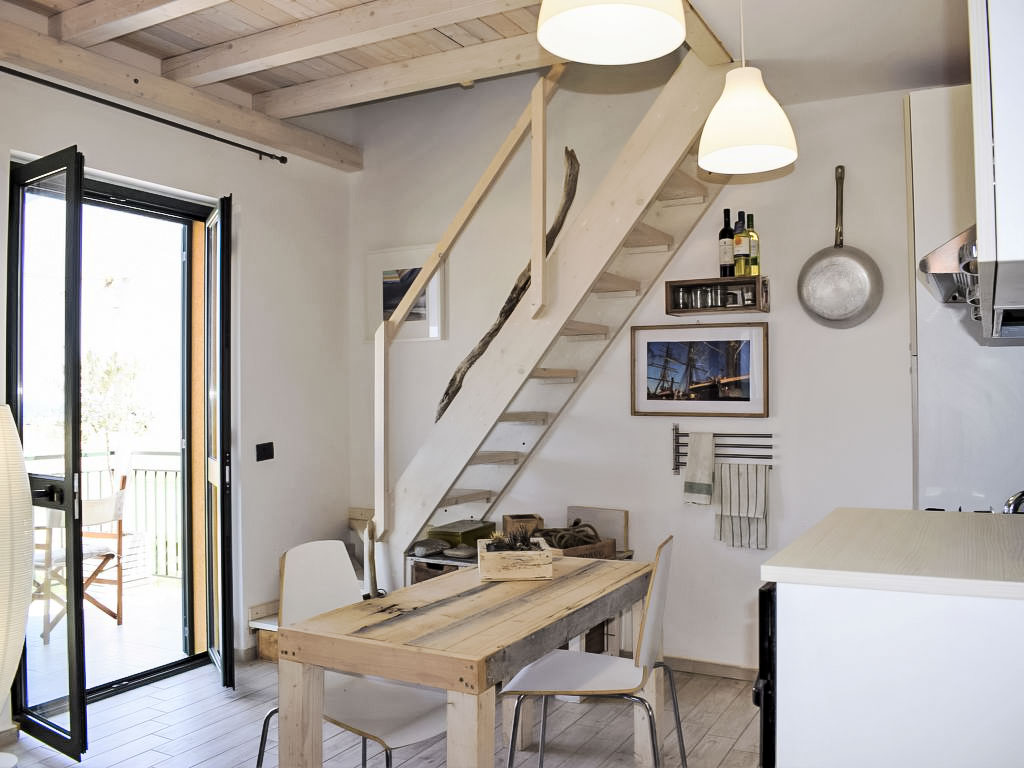 "Il Rifugio Marino", 3-Zimmer-Wohnung 75 m2 auf 2 Stockwerken im 1. Stock. Einfach und zweckmässig eingerichtet: Wohn-/Esszimmer mit Sat-TV (Flachbildschirm). Ausgang zur Terrasse. 1 Doppelzimmer. Kochnische (4 Kochplatten, Backofen, Mikrowelle, Tiefkühler). Dusche/Bidet/WC. Boiler (30 Liter). Obergeschoss: (steile Treppe) offene Galerie mit 2 Betten. 1 abgeschrägtes Doppelzimmer, Deckenhöhe 70 - 190 cm, ohne Schrank mit Ventilator. Balkon 8 m2, Terrasse 12 m2 teilweise überdacht. Balkonmöbel, Gartengrill. Sicht auf das Meer. Zur Verfügung: Bügeleisen, Haartrockner. Internet (Wireless LAN, gratis). Bitte beachten: kein Fahrstuhl.