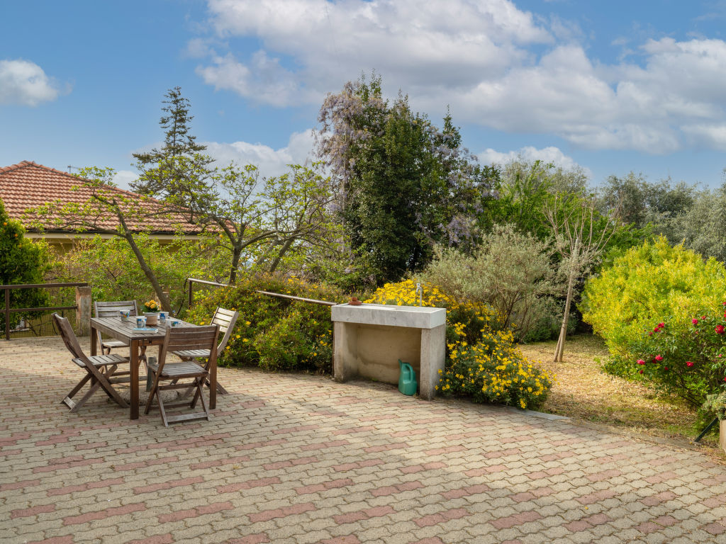 "Ca' del Sole", 5-Zimmer-Haus 200 m2 auf 2 Stockwerken. Hell, stilvoll und gemütlich eingerichtet: Wohn-/Schlafzimmer mit 1 Bett (80 cm), Sat-TV. Küche (Backofen, Geschirrspüler, 4 Flammen, Tiefkühler, elektrische Kaffeemaschine) mit Esstisch. Ausgang zum Garten. Dusche/Bidet/WC. Obergeschoss: 1 Zimmer mit 1 franz. Bett (160 cm). Ausgang zum Balkon. 1 Zimmer mit 1 franz. Bett (160 cm). 1 Zimmer mit 3 Betten (80 cm). 1 Zimmer mit 1 Doppeldiwanbett (145 cm). Ausgang zum Balkon. Dusche/WC. G-Heizung. Heizung nur verfügbar von 15.10. bis 30.04. 2 kleine Balkone, grosse Terrasse. Terrassenmöbel, Gartengrill, Liegestühle (4). Schöne Panoramasicht auf die Landschaft, die Ortschaft und das Meer. Zur Verfügung: Waschmaschine, Bügeleisen, Kinderhochstuhl, Babybett. Internet (Wireless LAN, gratis). Maximal 3 Haustiere/Hunde erlaubt. CITRA: 008022-LT-0016