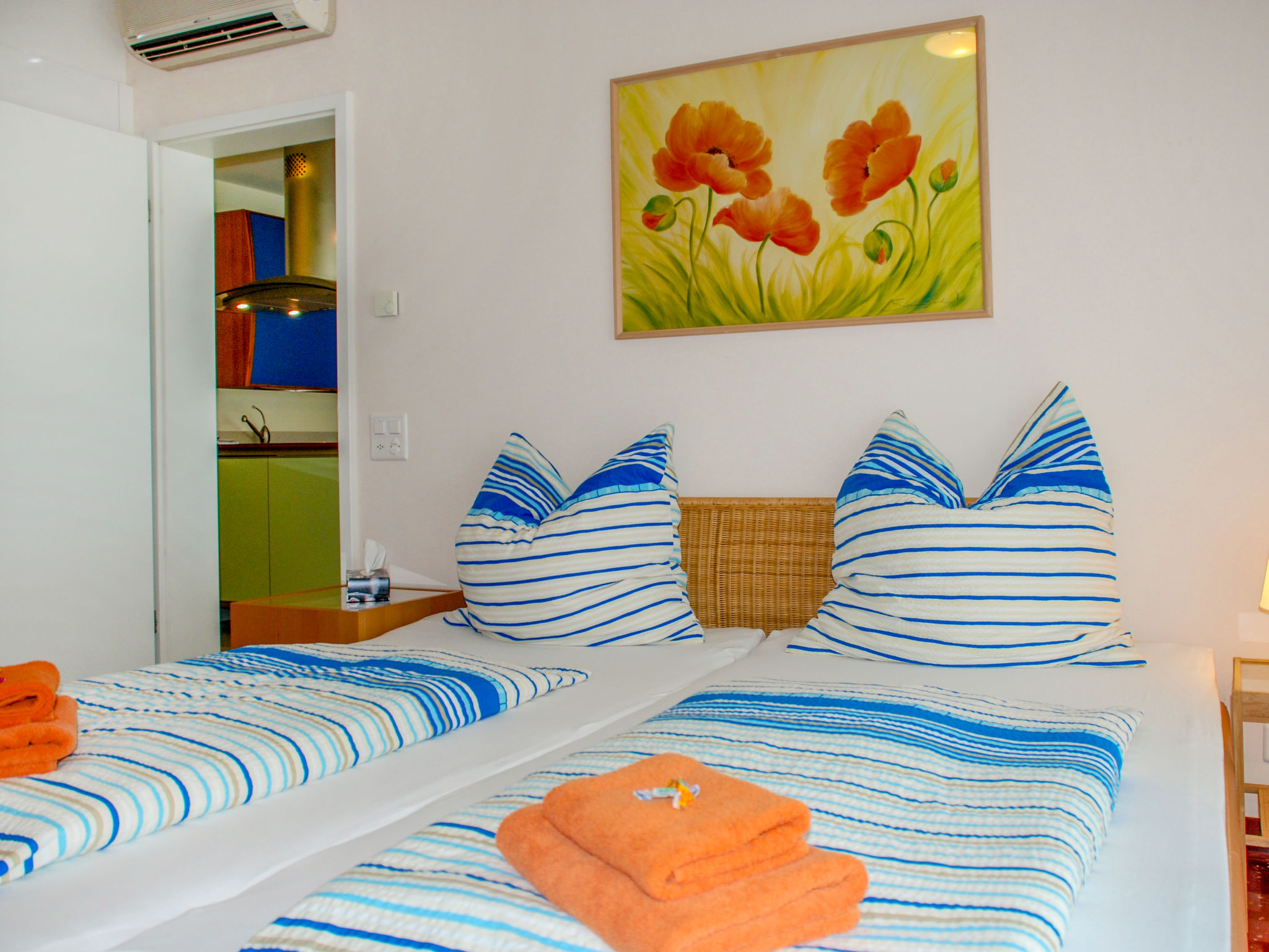 "Residenza Moro", 3-Zimmer-Wohnung im 1. Stock. Geräumig und hell, komfortabel und modern eingerichtet: offenes Wohn-/Esszimmer mit Sat-TV und Internationale TV-Sender (Flachbildschirm), Klimaanlage. Ausgang zum Balkon, zur Terrasse. 1 Doppelzimmer mit 1 Doppelbett (2 x 100 cm, Länge 200 cm), Bad/Bidet/WC und Klimaanlage. Ausgang zum Balkon. 1 kleines Zimmer mit 2 Betten (90 cm, Länge 200 cm). Ausgang zum Balkon. Offene Küche (Backofen, Geschirrspüler, 4 Glaskeramikherd Platten, Mikrowelle, Tiefkühler, elektrische Kaffeemaschine) mit kleinem Esstisch. Dusche/WC. Fussbodenheizung. 2 Balkone 10 m2. Balkonmöbel, Liegestühle (2). Eingeschränkte Sicht auf den See, die Berge und die Ortschaft. Zur Verfügung: Kinderhochstuhl, Babybett bis 2 Jahre (extra). Internet (Wireless LAN, gratis). Parkplatz Nr. 4 beim Haus. Bitte beachten: Nichtraucher-Unterkunft.