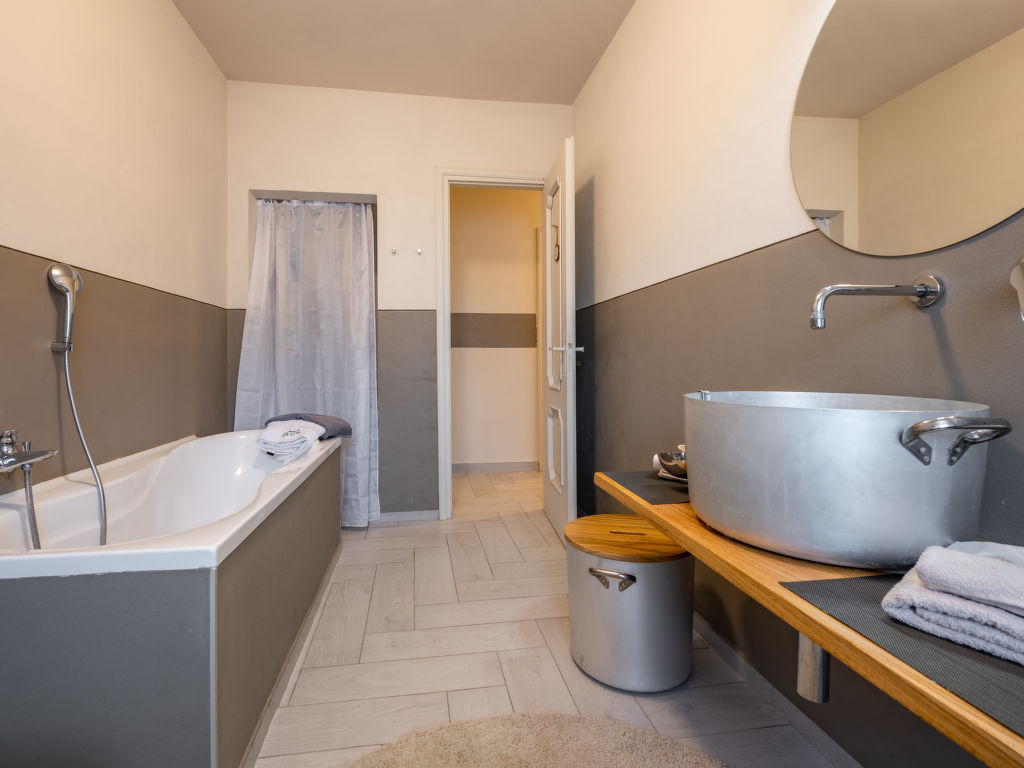 Das Zweifamilienhaus CA'MARIANNA steht in leicht erhöhter Panoramalage, inmitten von Feldern und Wiesen,3,5 km ausserhalb von Roatto mit Lebensmittelgeschäft. Supermarkt in Villafranca d'Asti 6 km. Ca. 1000 m² großes, umzäuntes Grundstück mit Obstbäumen, naturbelassener Wiese mit Blumen, zur gemeinsamen Nutzung mit der Besitzerfamilie, die in der 1. Etage wohnt und 1 Hund hält. 2 Parkplätze. Zur Wohnung gehört ein privater Gartenanteil mit möblierter Terrasse, 2 Sonnenliegen, Sonnenschirm, transportabler Grill, von hier schöne Sicht auf die Hügellandschaft. Den Gästen steht eine rustikale Außensauna in einem umgebauten Weinfass zur Verfügung (€ 15/Person, Mindestberechnung 2 Personen). Außendusche. Massageraum (auf Wunsch abends Thai-/Fußmassage, Absprache und Bezahlung am Ort). Sprudelbadewanne für 2 Personen (€ 5/Person). Tischtennis. Verkauf von lokalen Weinen beim Besitzer. Die Ferienwohnung ist mit geschmackvollen, hellen Möbeln eingerichtet. Neue Fliesenböden. TV. Internetzugang (WLAN, inklusive). Waschmaschine (€ 5/Waschgang). Gas-Zentralheizung.