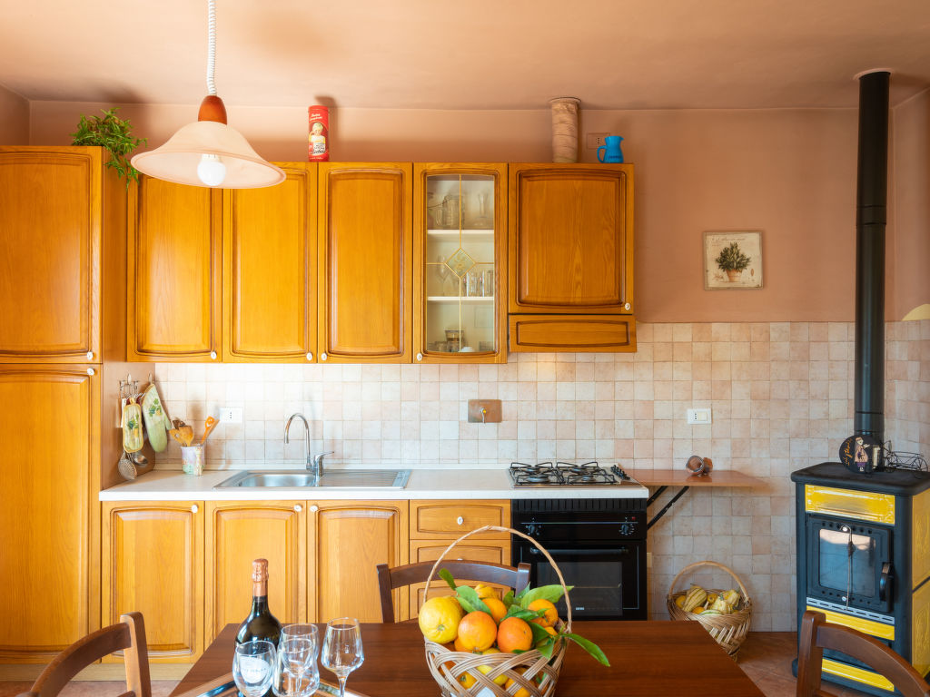 "Trinità", 2-Zimmer-Haus 50 m2. Gemütlich eingerichtet: Wohn-/Schlafzimmer mit 1 Doppeldiwanbett, Esstisch, Sat-TV und Holzofen. Ausgang zur Terrasse. 1 Zimmer mit 1 franz. Bett (160 cm). Offene Küche (Backofen, 4 Flammen, Toaster, Tiefkühler, elektrische Kaffeemaschine) mit Holzofen. Sitzbad/WC. G-Heizung. Terrasse. Terrassenmöbel, Gartengrill (mobil), Liegestühle (2). Schöne Fernsicht auf das Tal, die Landschaft und das Meer. Zur Verfügung: Waschmaschine, Babybett. Maximal 3 Haustiere/Hunde erlaubt. CITRA: 008028-LT-0026