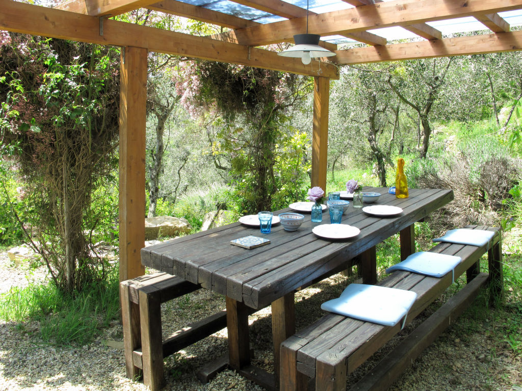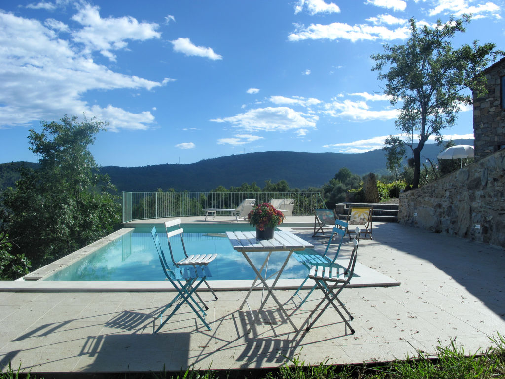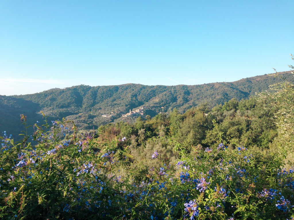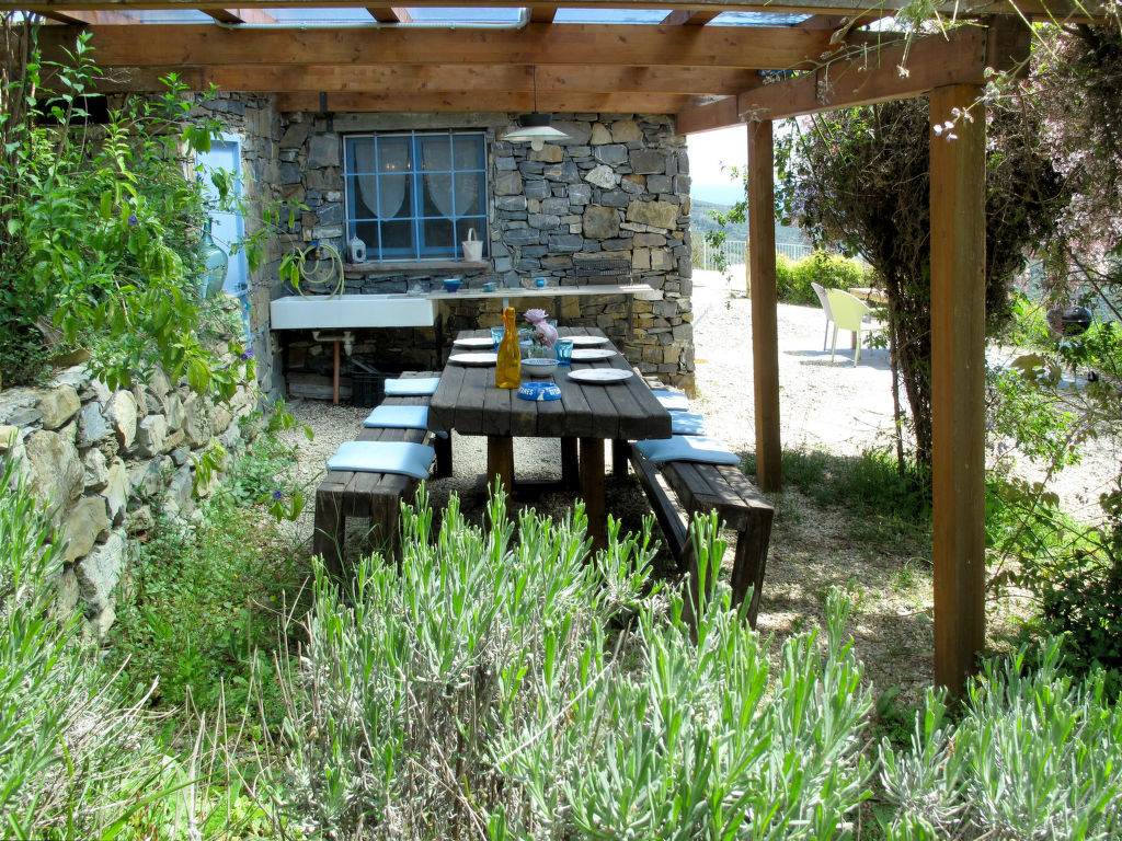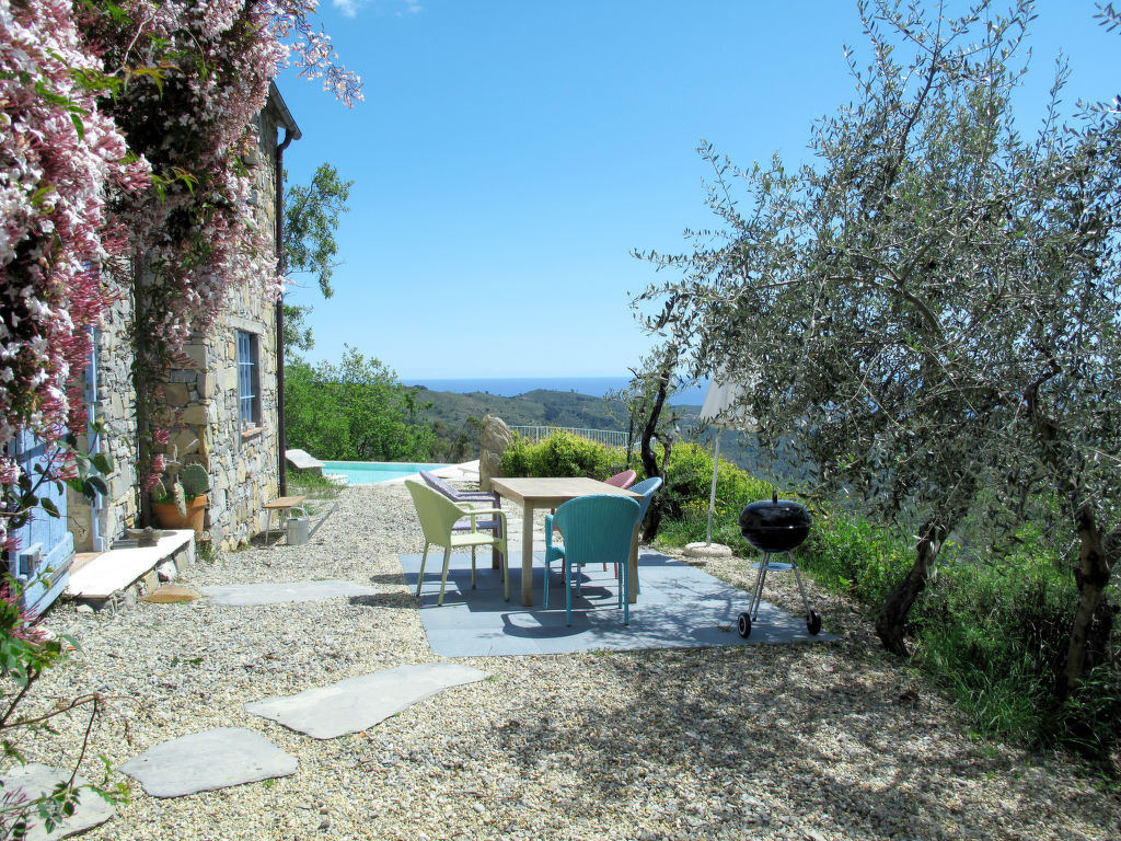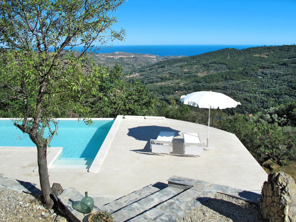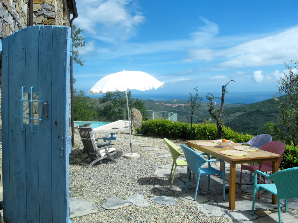 Das alleinstehende Natursteinhaus CASA AZZURRA steht mitten in der Natur, auf einem Hügel, in herrlicher Panoramalage mit Blick über das Tal von San Lorenzo bis hin zum Meer. Ortsmitte von Pietrabruna mit Einkaufsmöglichkeit und Restaurant ca. 800 m. Supermarkt sowie Sand-, Kies- und Felsstrände in San Lorenzo al Mare (10 km). Zu den natürlichen Badebecken im Fluss San Lorenzo 5 km. Mountainbike- und Wanderwege ab dem Haus. Zufahrt zum Haus ca. 800 m auf steiler, fahrzeugbreiter, kurviger Straße. Die letzten ca. 200 m auf unbefestigter Schotterstraße (nicht für Autos mit geringer Bodenfreiheit geeignet). 2 Parkplätze auf dem teilumzäunten Grundstück, ca. 30 m oberhalb des Hauses. Von hier Fußweg zum Haus. Ca. 3000 m² großes, größtenteils naturbelassenes Hanggrundstück mit einigen Olivenbäumen, Lavendel- und Rosmarinsträuchern. Vor dem Haus sonniger Freisitz mit Esstisch, auf der Hangseite Terrasse mit 2 Liegestühlen, neben dem Haus Holzsitzgruppe unter Pergola. Transportabler Grill. Feuerstelle (Brennholz inklusive). Über ein paar Stufen erreicht man den 2016 gebauten Pool (8 x 4 m, 1,50 m tief, gesamte Saison geöffnet) mit großer Panoramaterrasse, 5 Sonnenliegen, Sonnenschirm und Außendusche. Pool- und Grundstückspflege 2x wöchentlich durch Gärtner. Die Schlüsselhalterin bereitet für die Gäste auf Wunsch ein ligurisches Abend-Menü im Ferienhaus zu (Bestellung und Bezahlung am Ort).