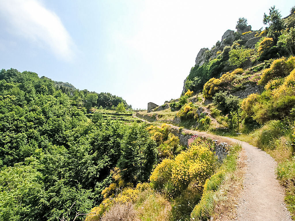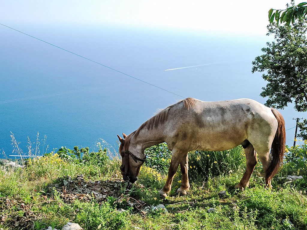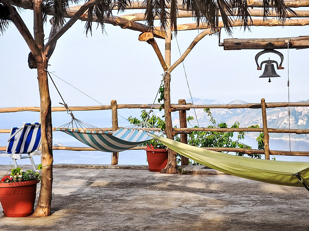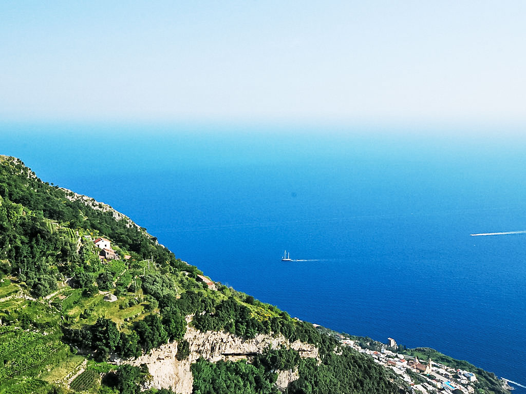 3-Zimmer-Haus 80 m2, Südwestlage. Hell, einfach und zweckmässig eingerichtet: 1 Zimmer mit Panoramafenster mit 3 Betten und Klimaanlage. Ausgang zur Terrasse. 1 Zimmer mit 3 Betten und Klimaanlage. Ausgang zur Terrasse. Offenes Esszimmer mit offenem Kamin und TV. Ausgang zum Garten, zur Terrasse. Kochnische (4 Kochplatten, Backofen, Geschirrspüler, Tiefkühler). Dusche/Bidet/WC. Klimaanlage. 2 grosse Terrassen, Gartensitzplatz, Garten. Terrassenmöbel, Gartengrill, Liegestühle. Herrliche Panoramasicht auf das Meer, das Tal, die Landschaft und die Ortschaft. Zur Verfügung: Waschmaschine, Haartrockner. Maximal 1 kleines Haustier/Hund erlaubt. Ideal für Wanderer und Naturfreunde. Die Wohnung kann nur zu Fuss erreicht werden (ca. 1 km, 15 min Gehweg), auf dem berühmten Sentiero degli Dei. Für den Gepäcktransport (hin und zurück, inbegriffen) werden Pferde benutzt. Der Weg ist unbeleuchtet. Den Gästen steht Gemüse und Obst aus dem Garten zur Verfügung. Herrliches Panorama auf das Meer und nach Capri.