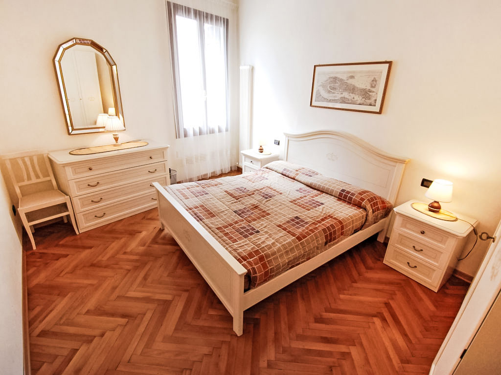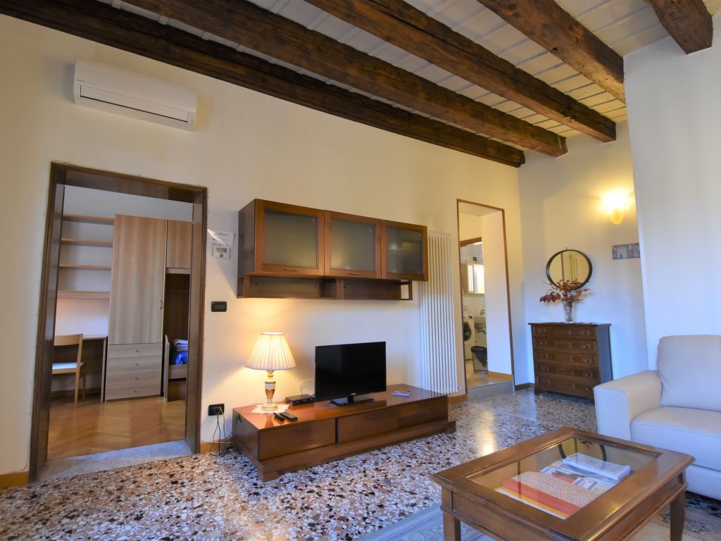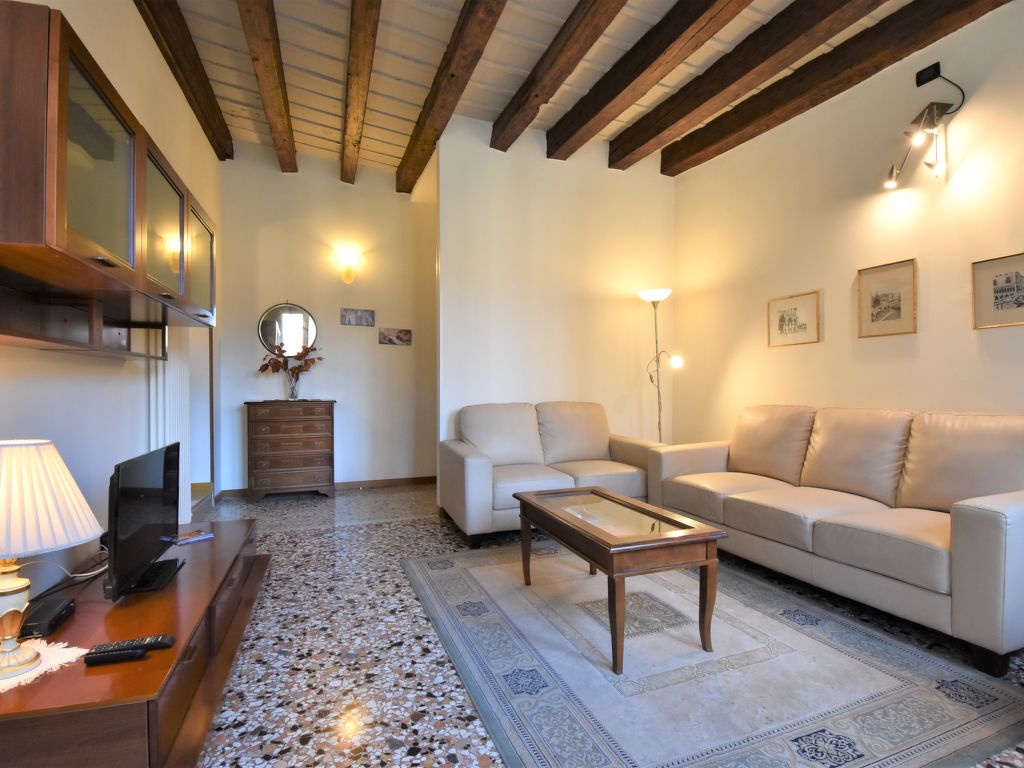 3-Zimmer-Wohnung 80 m2 im 1. Stock. Komfortabel und modern eingerichtet: grosser Eingang. Wohnzimmer mit Sat-TV und Klimaanlage. Ausgang zur Loggia. 1 Doppelzimmer mit Klimaanlage. 1 Zimmer mit 1 Bett. Wohnküche (4 Kochplatten, Backofen, Geschirrspüler, Mikrowelle, Tiefkühler) mit Esstisch. Bad/Bidet/WC. Heizung, Klimaanlage (extra). Abstellkammer. Sehr schöne Sicht auf die Ortschaft, den Kanal und Basilica dei Frari (1250 d.c.). Zur Verfügung: Waschmaschine, Haartrockner. Internet (Wireless LAN, gratis). Bitte beachten: nicht geeignet für Kinder unter 12 Jahren. Nichtraucher-Unterkunft. M0270420861